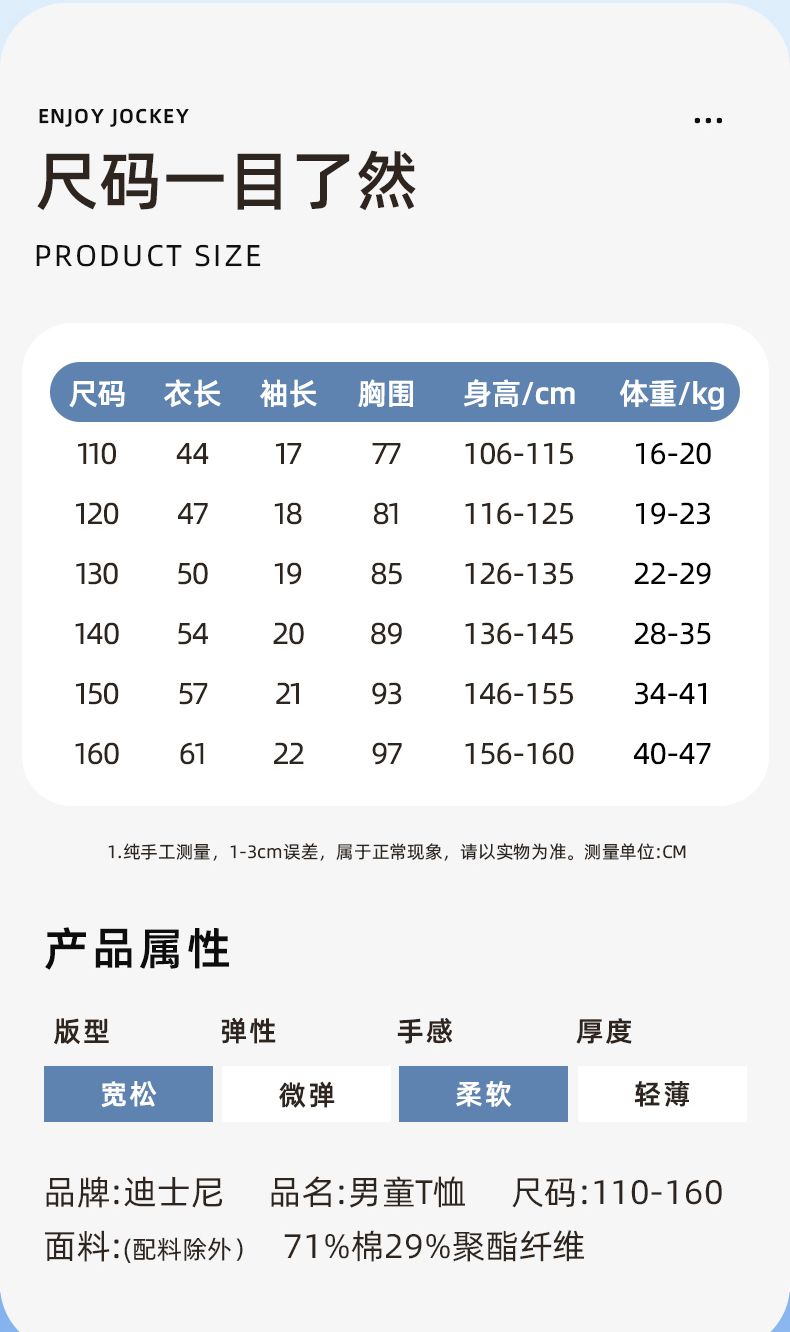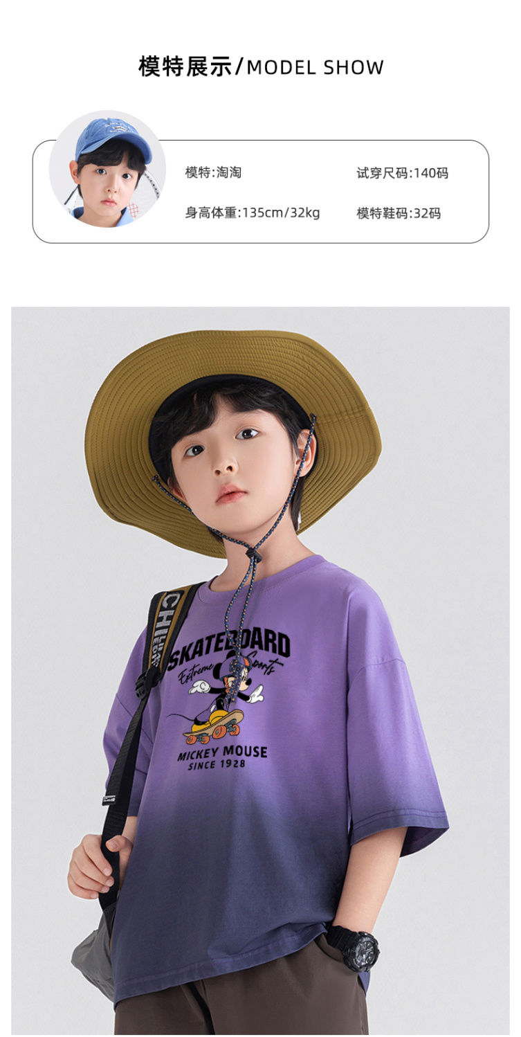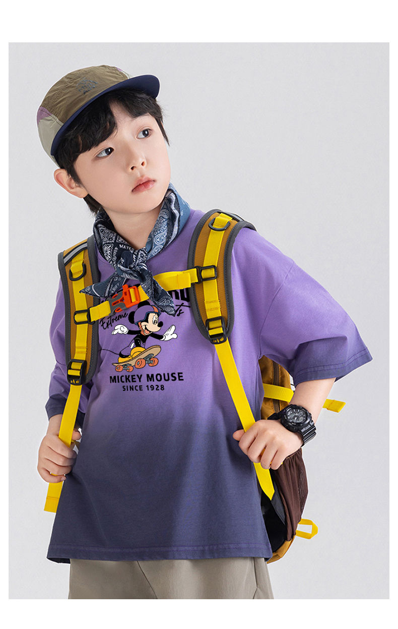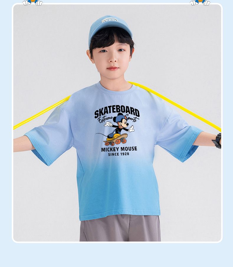 迪士尼男童短袖T恤夏季儿童渐变体恤洋气男大童上衣夏装男孩半袖