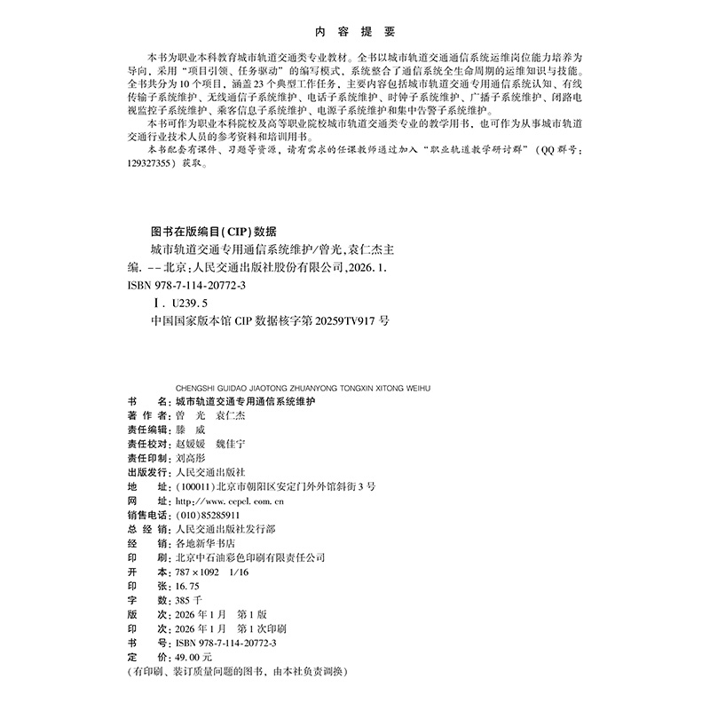 书名:城市轨道交通专用通信系统维护