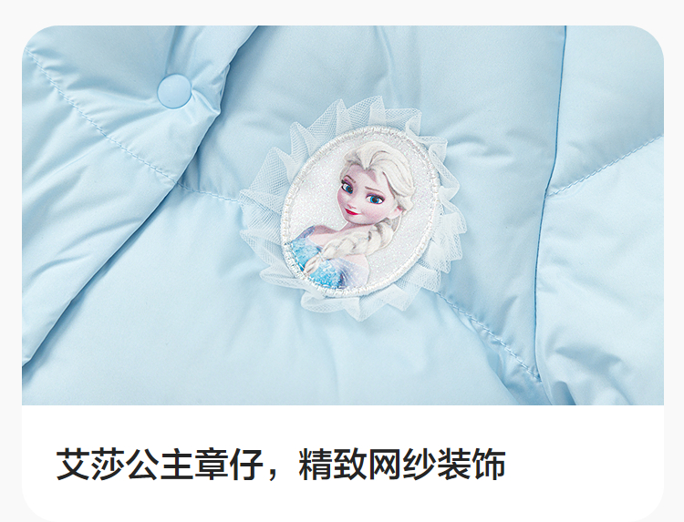 【迪士尼IPbalaOne】巴拉巴拉女童羽绒服艾莎连帽外套2025新冬装