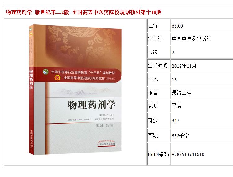 物理药剂学 新世纪第二2版 全国高等中医药院校规划教材 第十10版 吴清主编 十三五本科教材中国中医药出版社供中药学药学等专业用