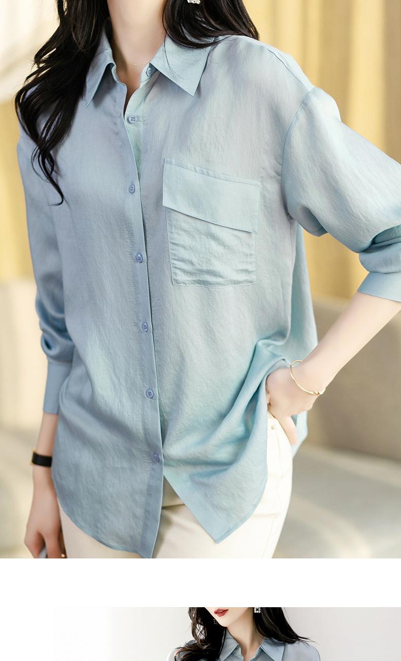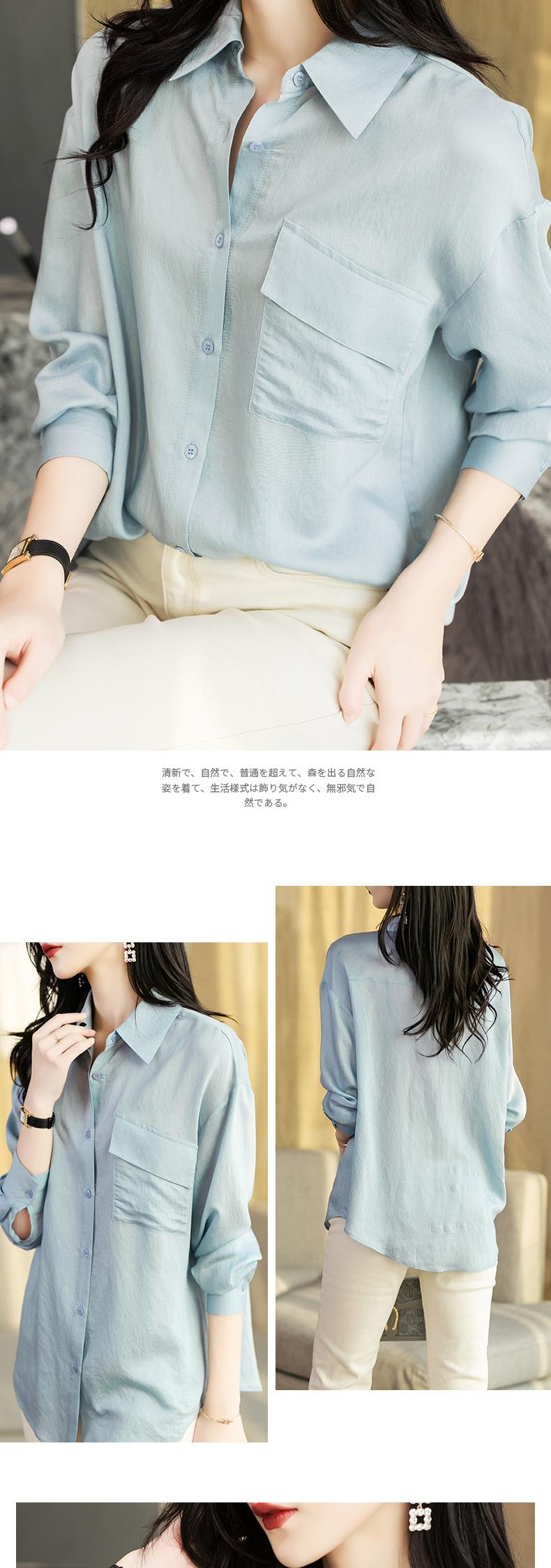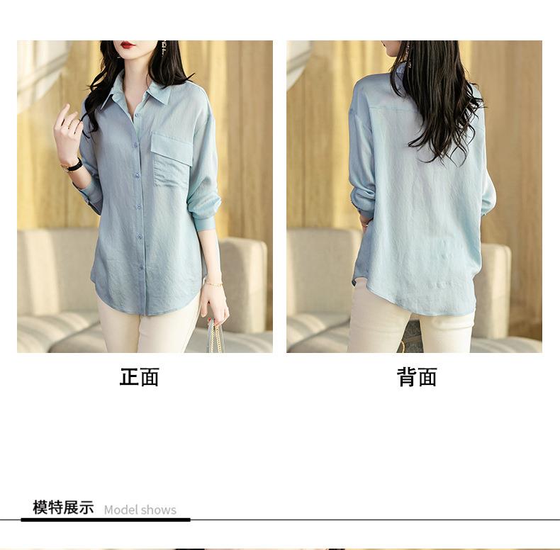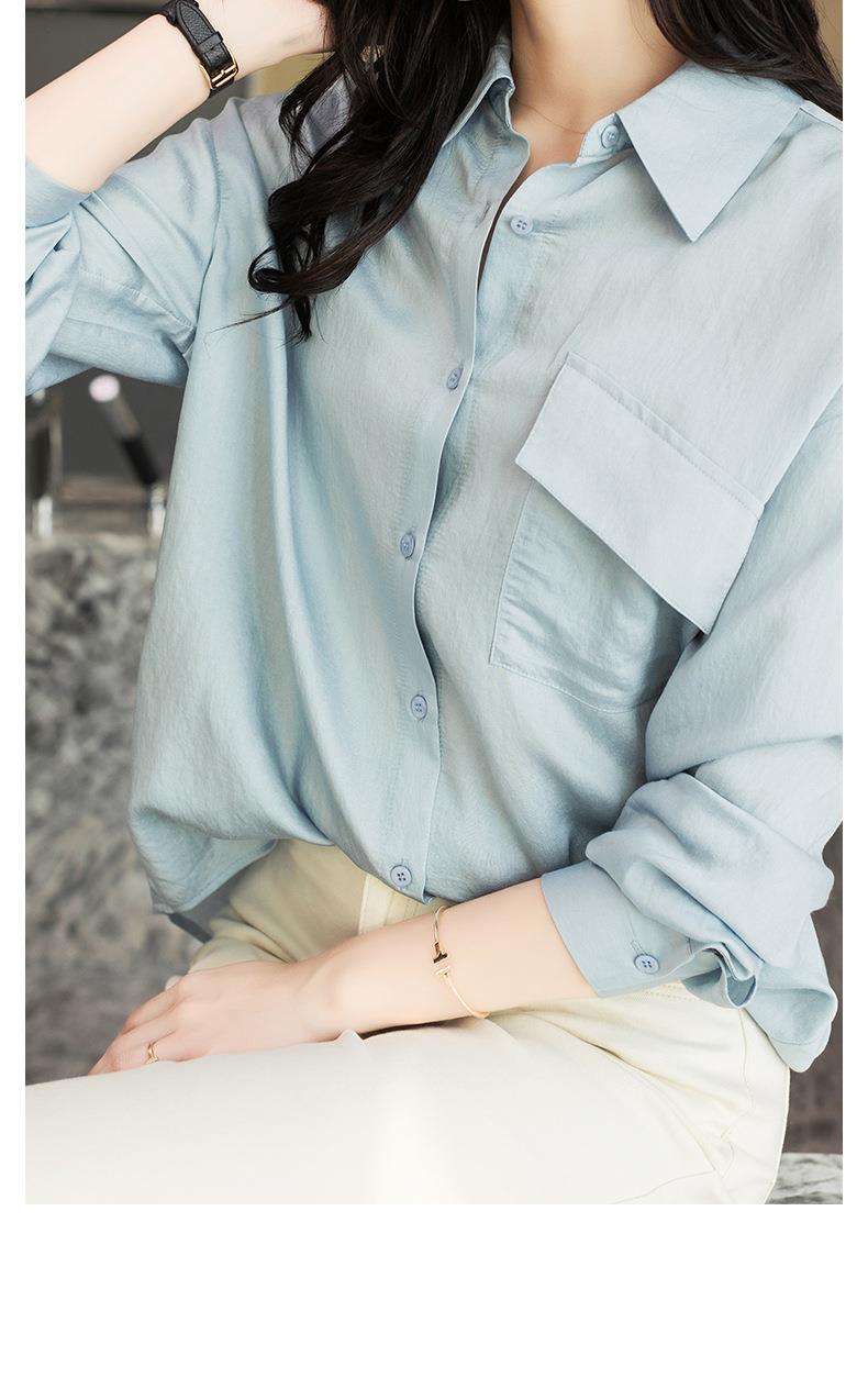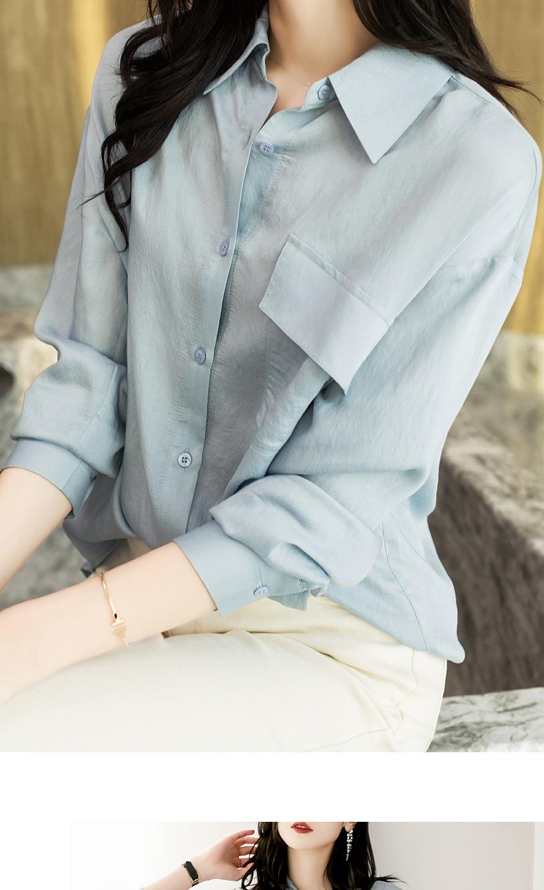 港风2023秋装新款雪纺衫衬衫女长袖简约蓝女士衬衣2207