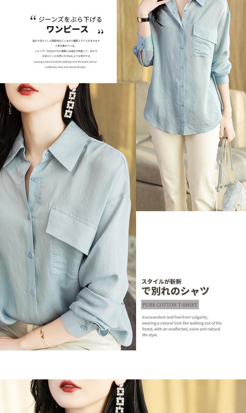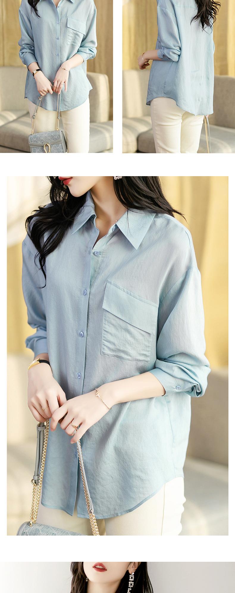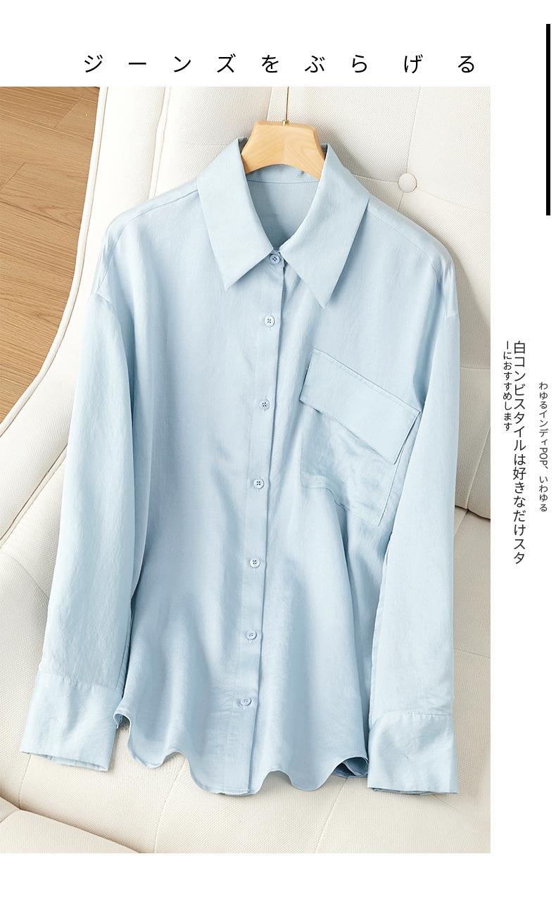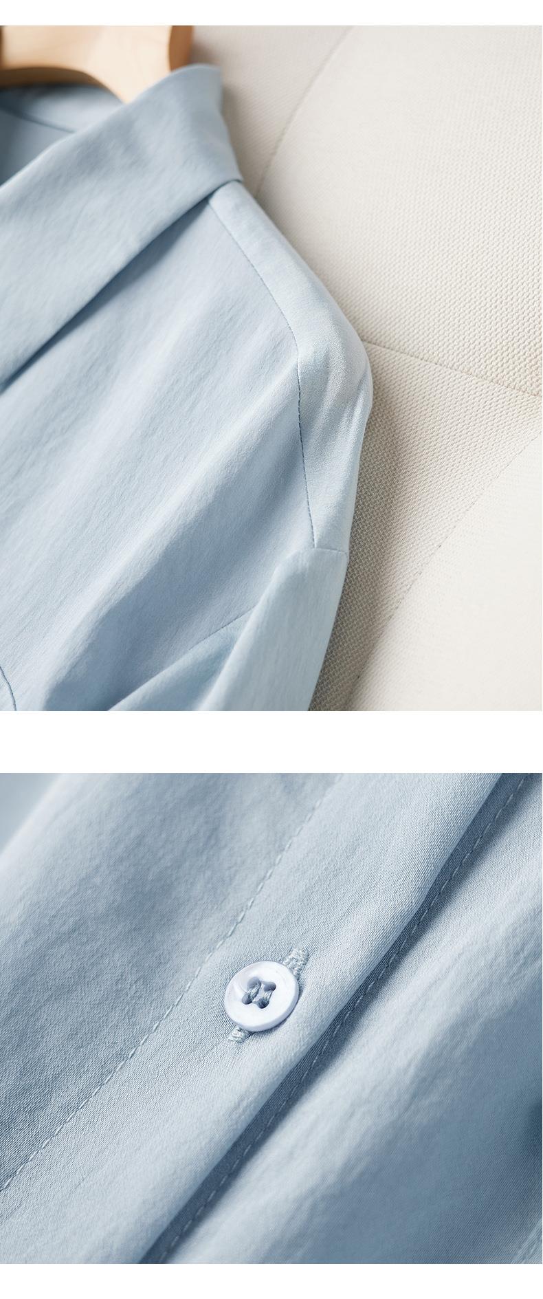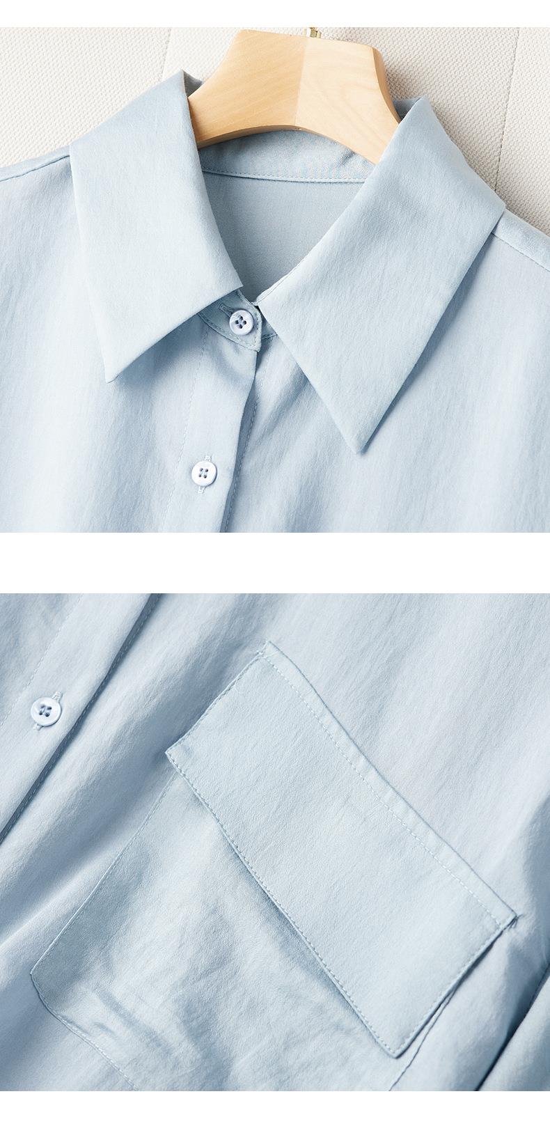 港风2023秋装新款雪纺衫衬衫女长袖简约蓝女士衬衣2207