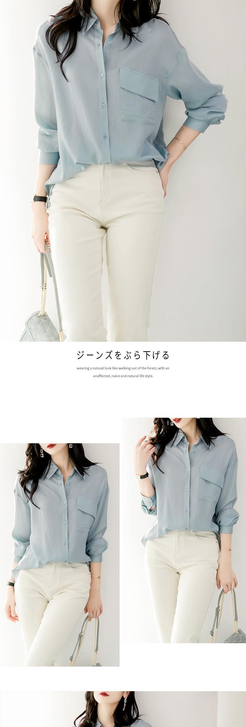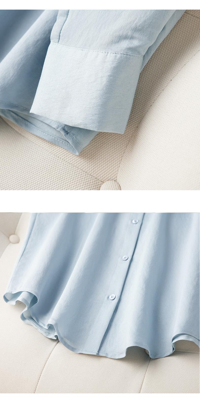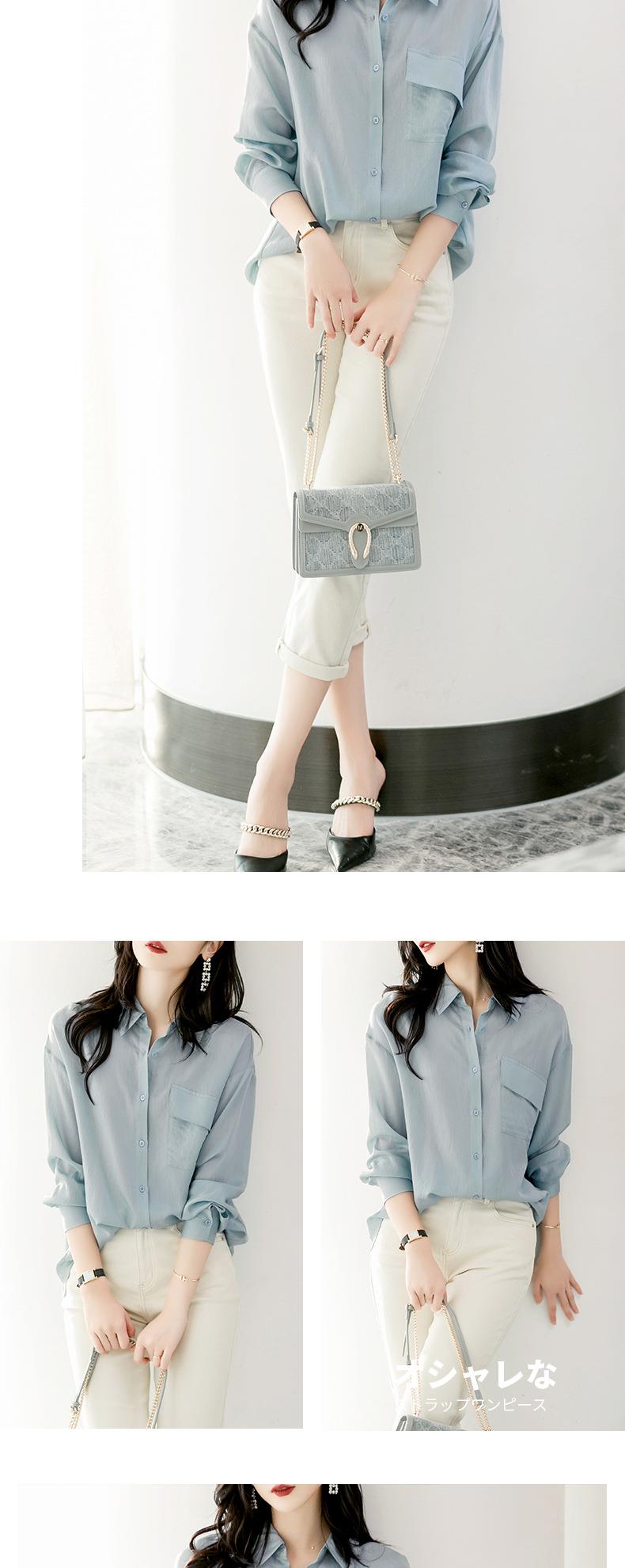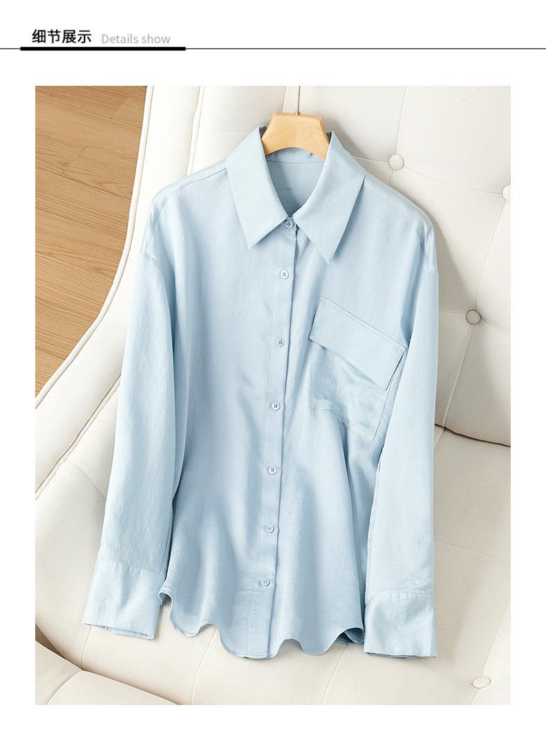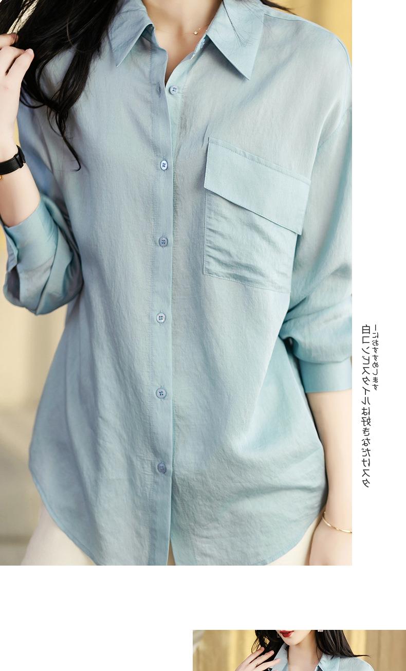 港风2023秋装新款雪纺衫衬衫女长袖简约蓝女士衬衣2207