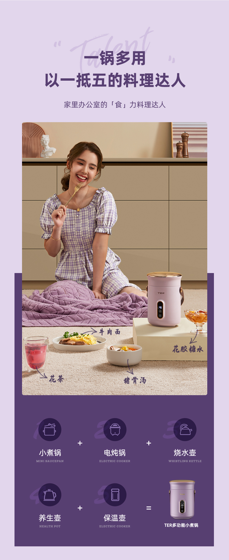 TER轻食锅1-2人小型迷你电炖锅小煮锅