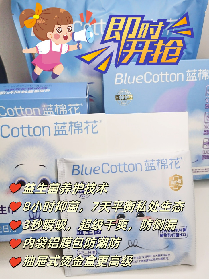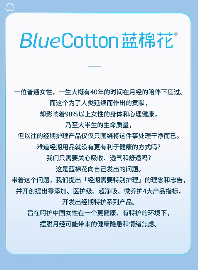 -今年315你们应该都看了吧!妈呀连卫生巾都出事,让咱们女性怎么活啊!!![发怒][发怒] 今天推荐的这款 蓝棉花 用的是新疆棉,还是🏥医护级认证的!!!绝对是姨妈巾界的“真香”单品!