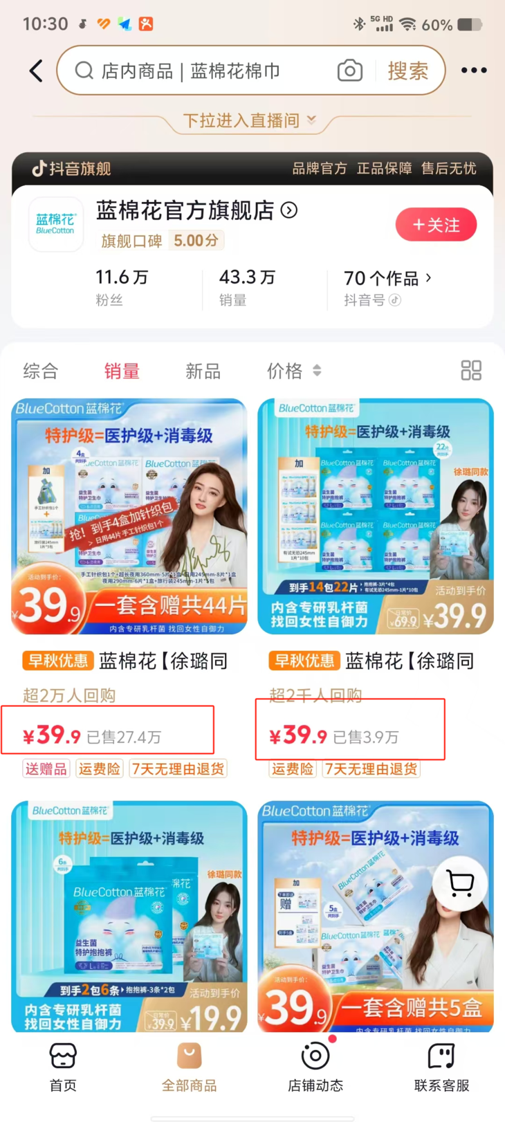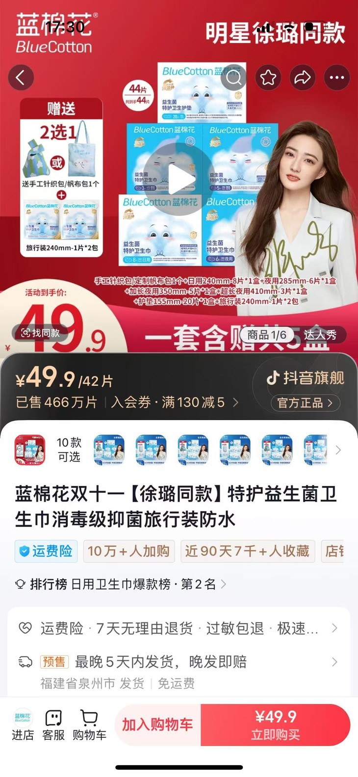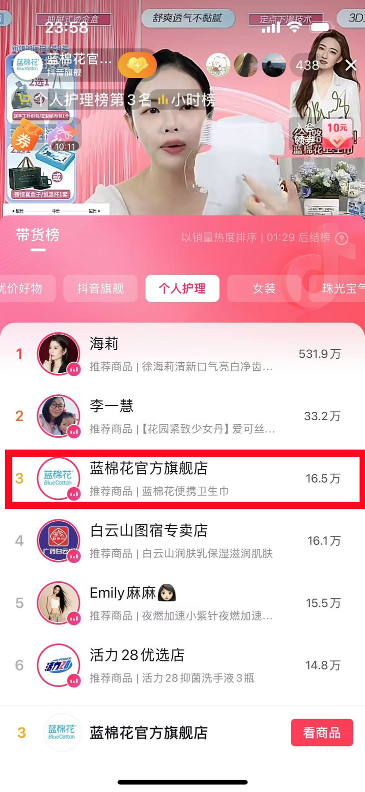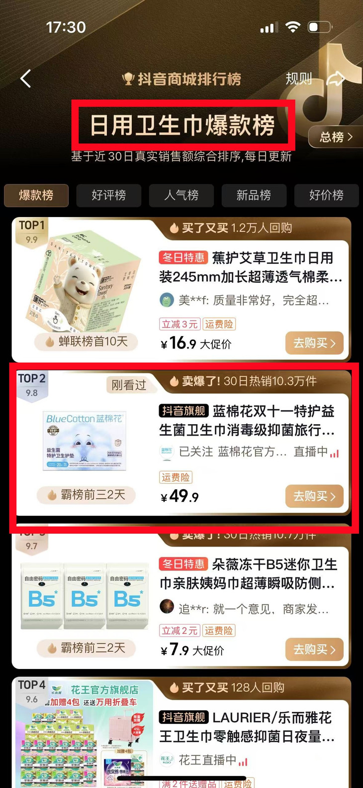 个人护理榜荣列第2名: 美女姐姐吴宣仪都在用的!【蓝棉花】爆款小新翼卫生巾! 蓝棉花卫生巾已进入抖音卫生巾人气榜TOP1 位居卫生巾爆款榜TOP2