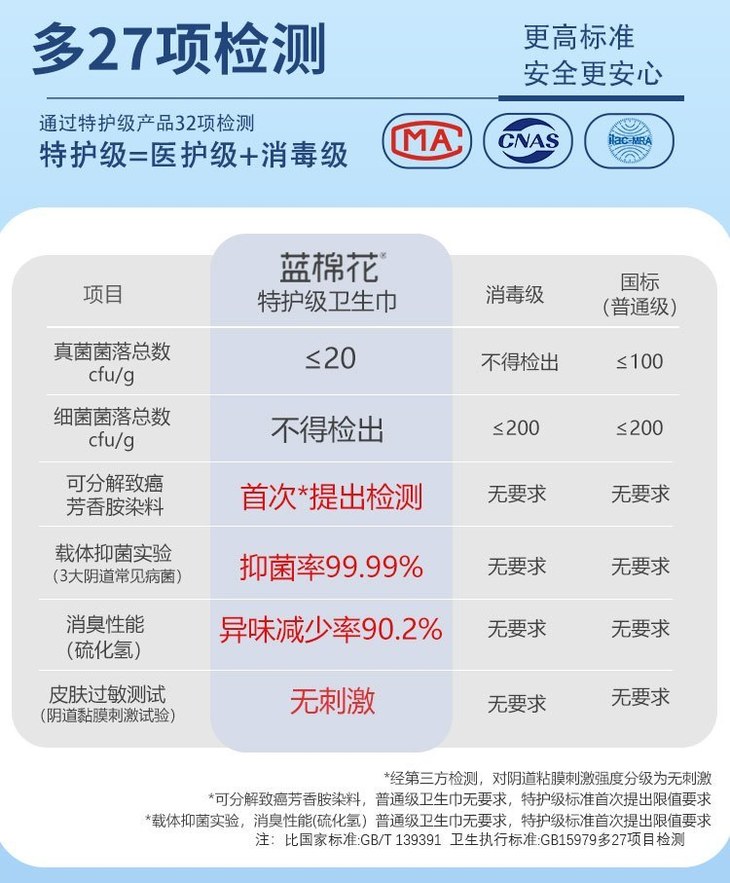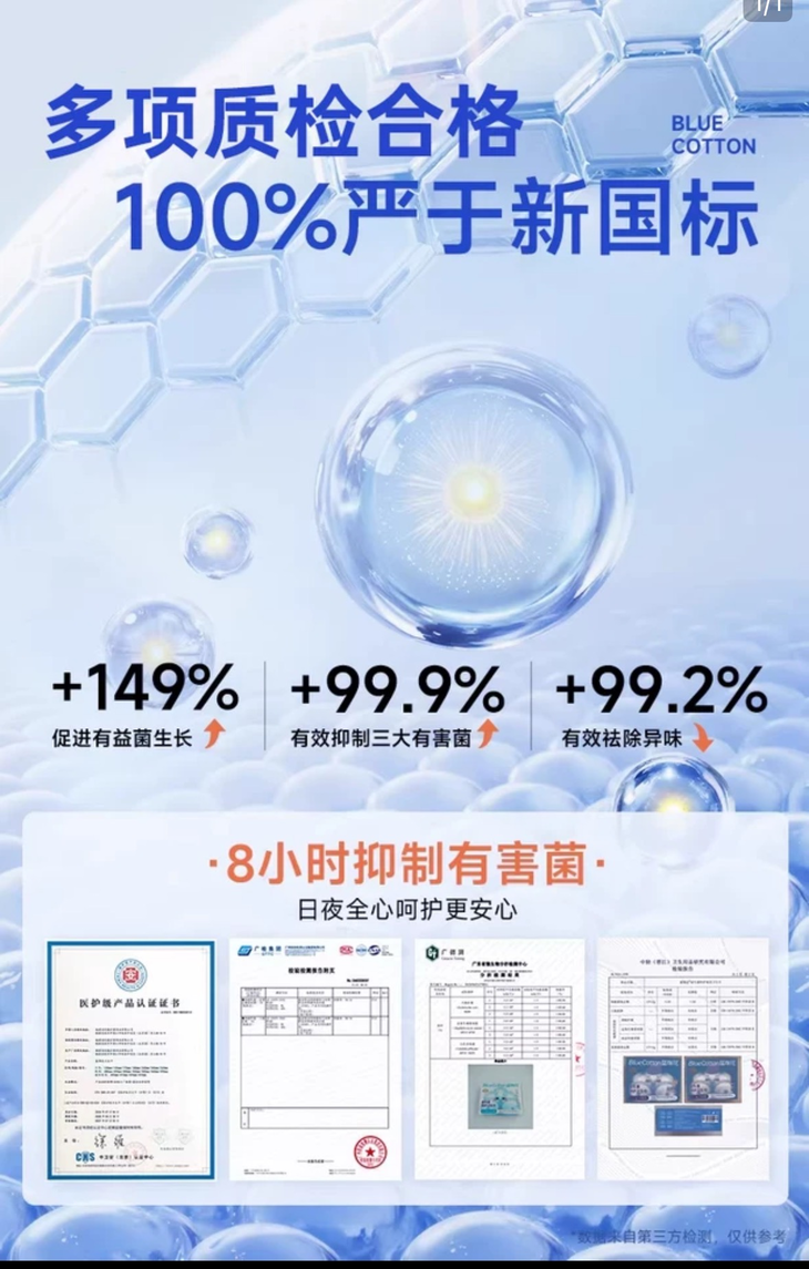 【蓝棉花】真真是良心品牌!100%优于新国标! - 🏥医护级认证 通过了多项指标检测! - 产品卫生和安全达到医学护理级标准!