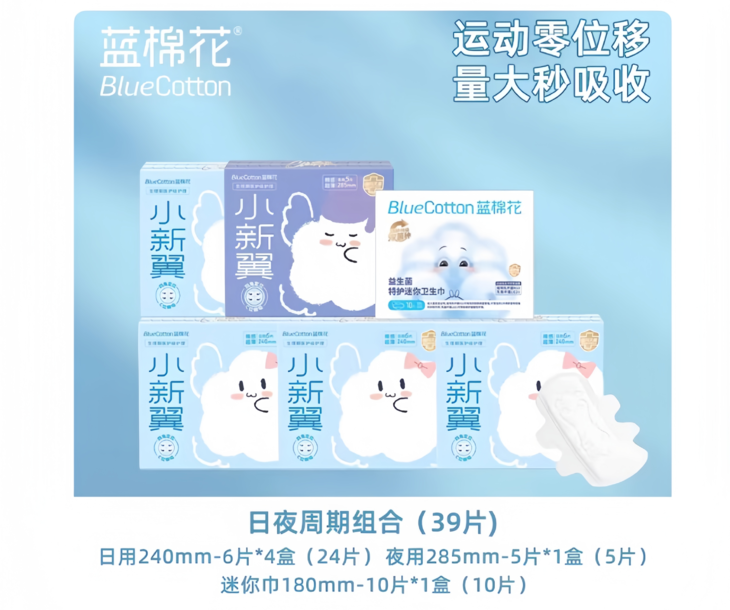 🔥🔥【徐璐同款】蓝棉花小新翼日夜周期组合卫生巾(39片)🔥必须放大招!好用到起飞!! ☀️全网卫生巾塌房就他们家爆火;蓝棉花益生菌特护卫生巾