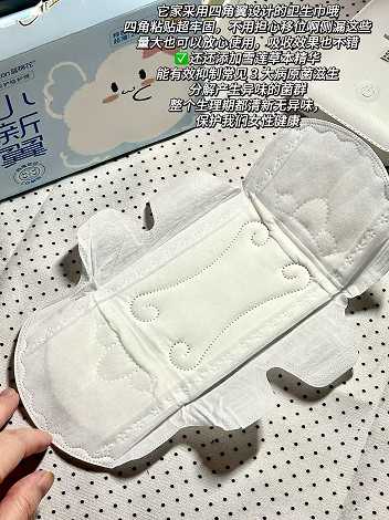 普通卫生巾可能存在细菌残留风险~ - 而它从源头保障了经期卫生!!!! - 让敏感肌姐妹再也不用担心细菌引发的过敏问题!!!安心感🈵🈵 越听越心动了 不仅防侧漏效果好!吸收力也是杠杠在线的!