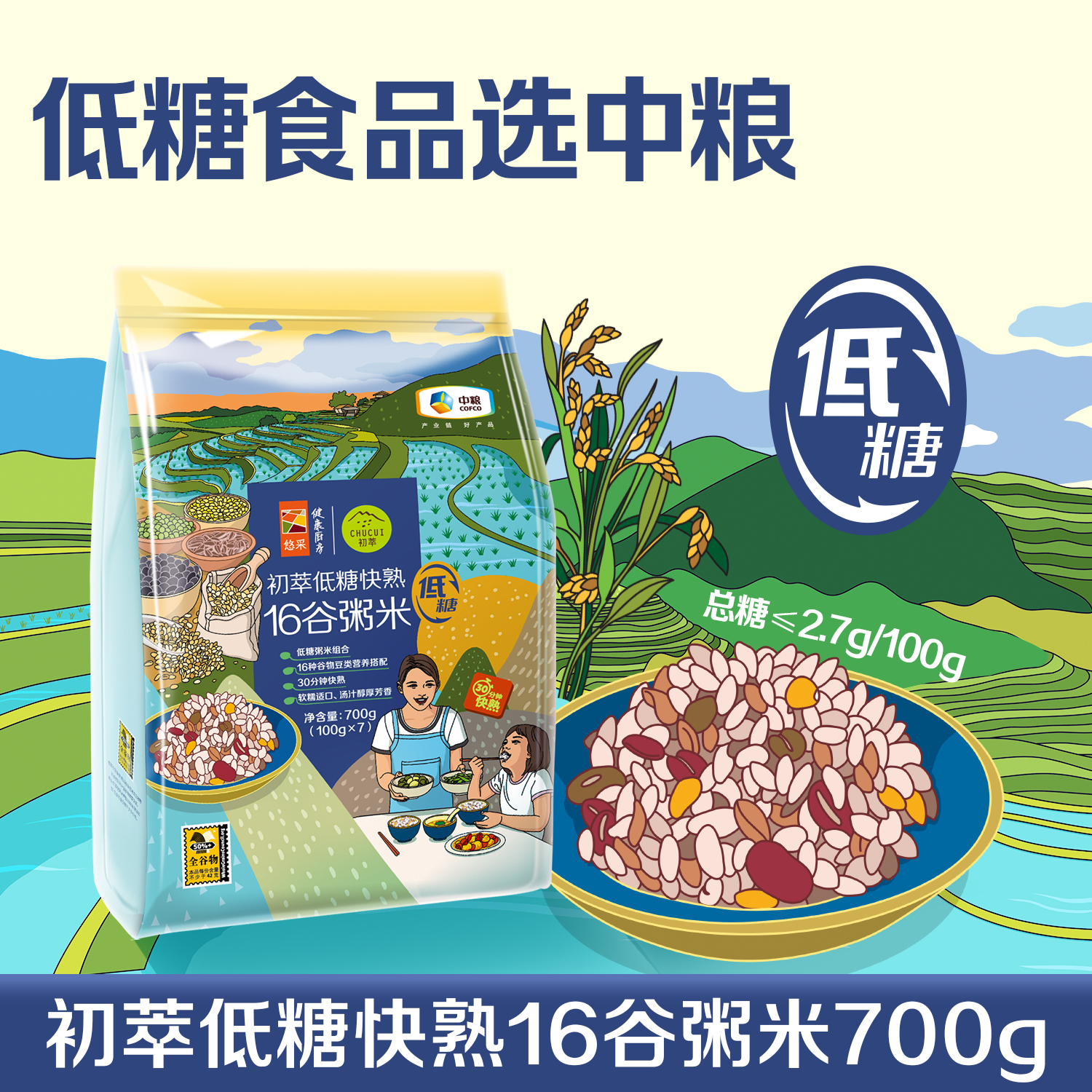 中粮初萃低糖快熟16谷粥米700g