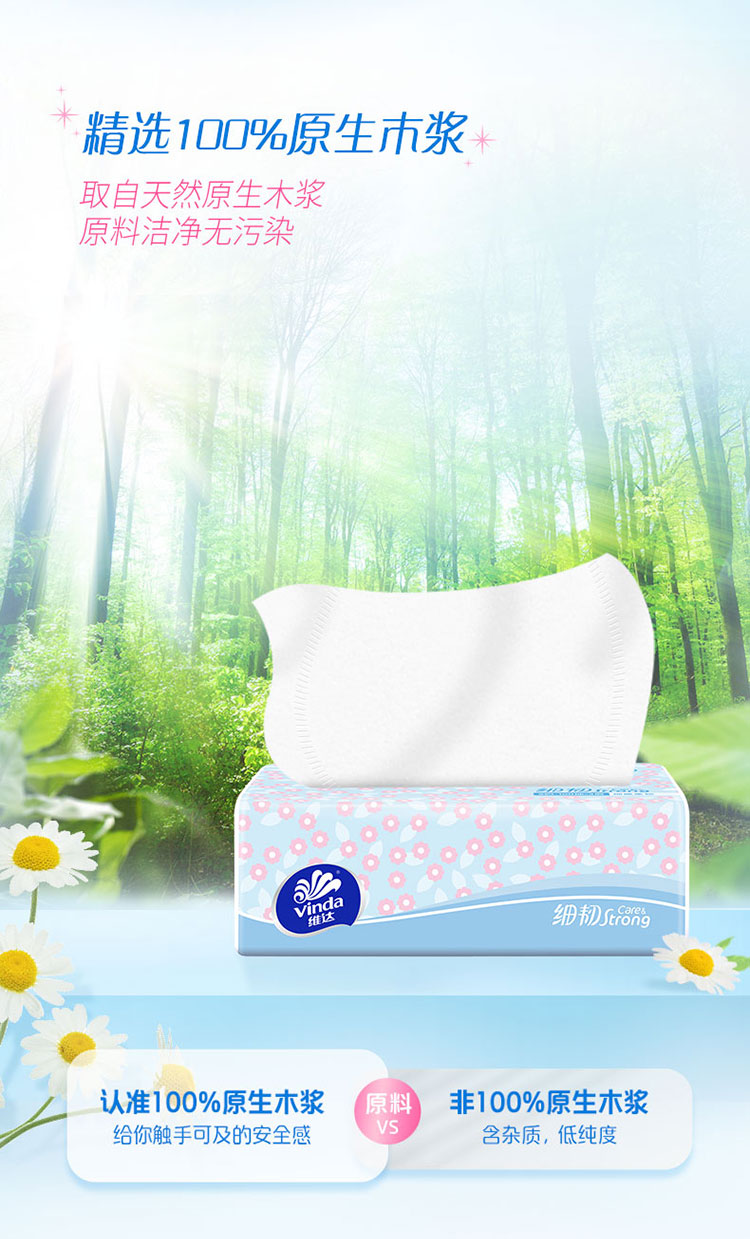 维达纸巾细韧抽纸3层100抽20包家用实惠整箱囤货装面巾纸餐巾纸