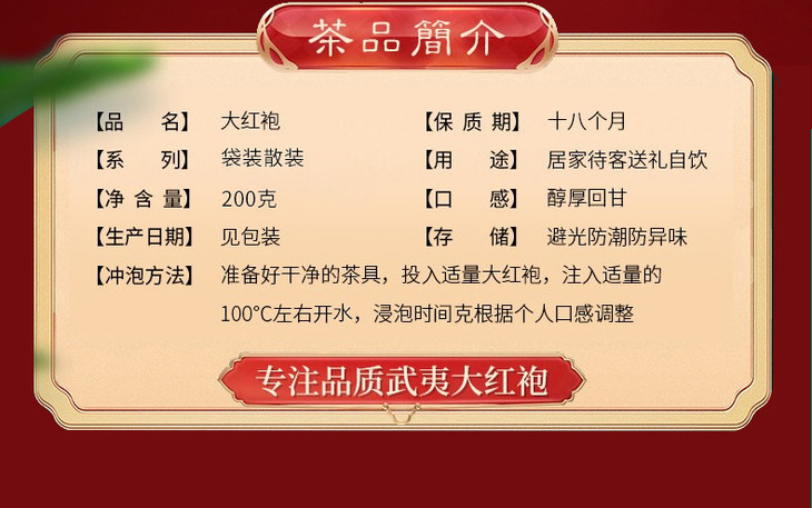 【手工采摘!新茶武夷山花香大红袍】传统工艺,色泽褐红,鲜润带宝色,武夷岩茶乌龙茶武夷山茶叶袋装夏日中式好物健康