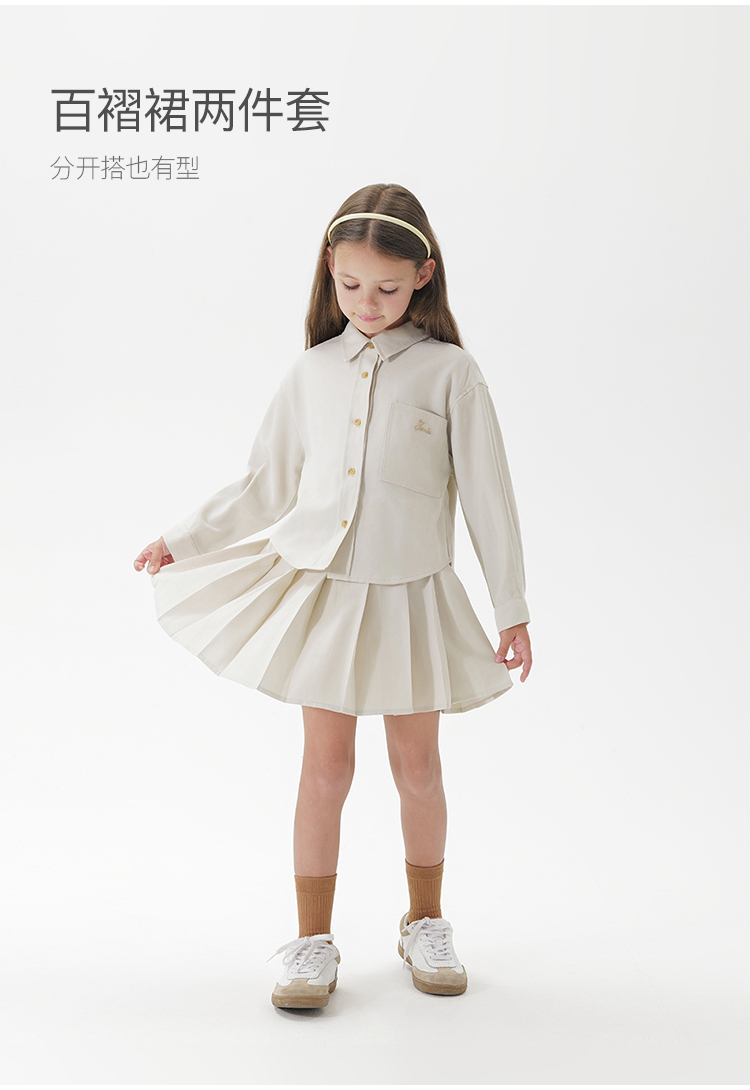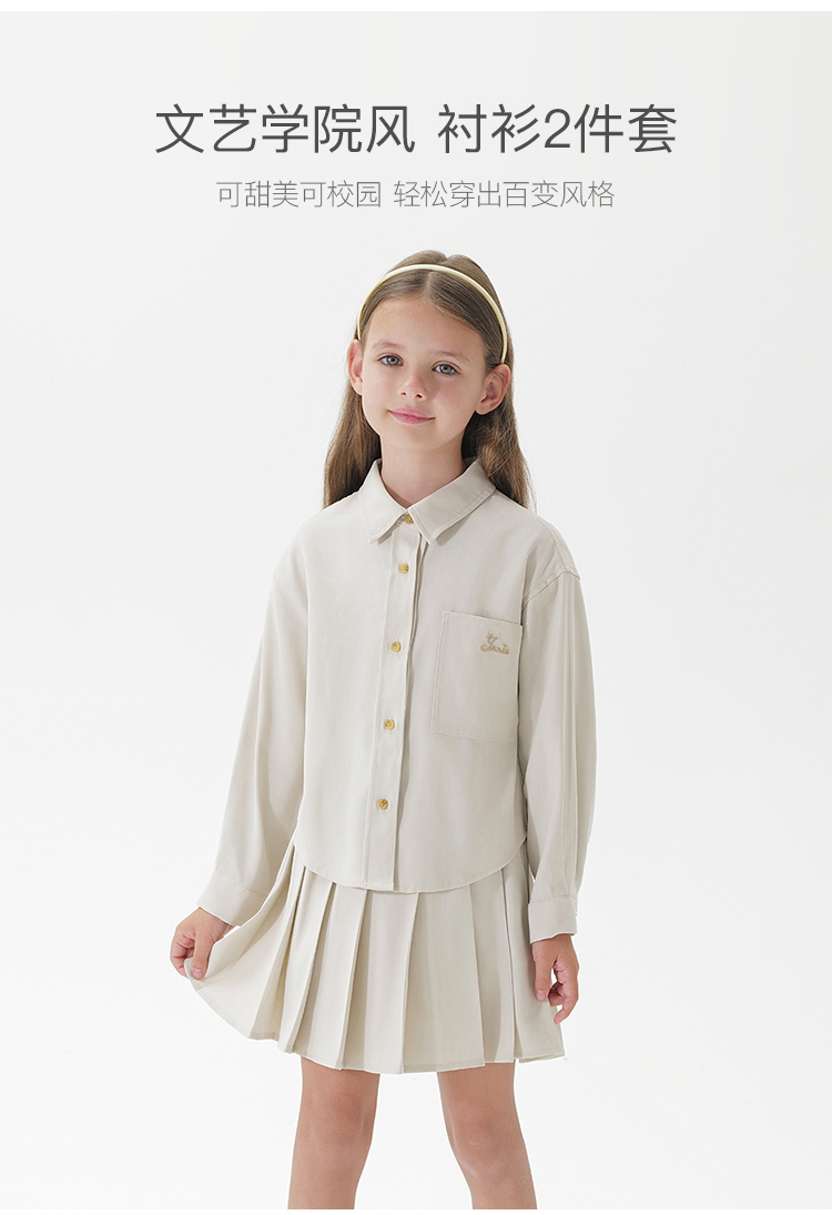 马克珍妮女童文艺学院衬衫短裙2件套 儿童套装2025春装新款250161