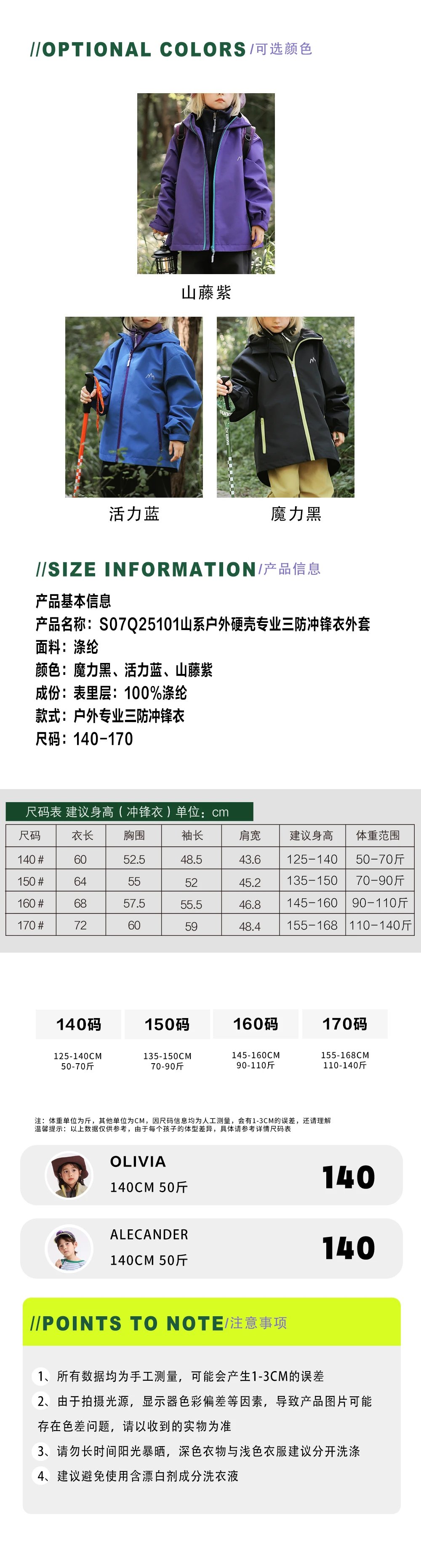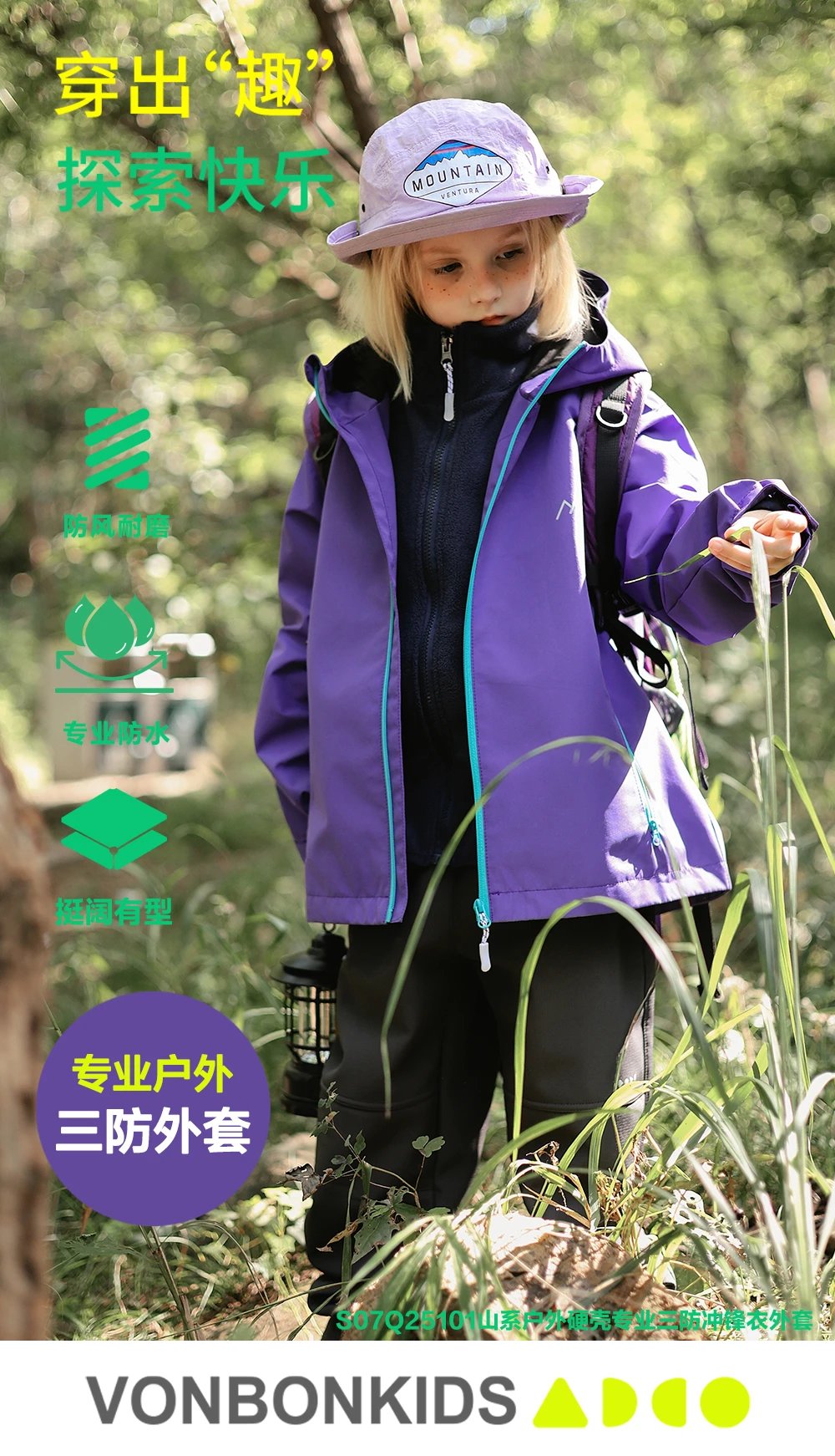 vonbonkids山系户外硬壳专业三防冲锋衣外套 S07Q25101