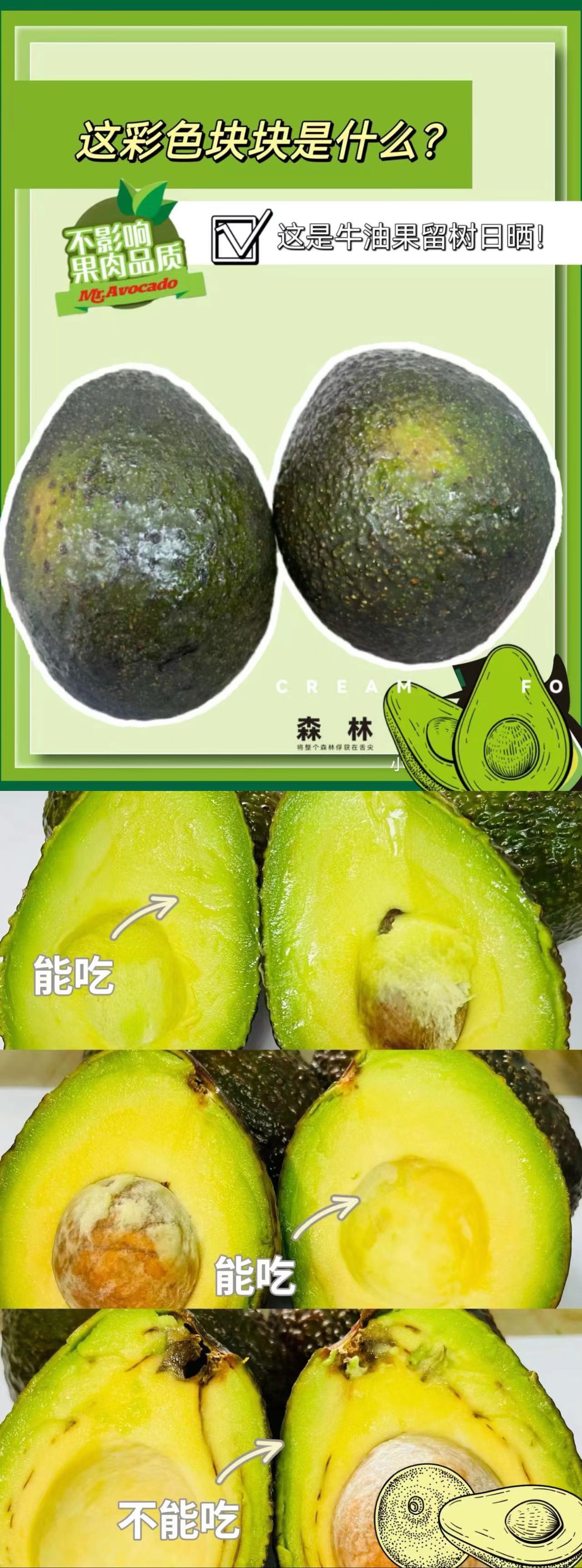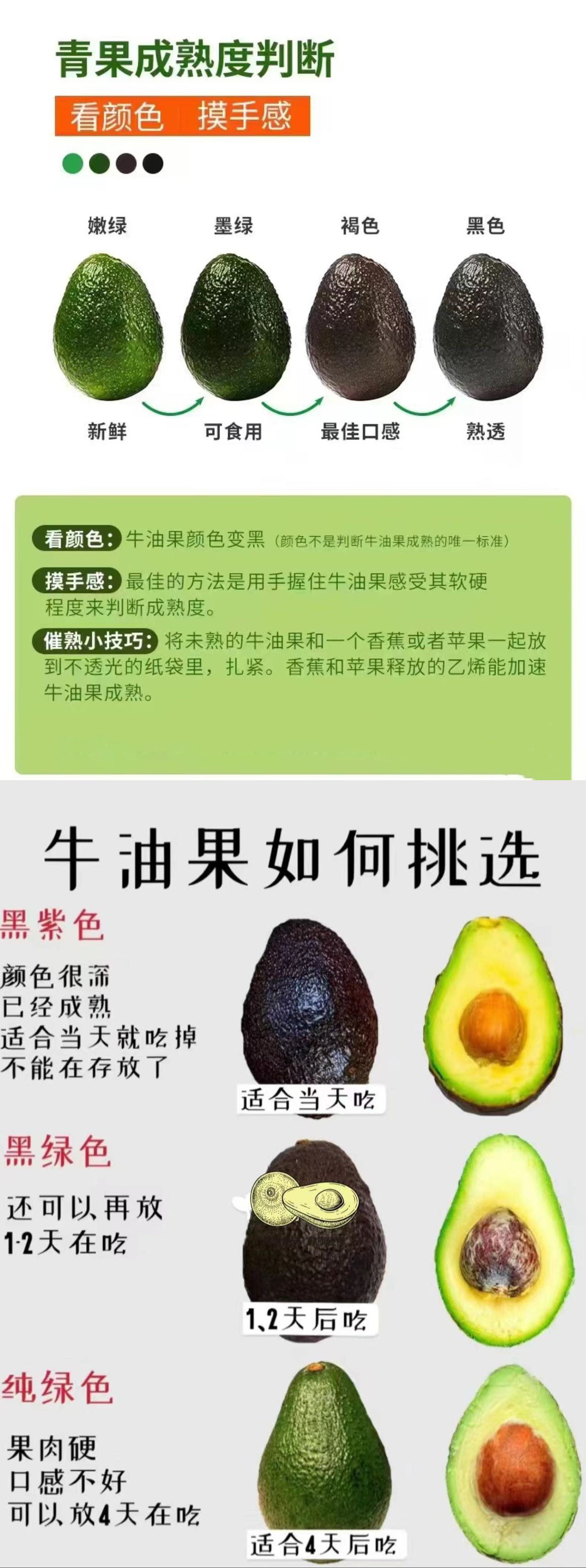 1、牛油果属于后熟性水果,发货的果子通常为7-8成熟所以收到的果子为嫩绿或深绿。