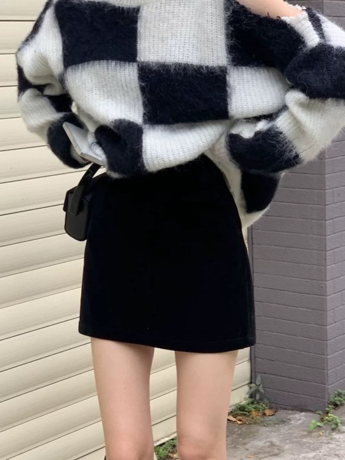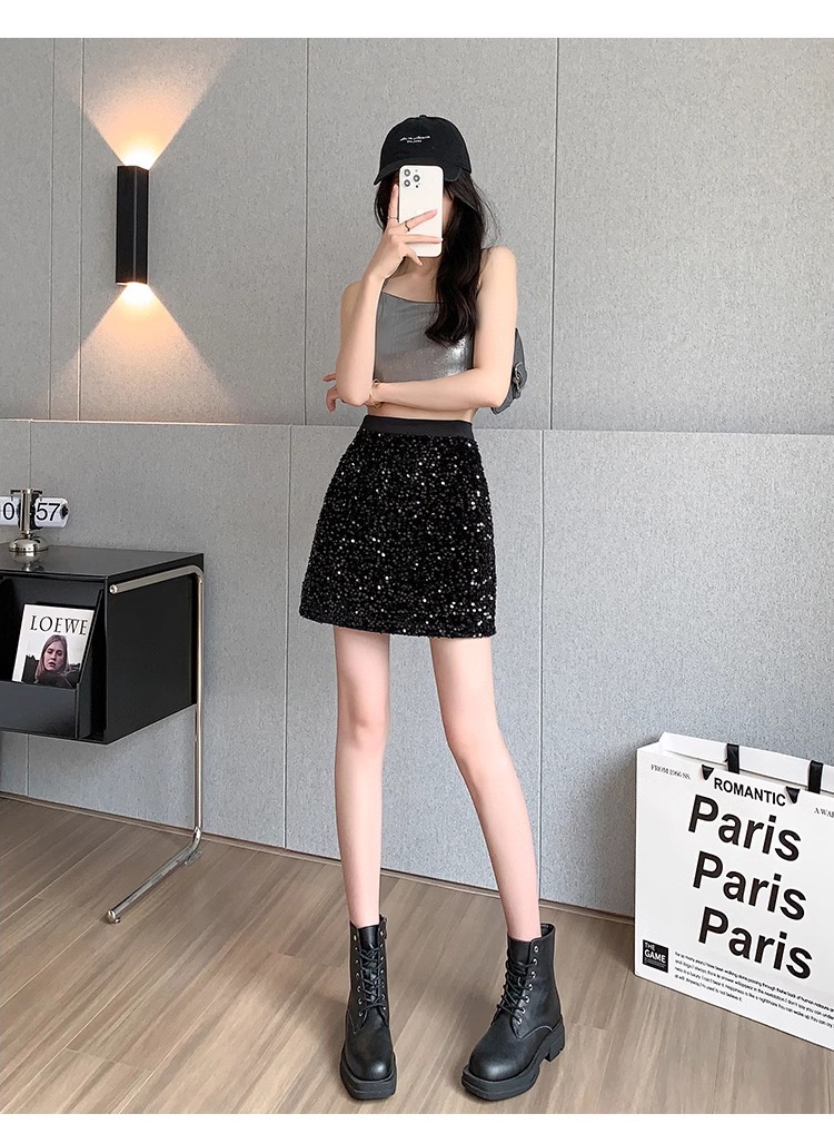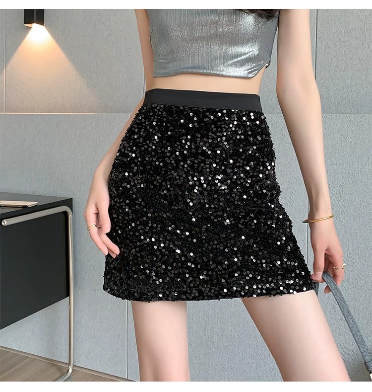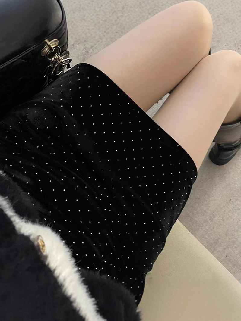 【YW】无忧购韩系ins风温柔甜美丝绒烫钻高腰显瘦小个子半身裙(截单后7天发货)25年清仓捡漏