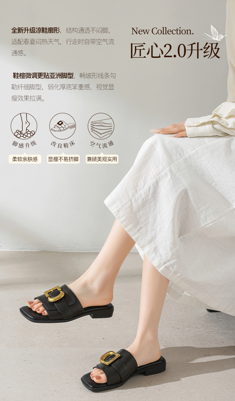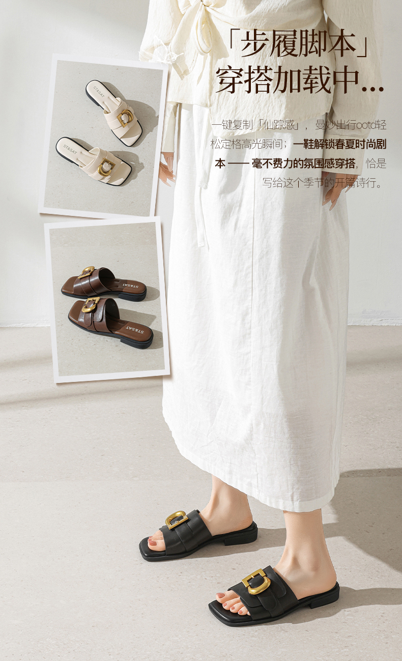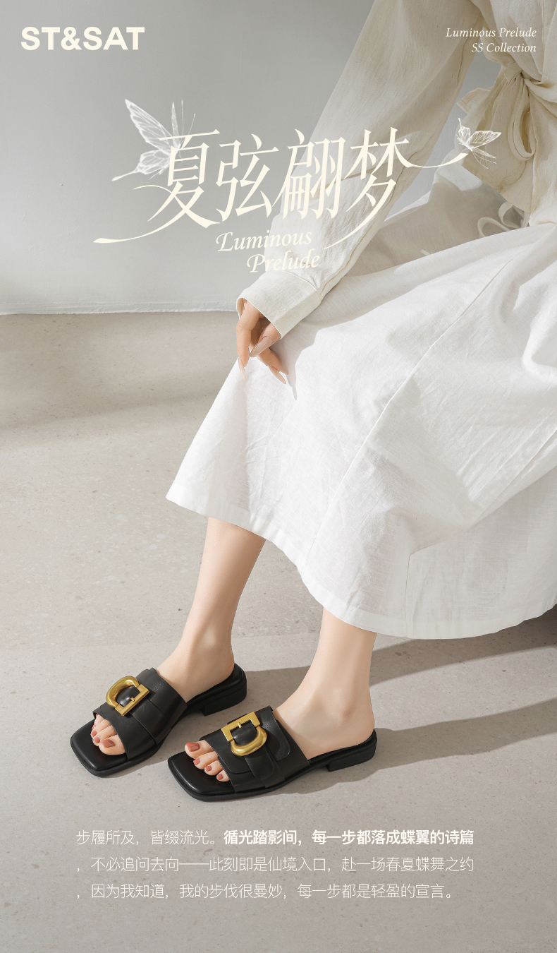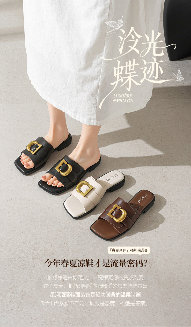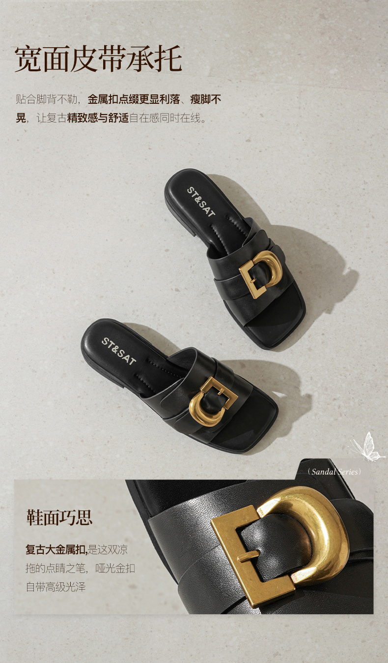 星期六26夏新款时尚金属扣休闲度假凉拖SSE2110CHU