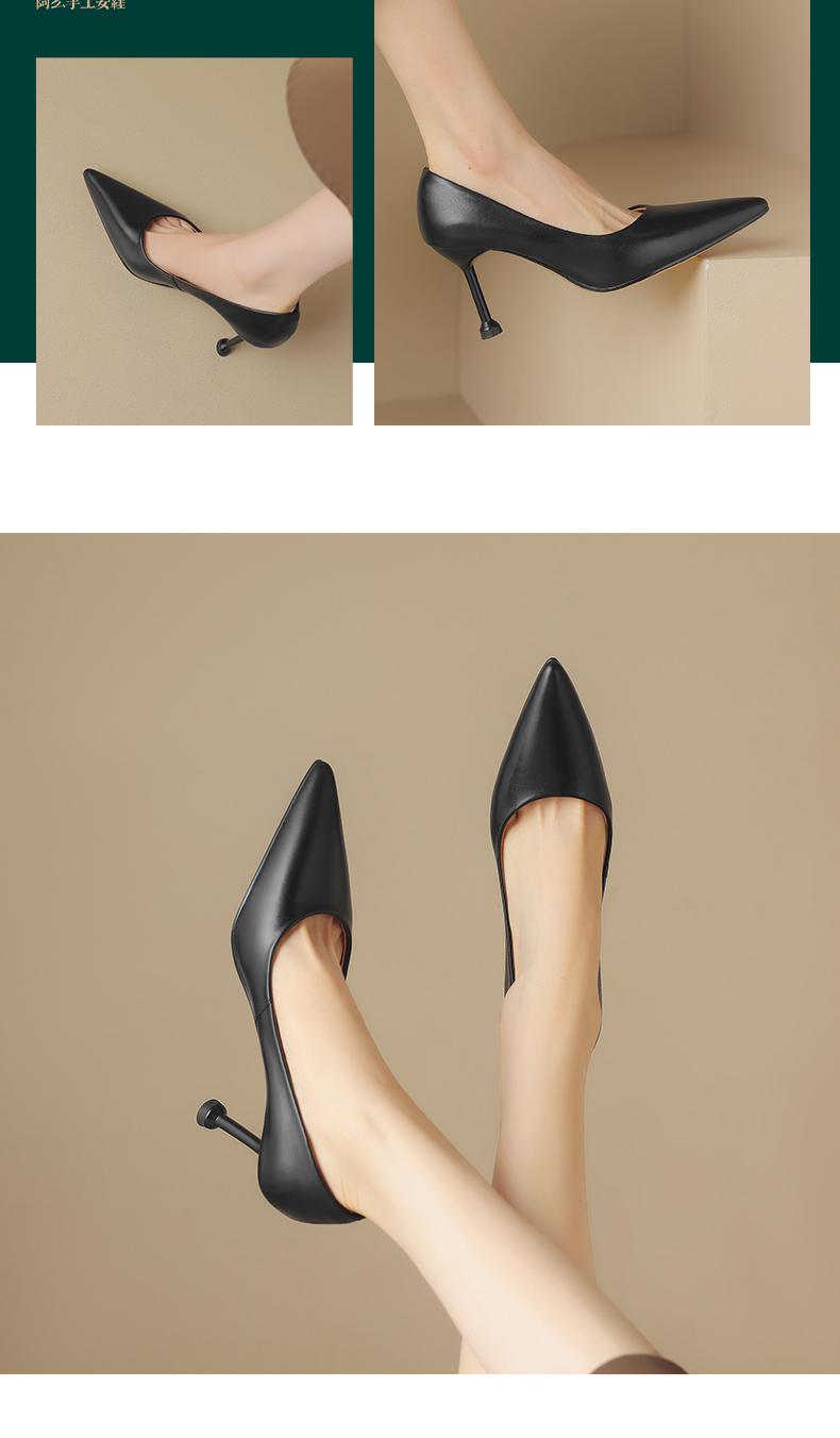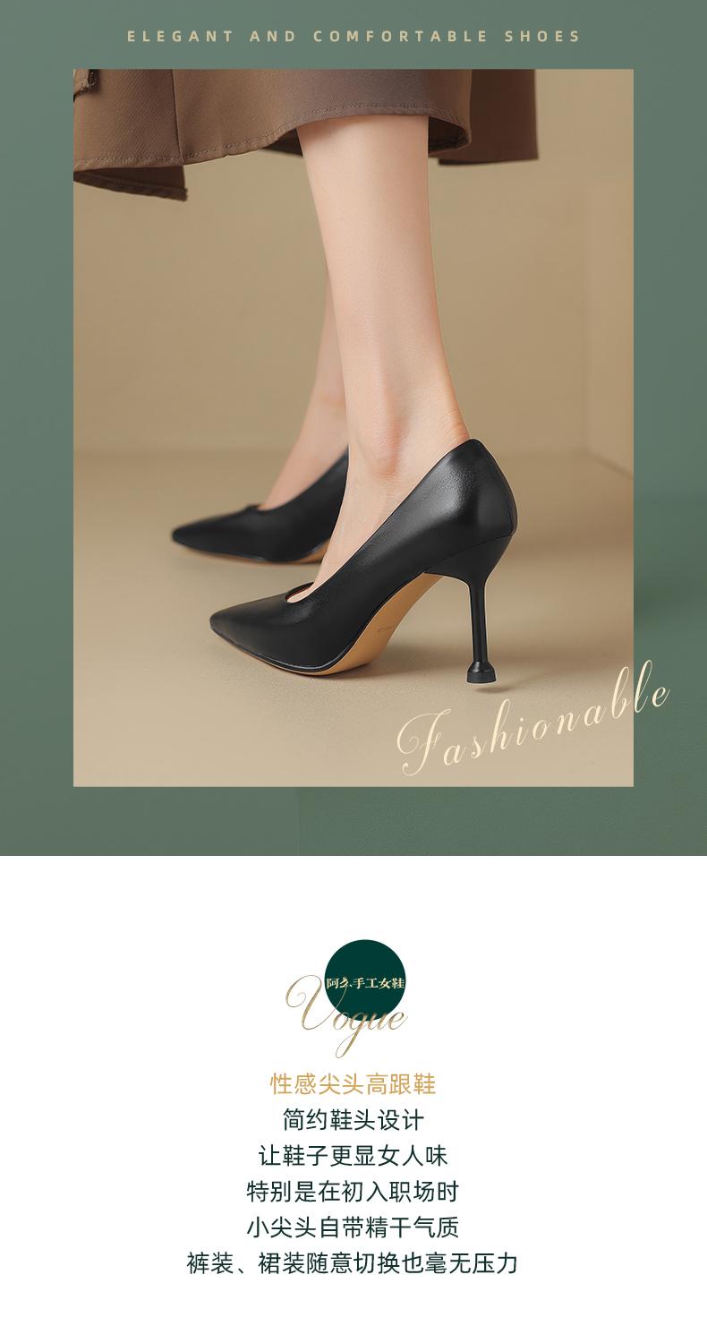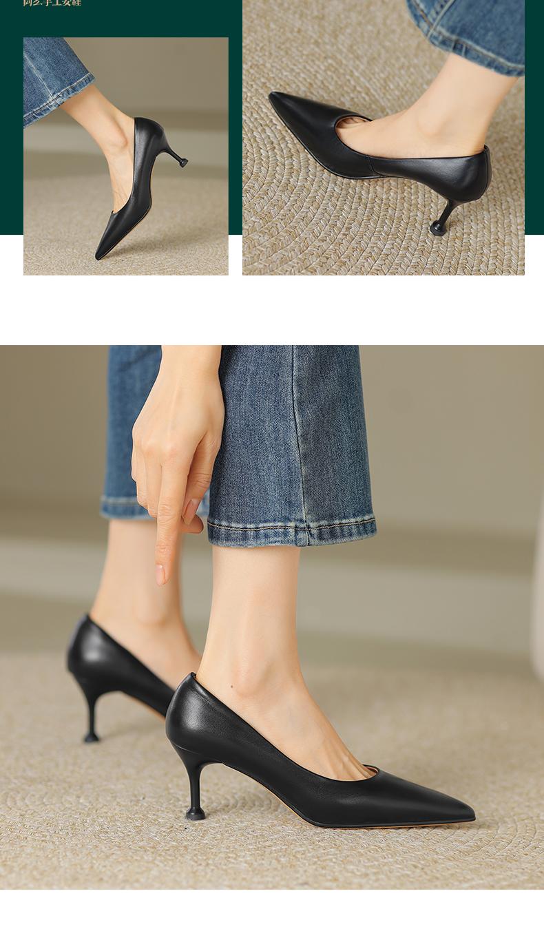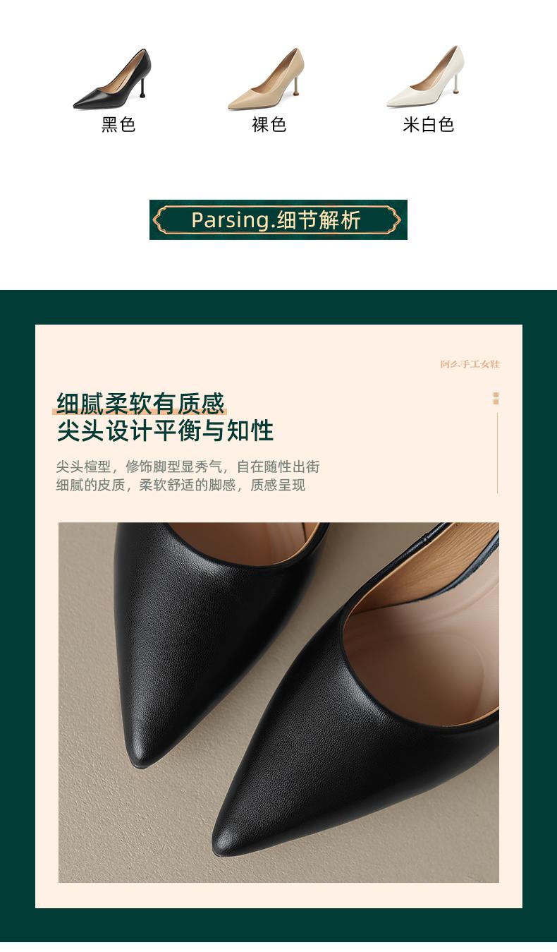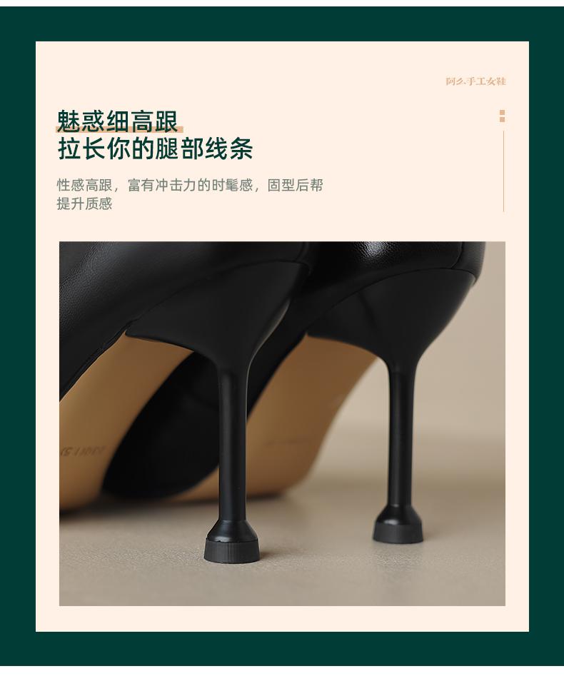 阿么手工女鞋真皮细跟高跟鞋2025新款简约浅口小众气质单鞋6.6CM