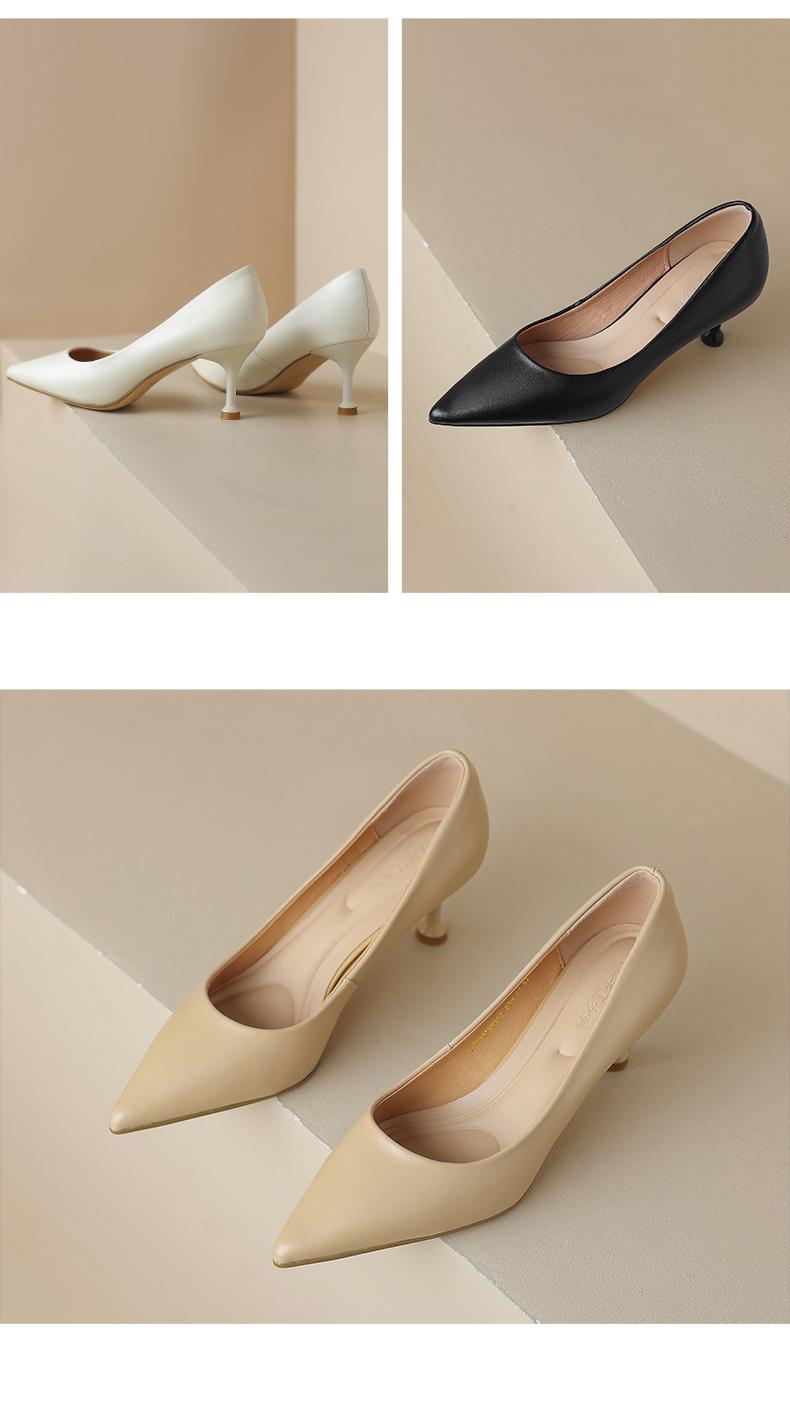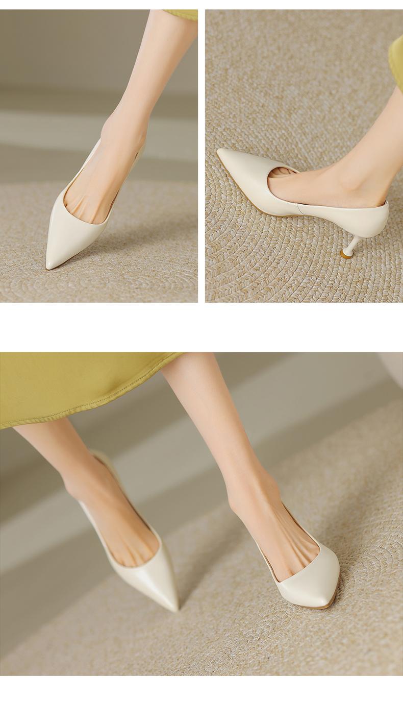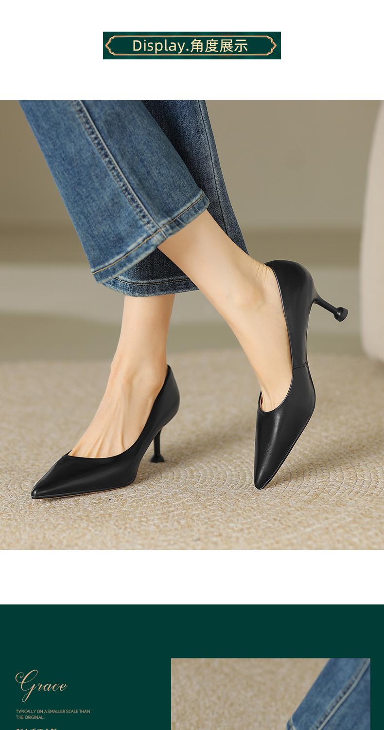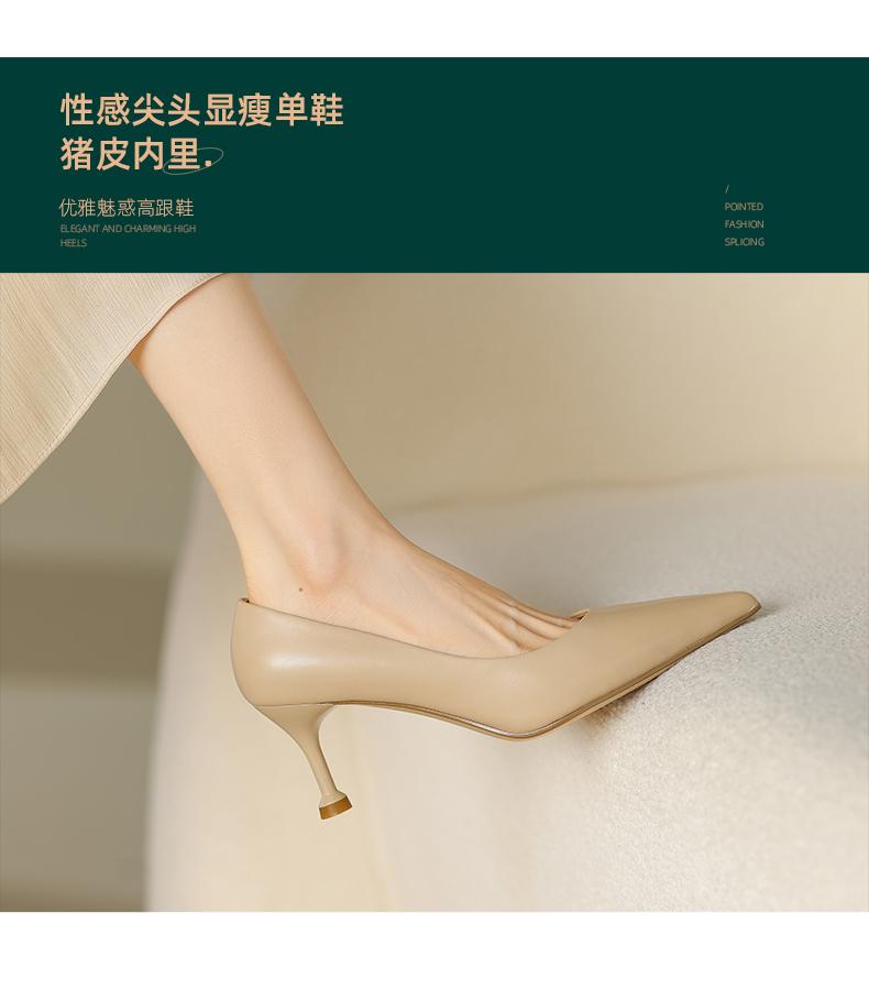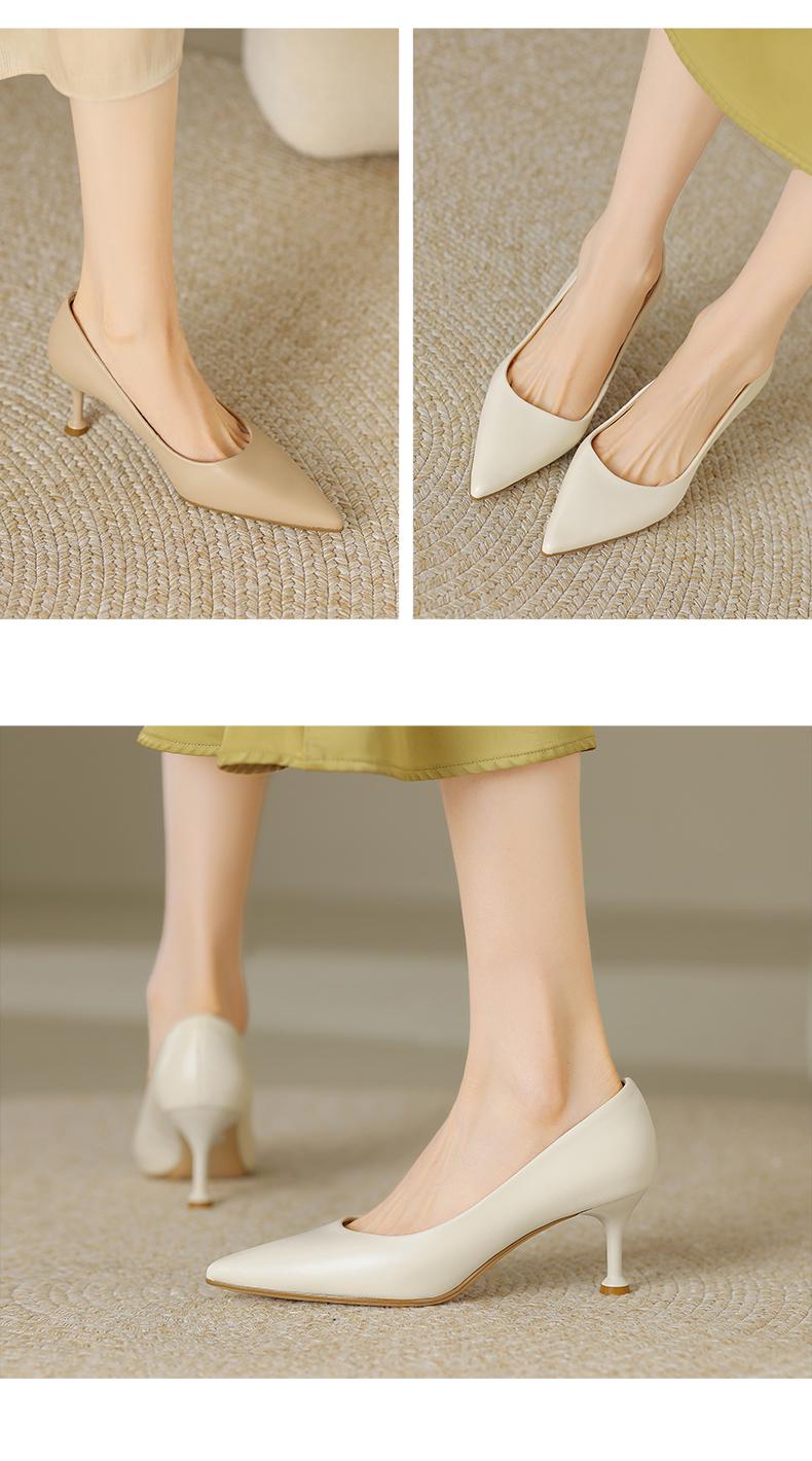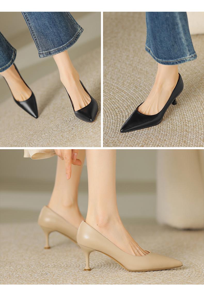 阿么手工女鞋真皮细跟高跟鞋2025新款简约浅口小众气质单鞋6.6CM
