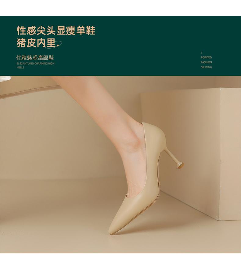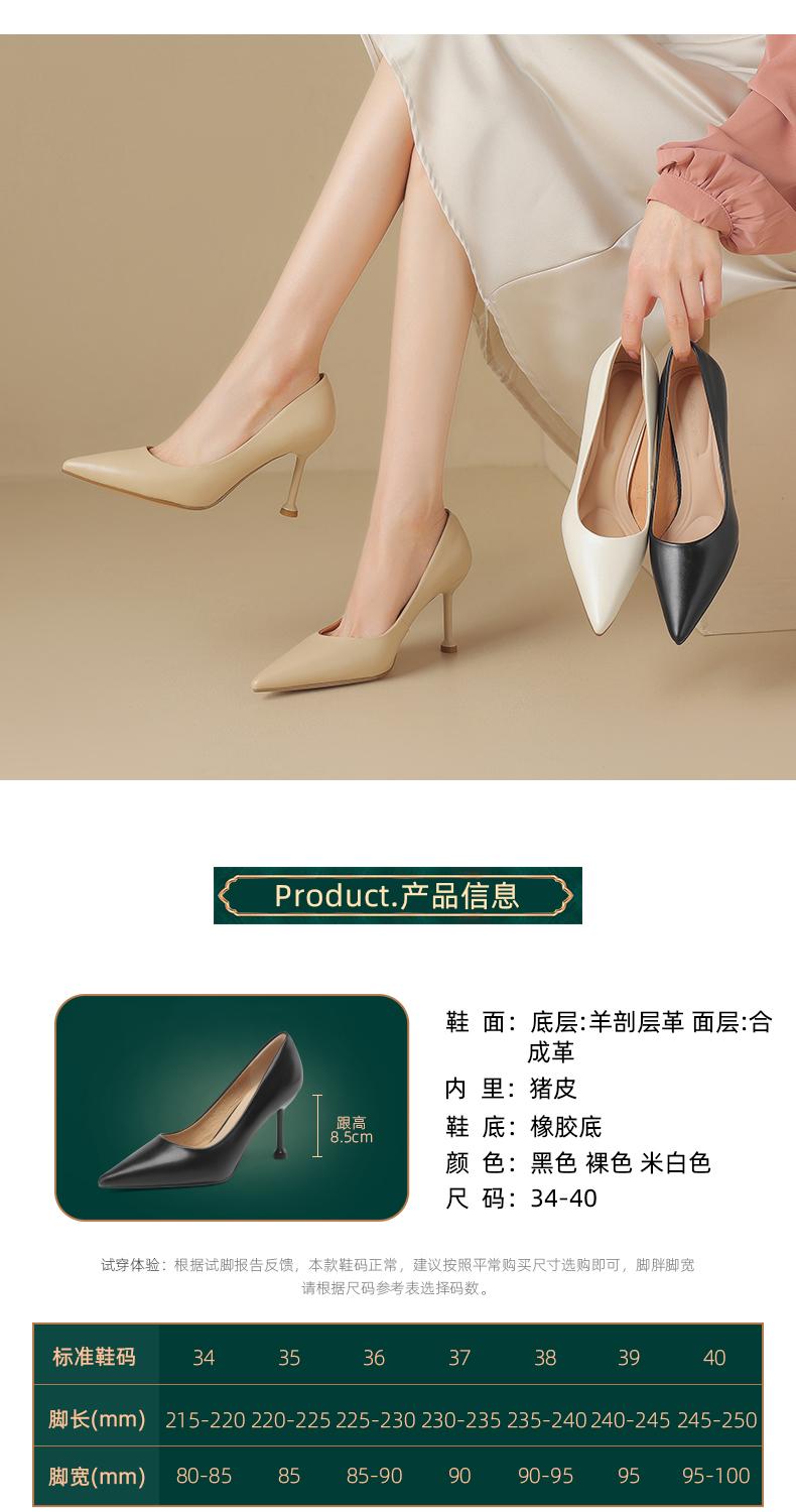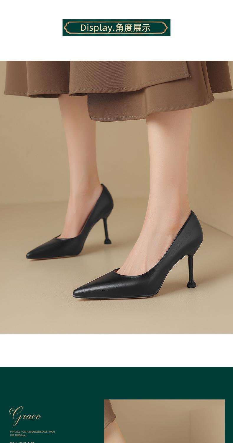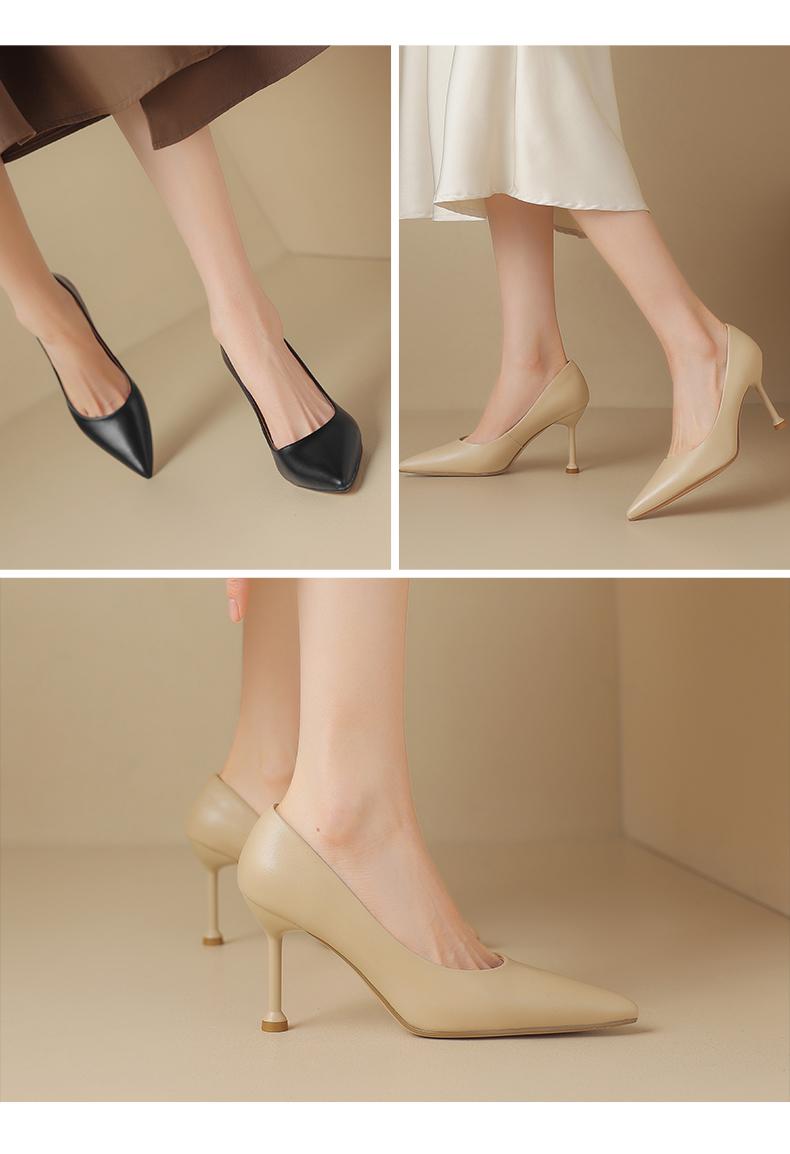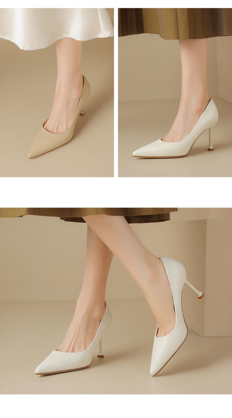 阿么手工女鞋真皮细跟高跟鞋2025新款简约浅口小众气质单鞋6.6CM