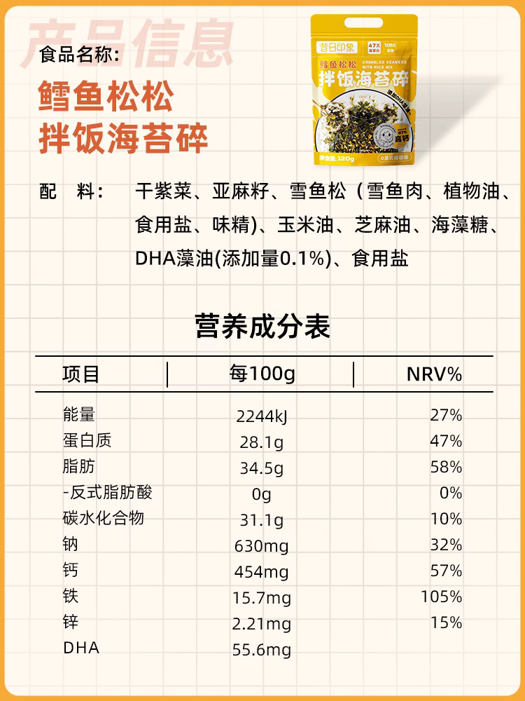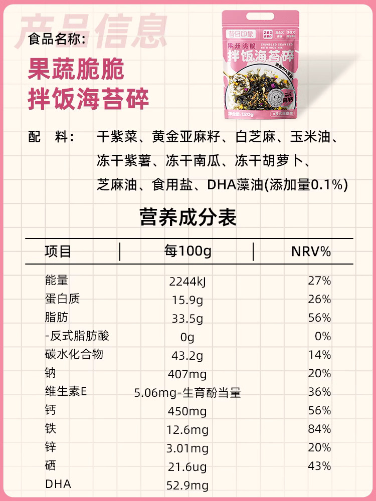 昔日印象海苔碎拌饭芝麻儿童无添加高钙饭团材料紫菜商用即食零食