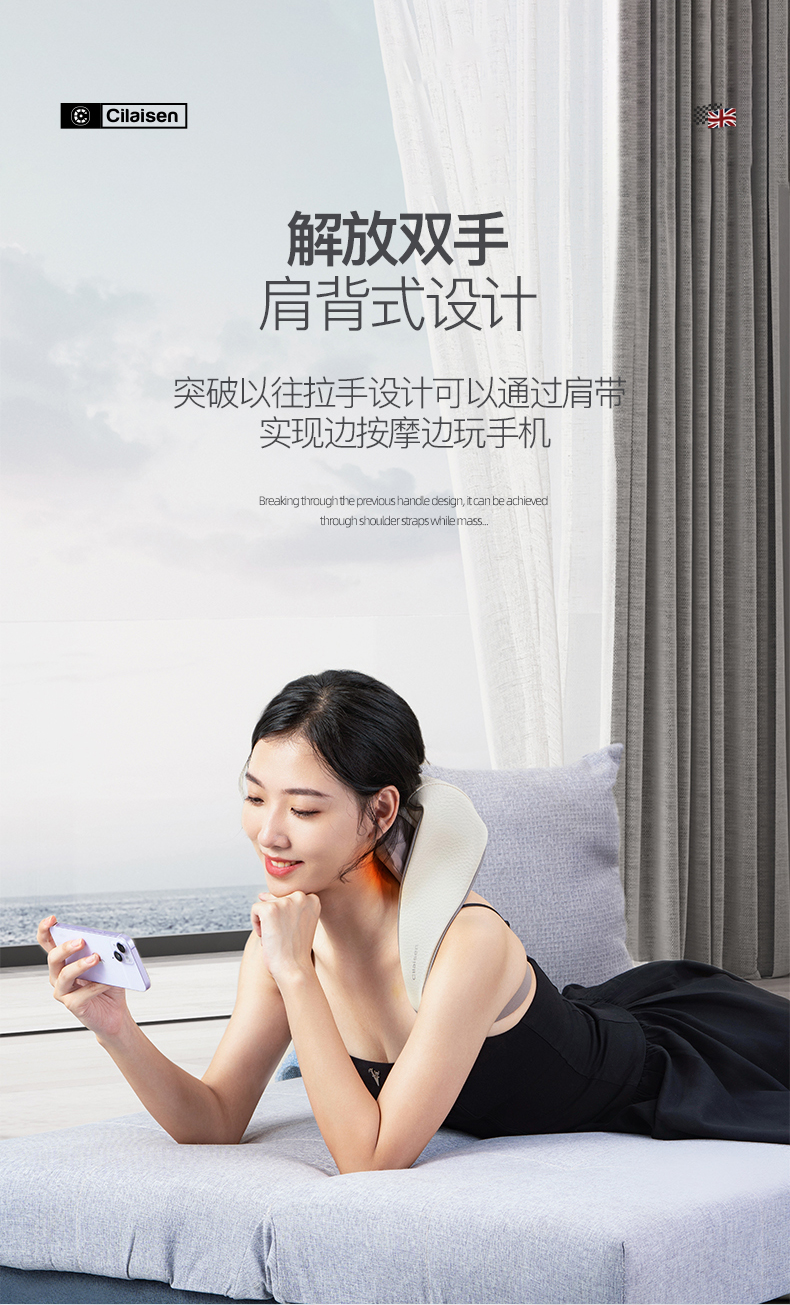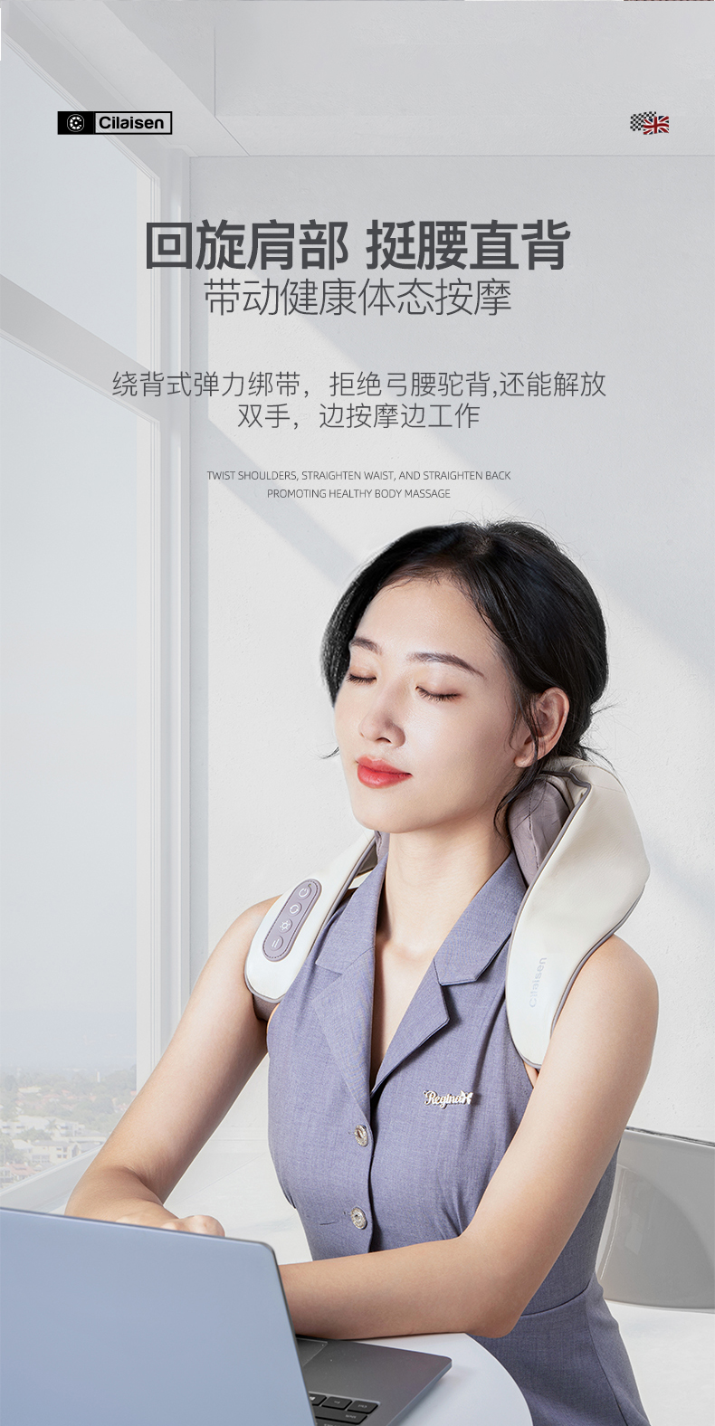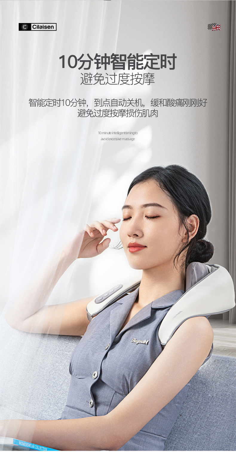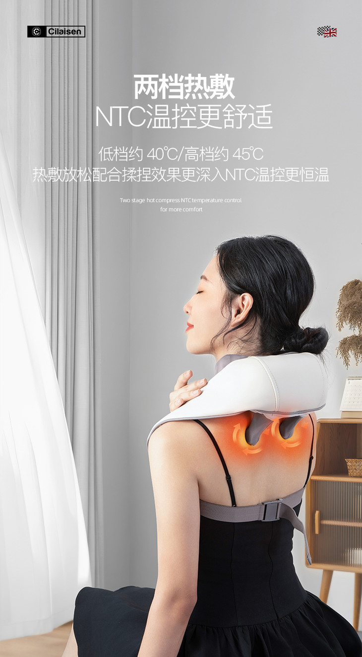疯抢中!!【支持15天免费试用】【英国Cilaisen肩颈按摩仪】两档热敷 5D仿人手真揉捏 背带式佩戴设计 可拆洗更卫生 小巧轻便(精美礼盒装)