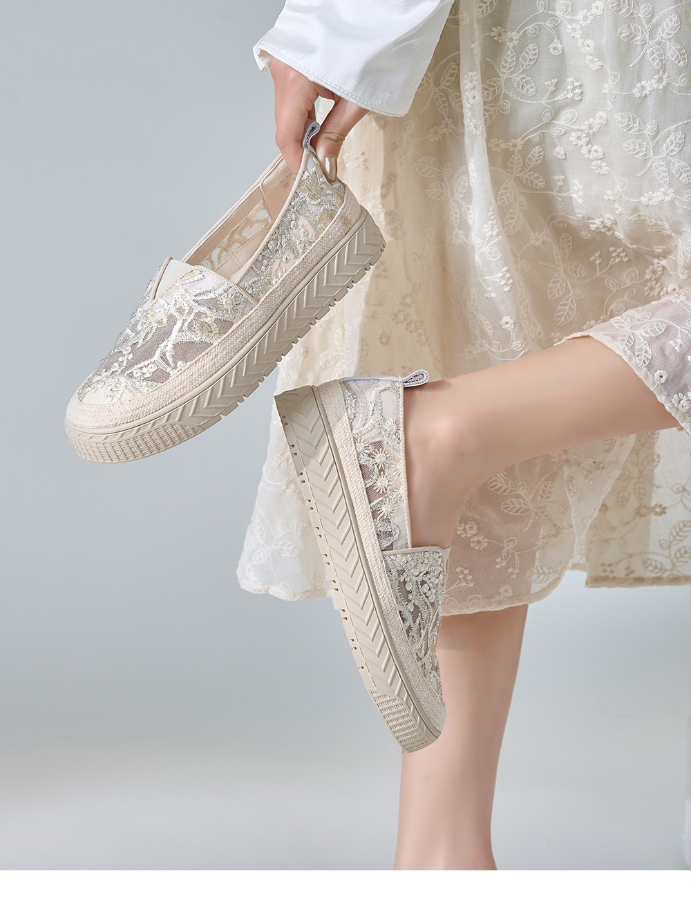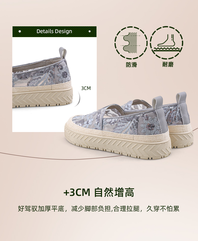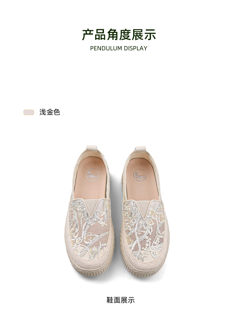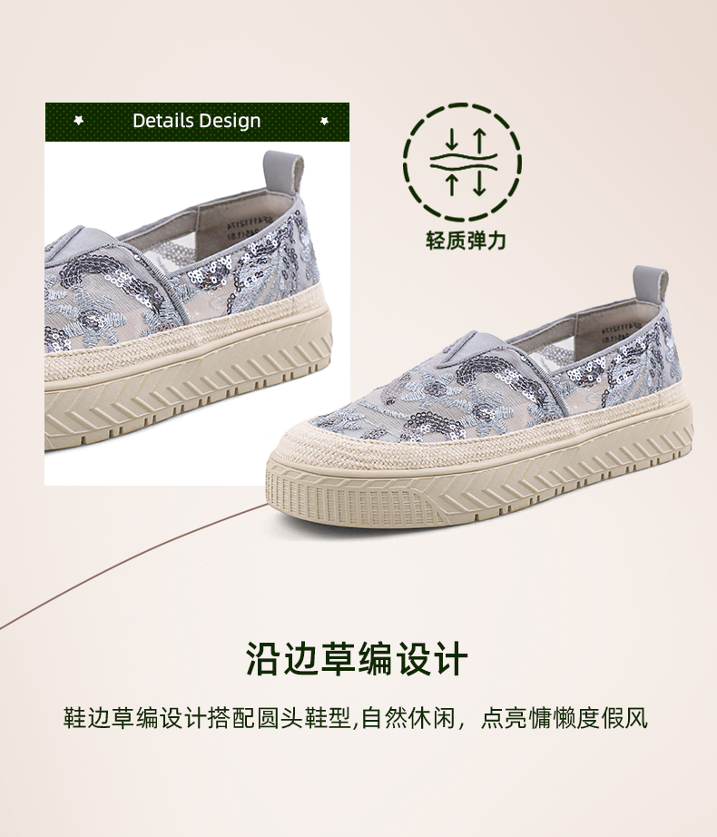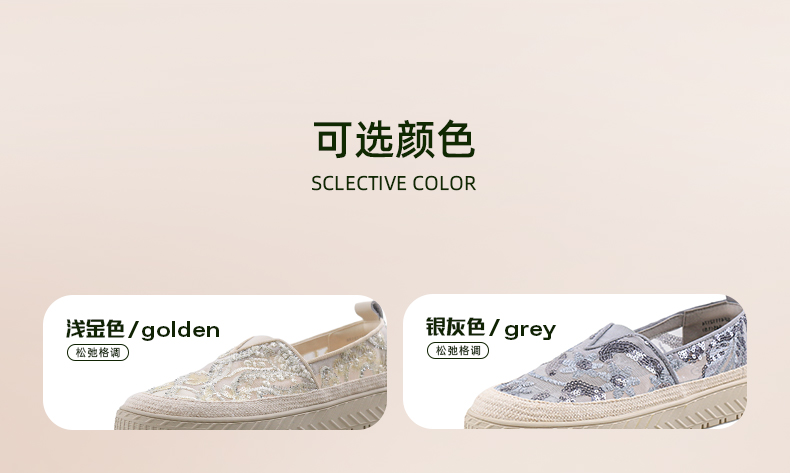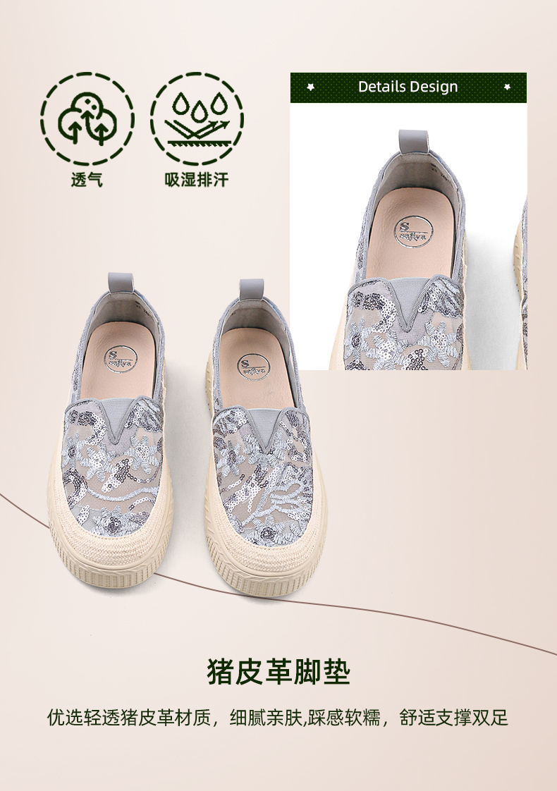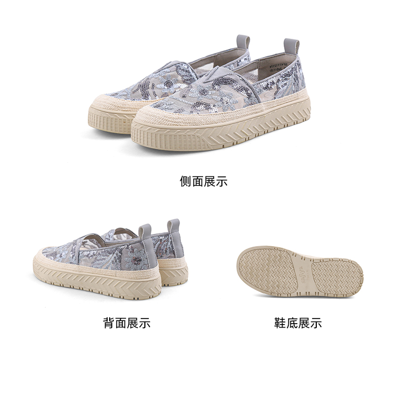 Safiya/索菲娅2024春夏软底懒人一脚蹬亮片网纱蕾丝渔夫鞋 SF41112174