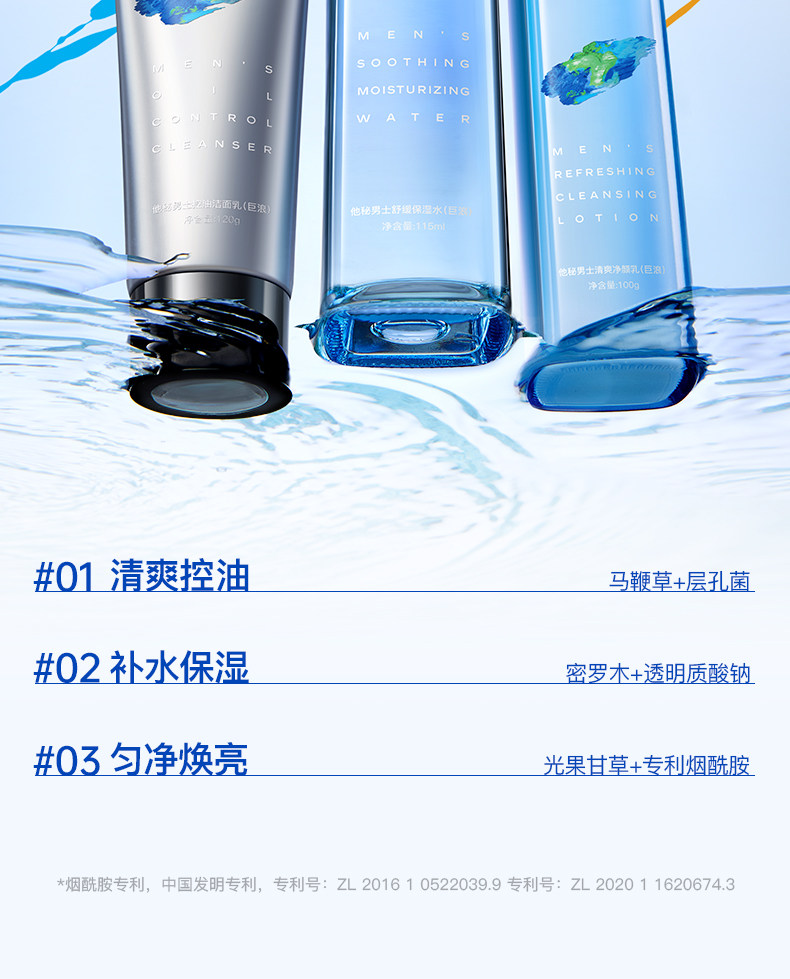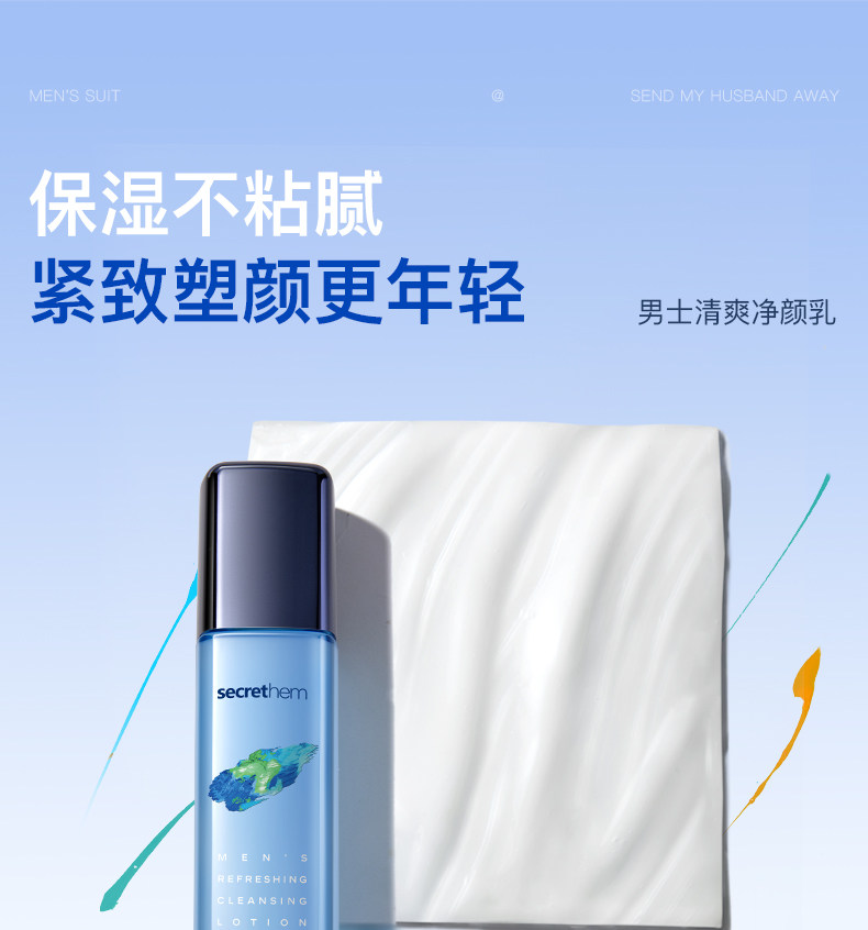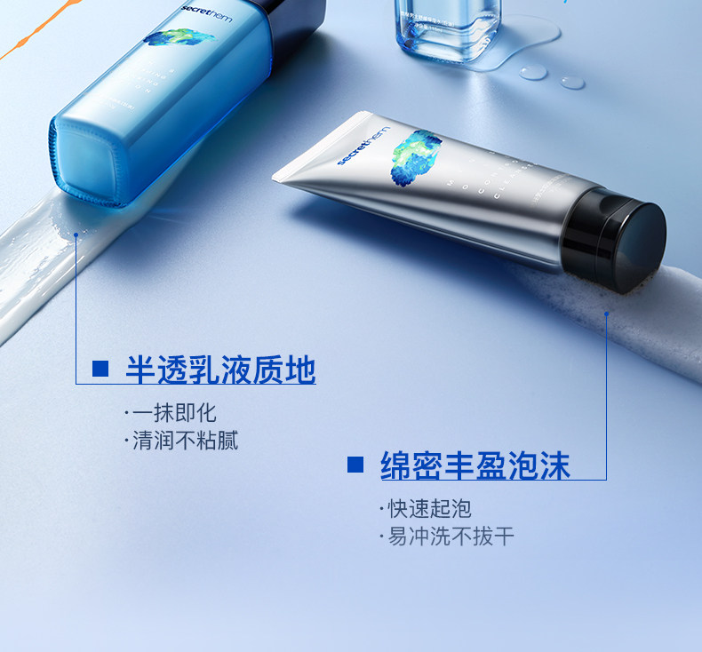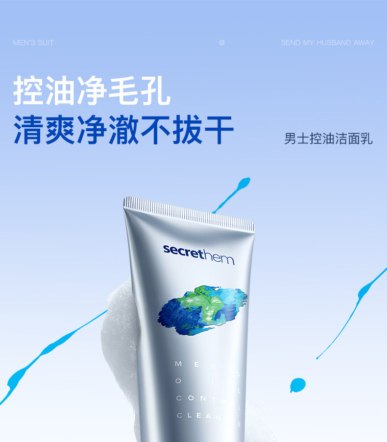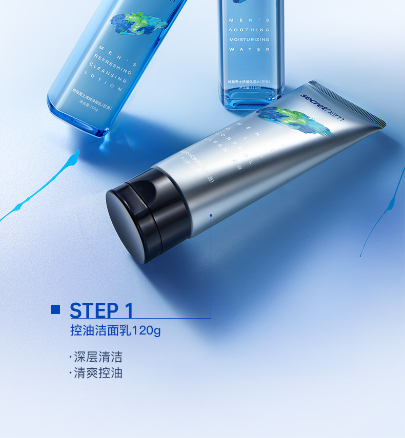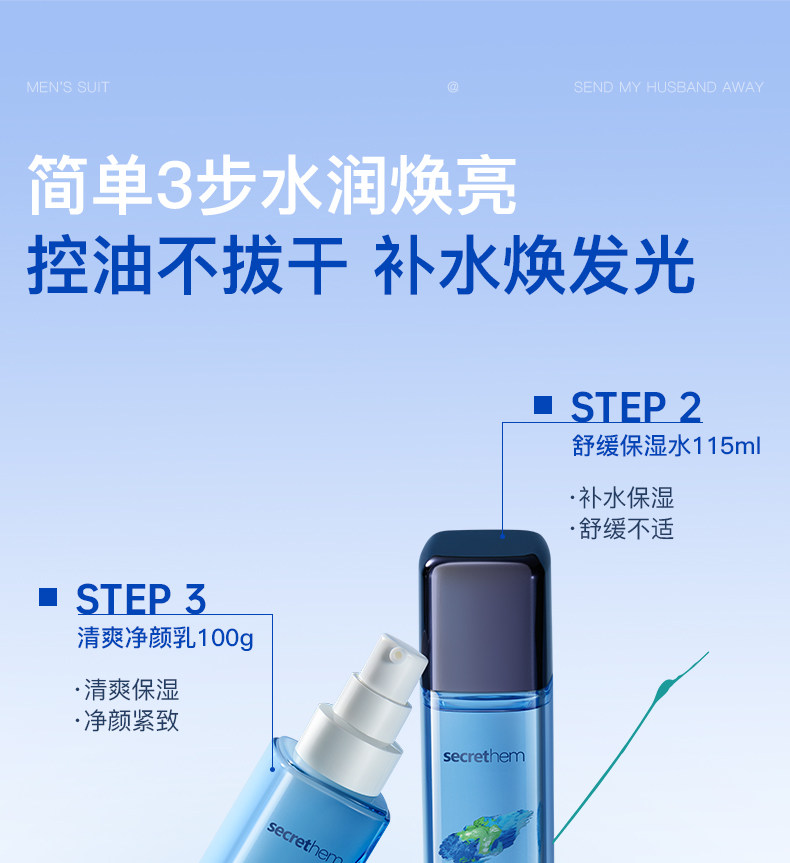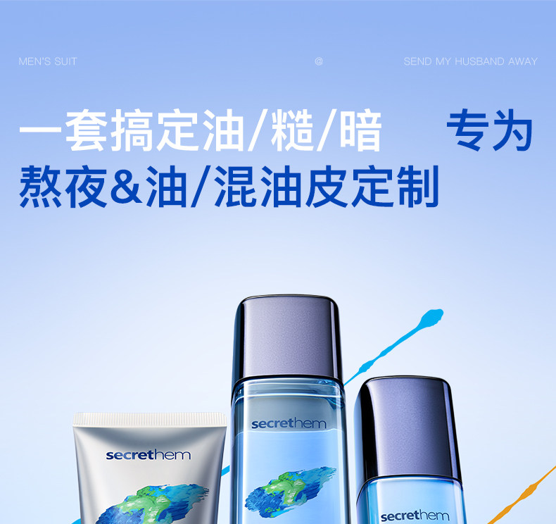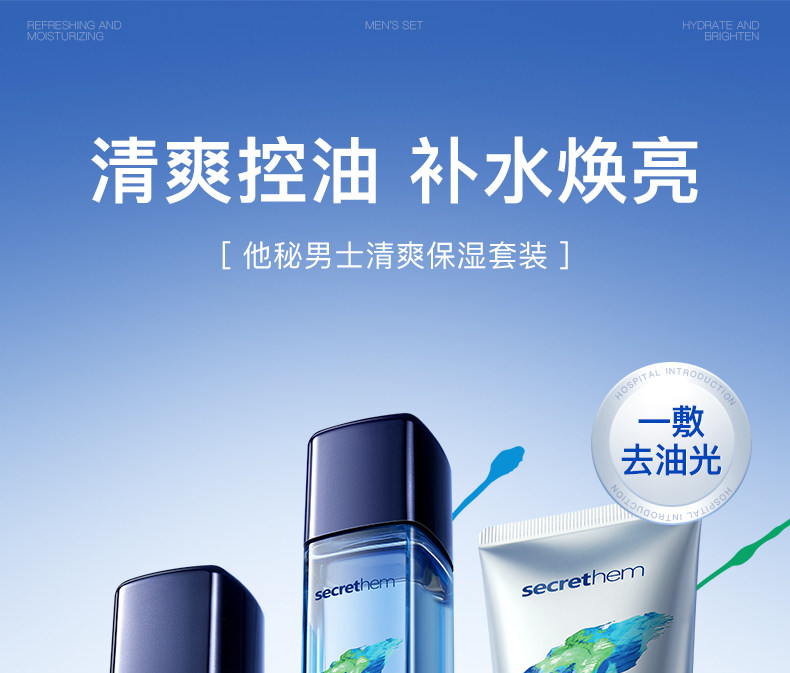 secrethem他秘男士清爽控油洁面水乳套装(巨浪)