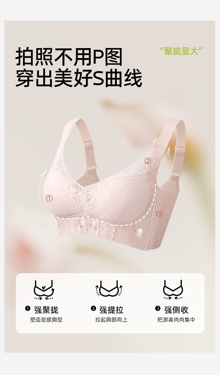 【调整型】熳洁儿 小胸强聚拢文胸托玛琳按摩杯收副乳防下垂蕾丝文胸25761506