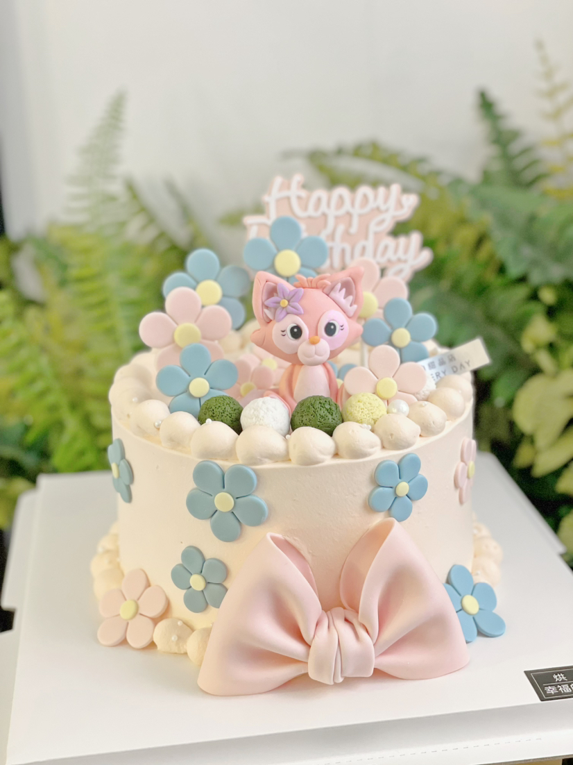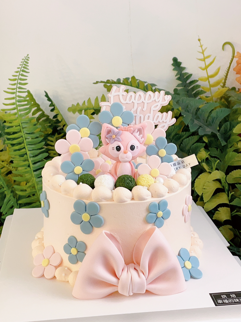 翻糖花花林娜贝尔,留住美好时光,川沙妲己粉色小狐狸主题蛋糕,请提前2天预定