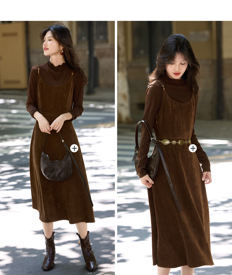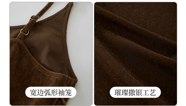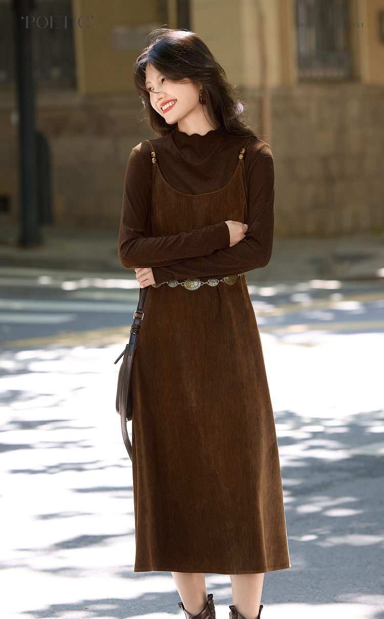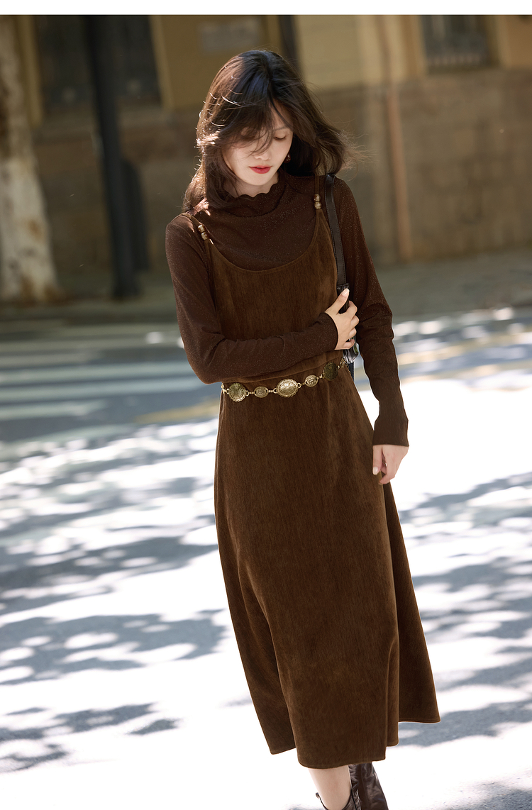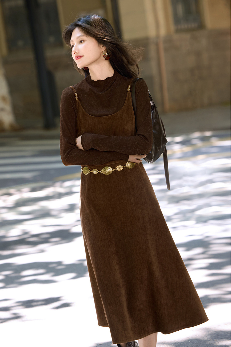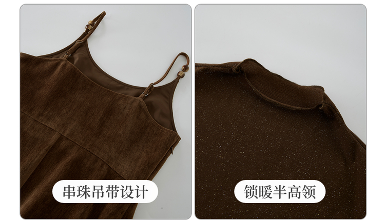 【11/5新品】熙世界流光琥珀棕色连衣裙套装女2025秋冬新款打底衫吊带裙两件套
