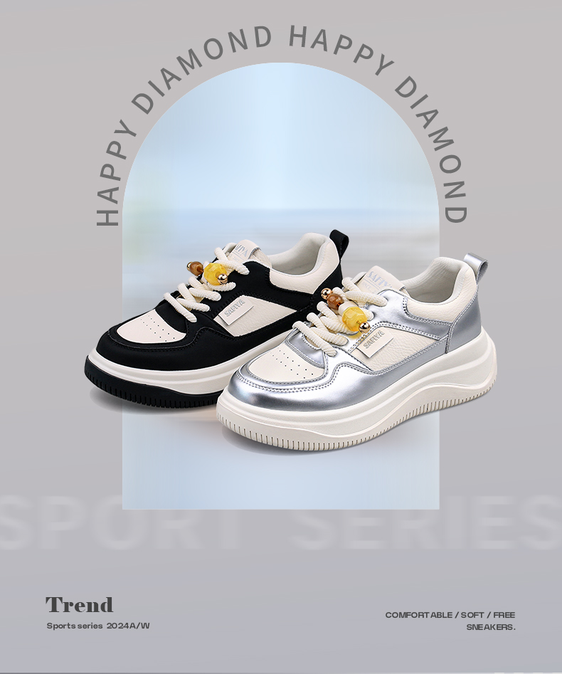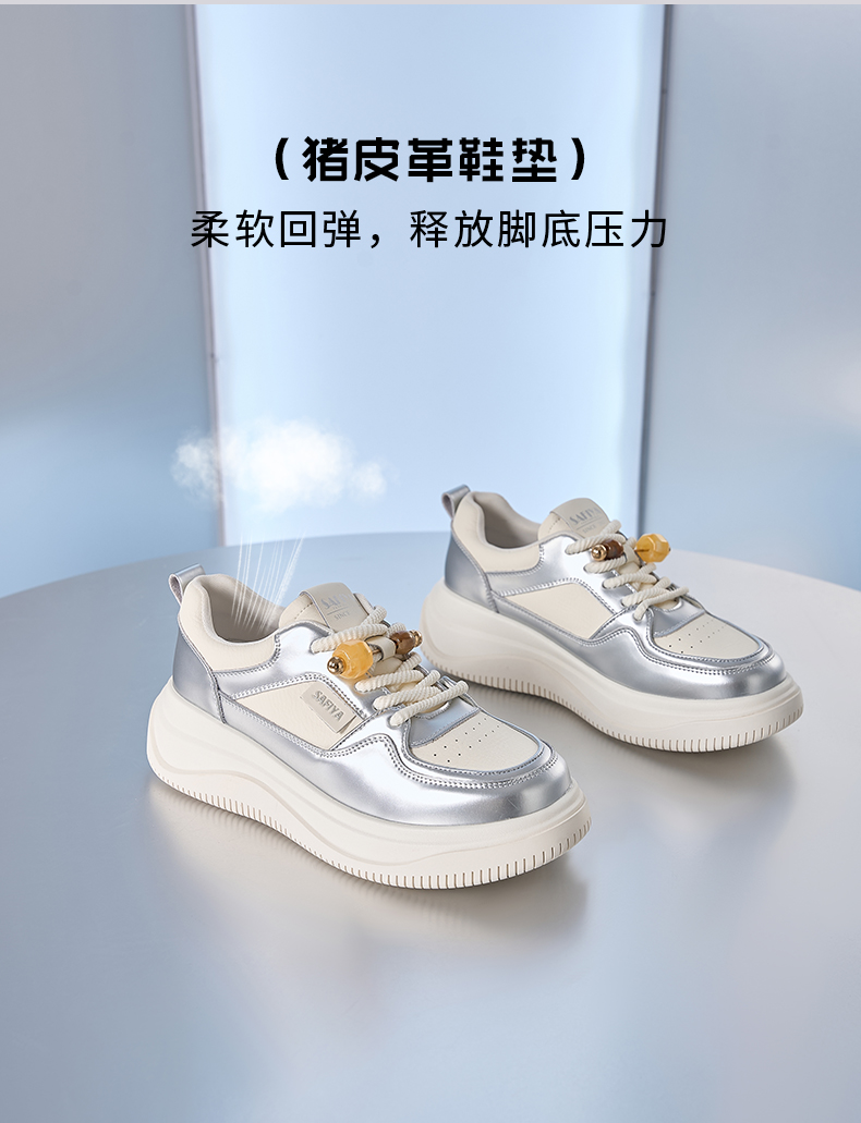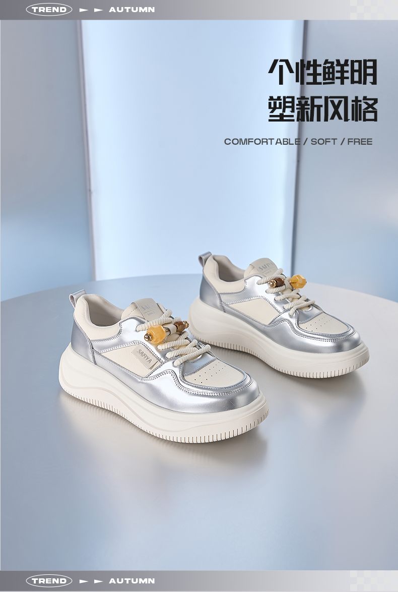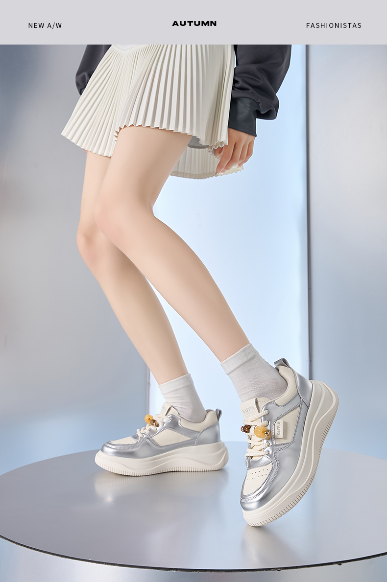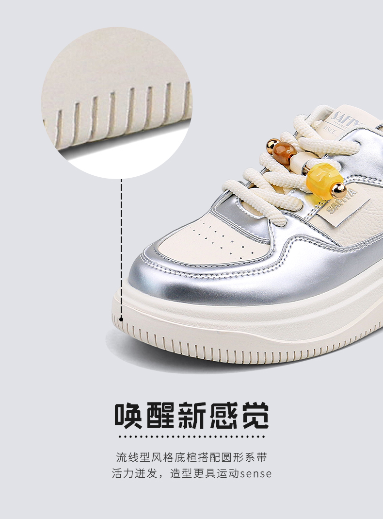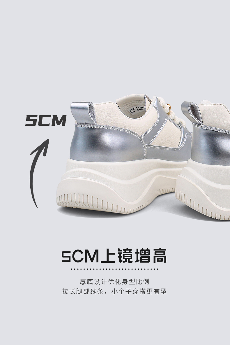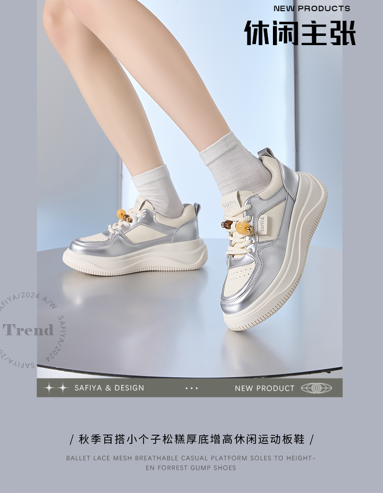 Safiya/索菲娅2024秋季百搭小个子松糕厚底增高休闲运动板鞋 SF43112102