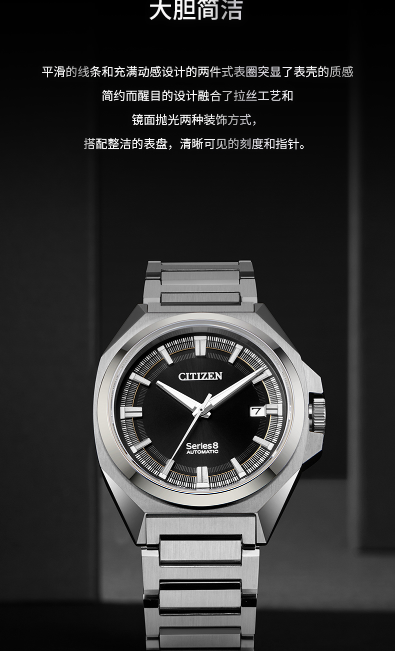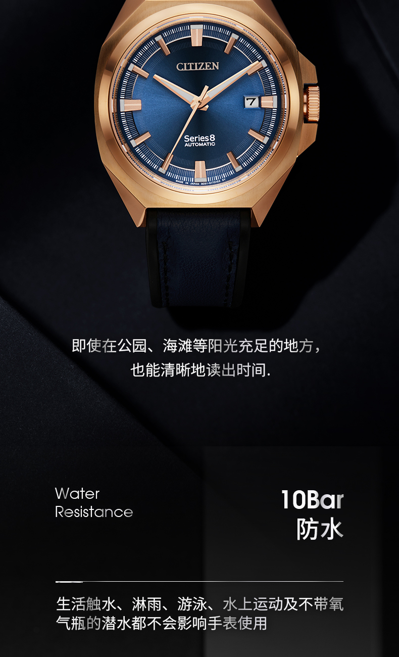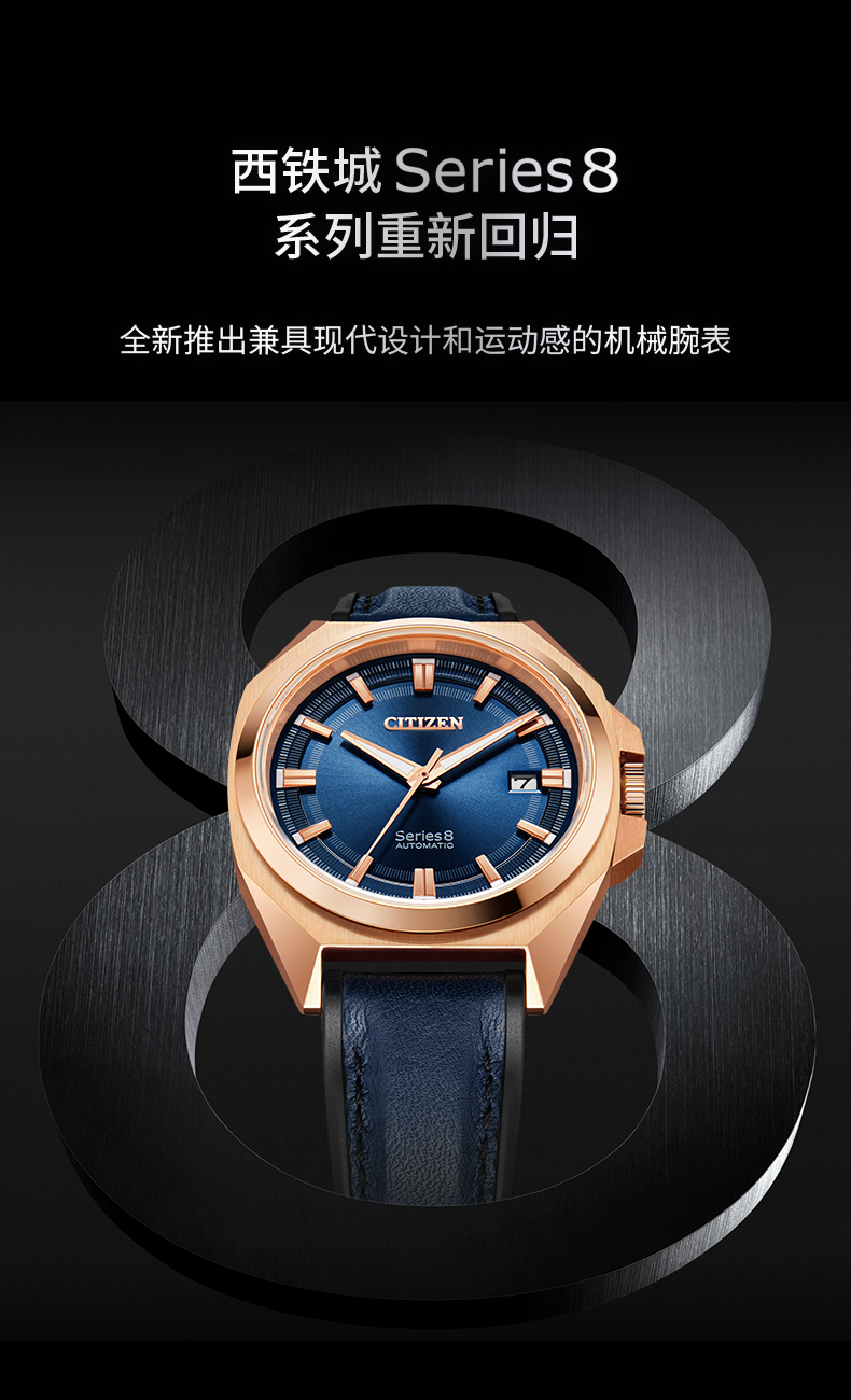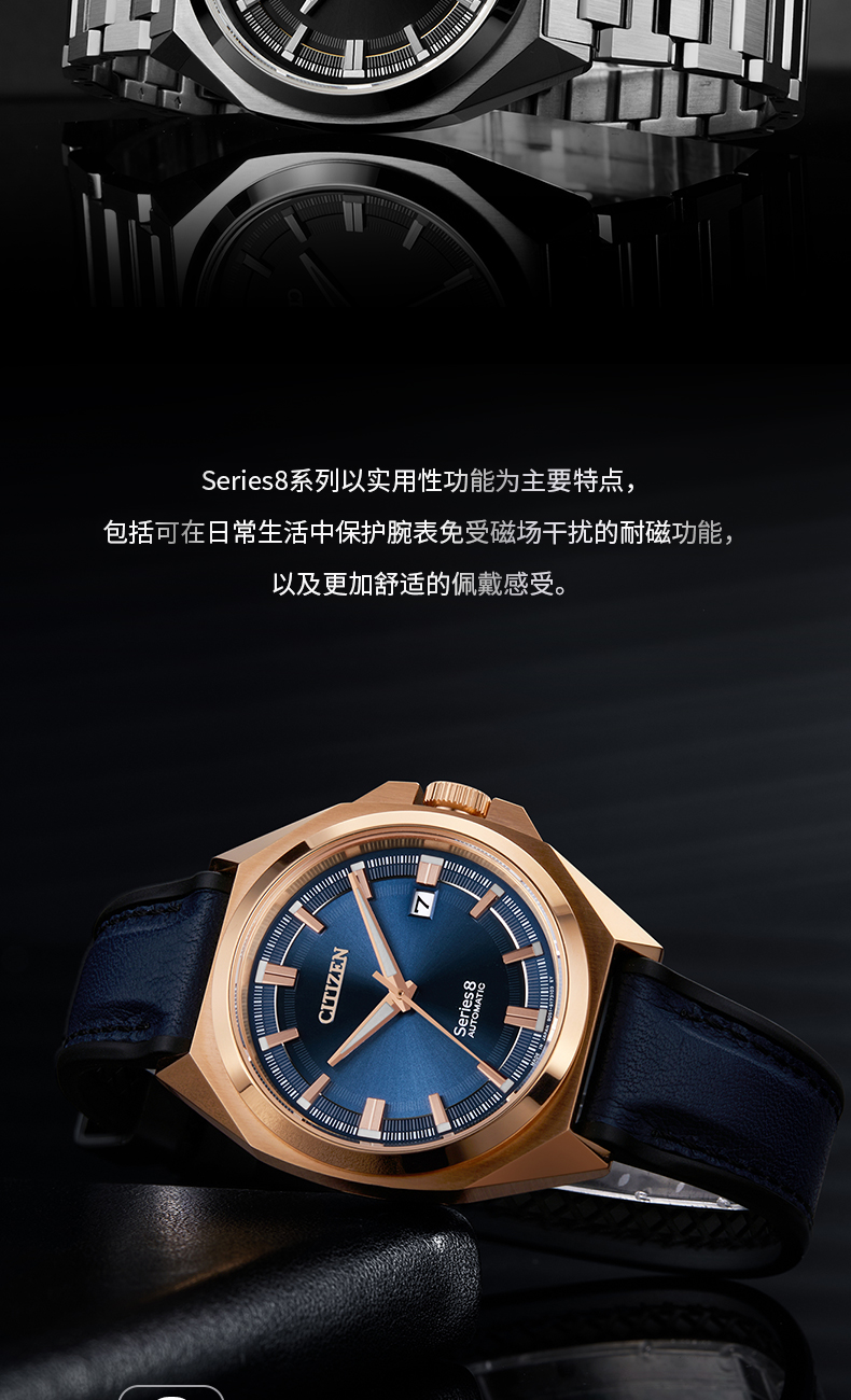 西铁城日本正品全新Series8系列商务休闲不锈钢镀玫瑰金色日历机械表NB6012-18L