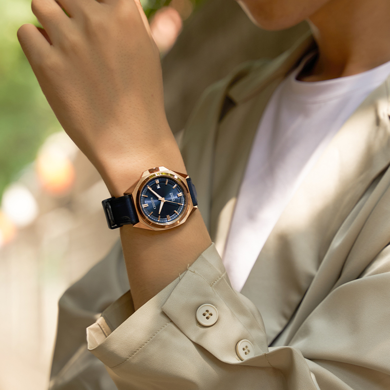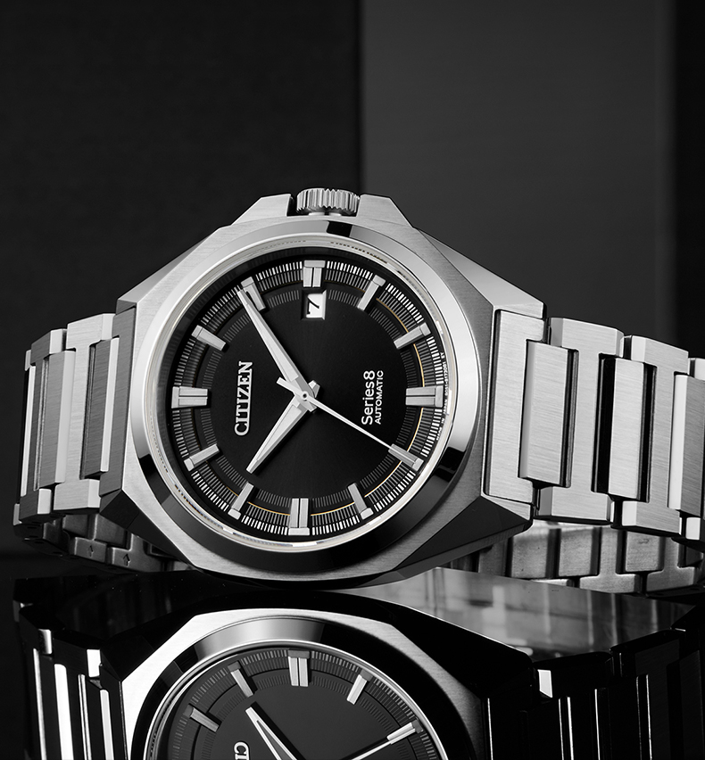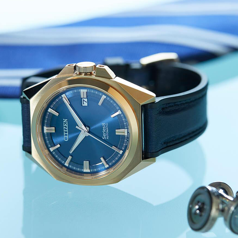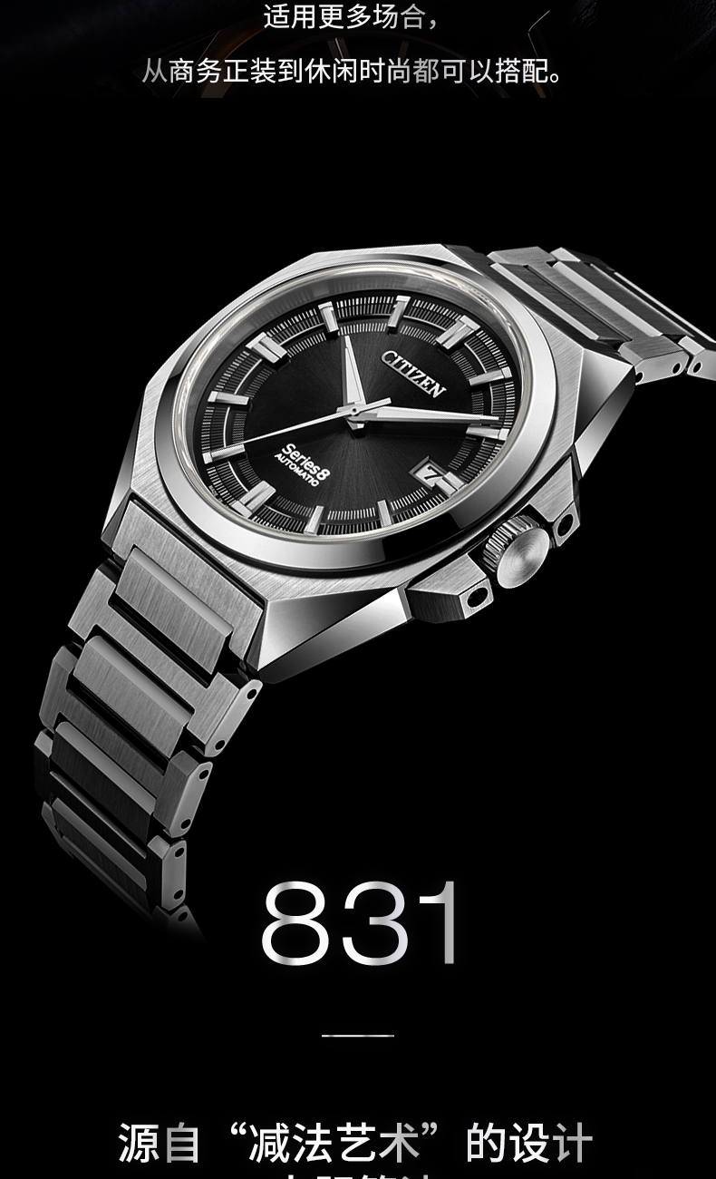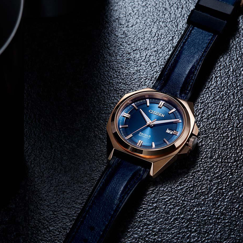西铁城日本正品全新Series8系列商务休闲不锈钢镀玫瑰金色日历机械表NB6012-18L