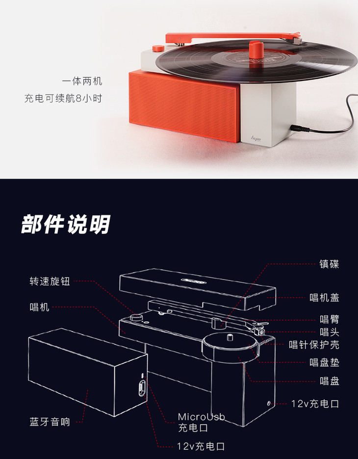 嘿哟HYM-DUO潮品黑胶唱片机蓝牙音箱语音控制便携创意智能电唱机