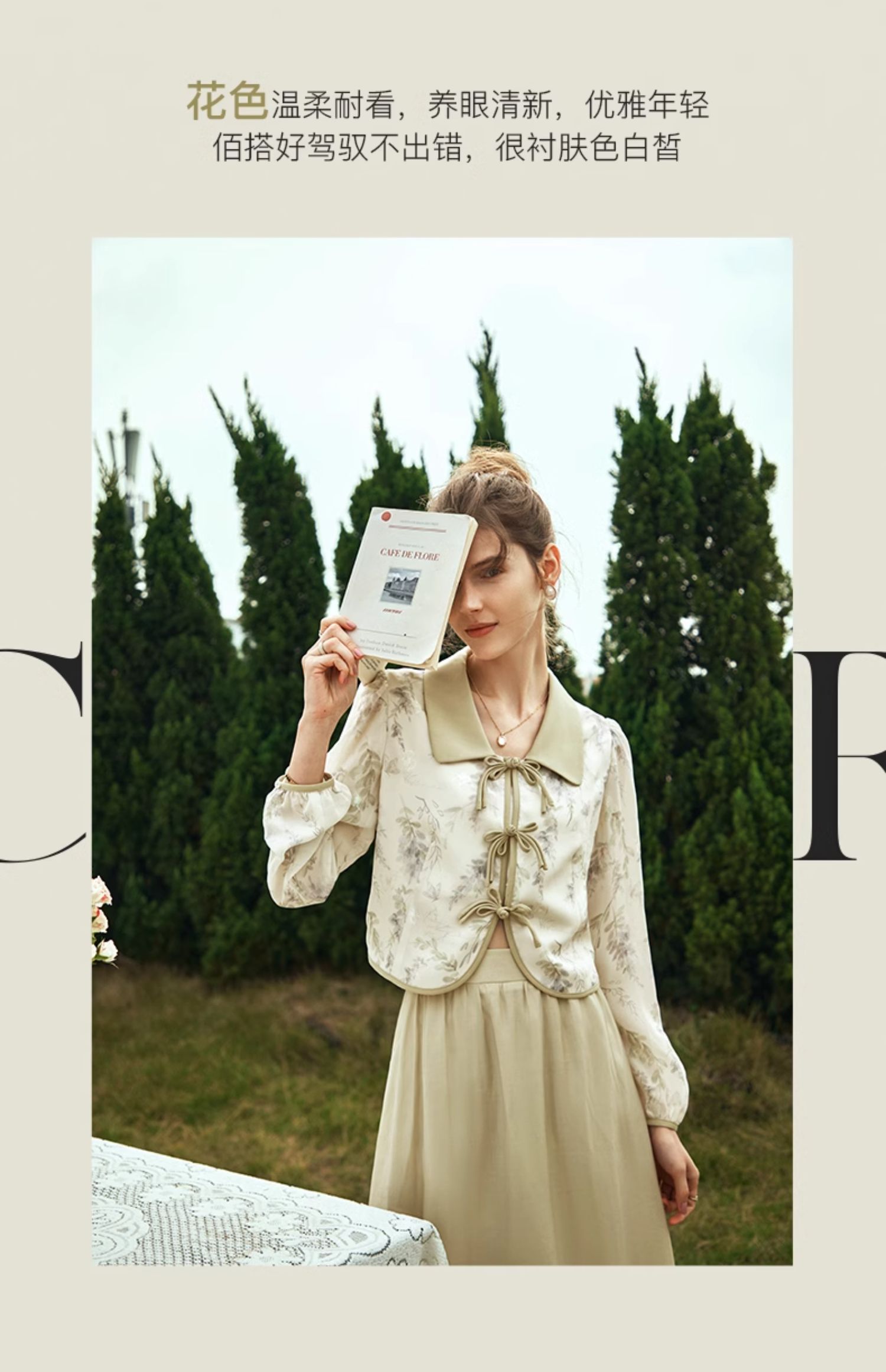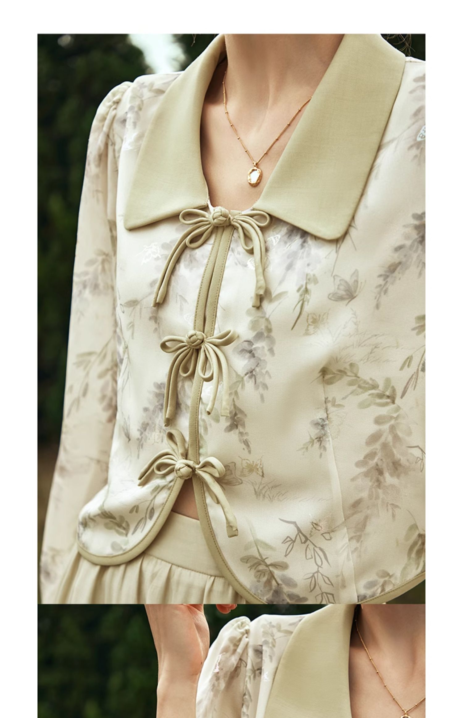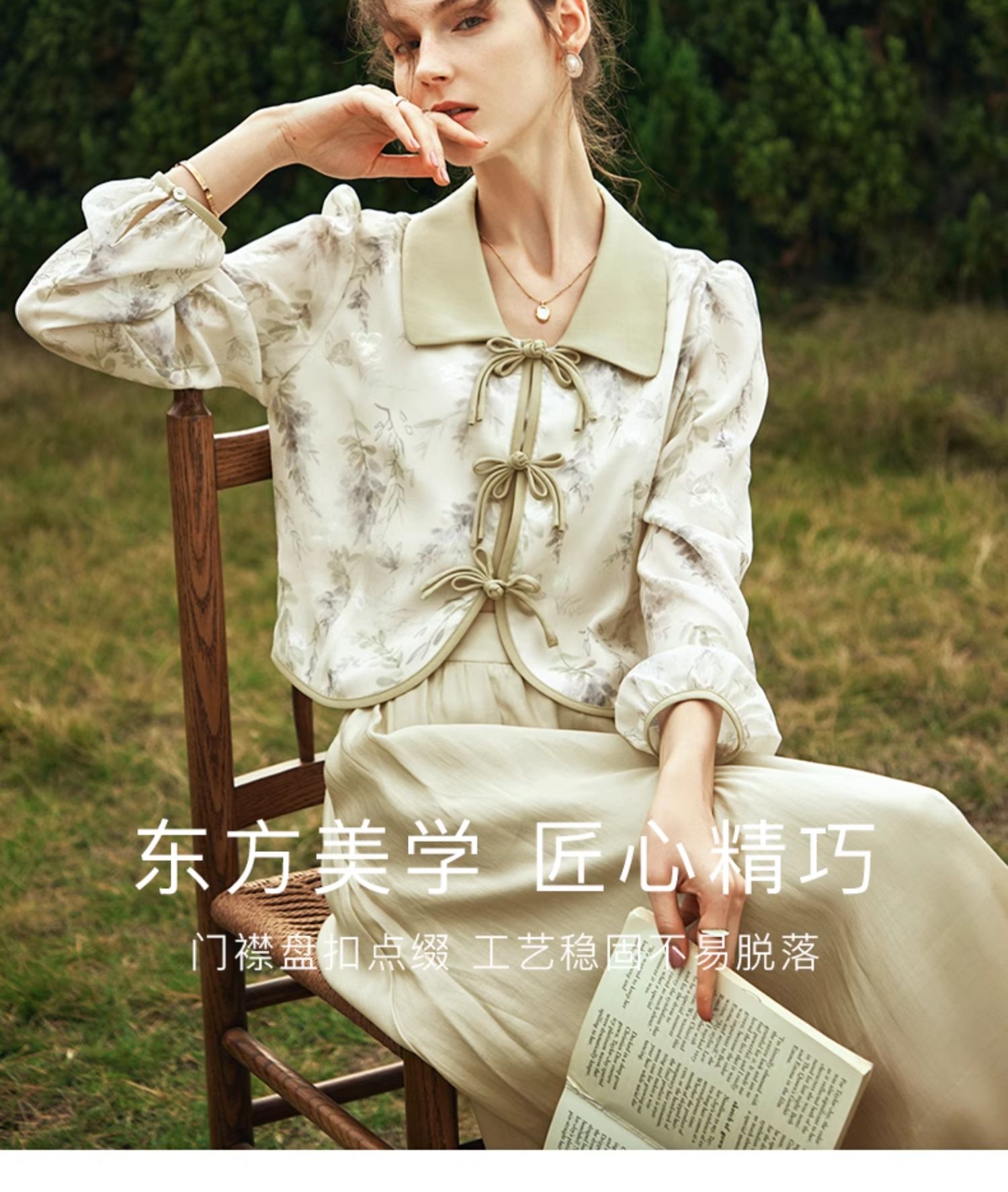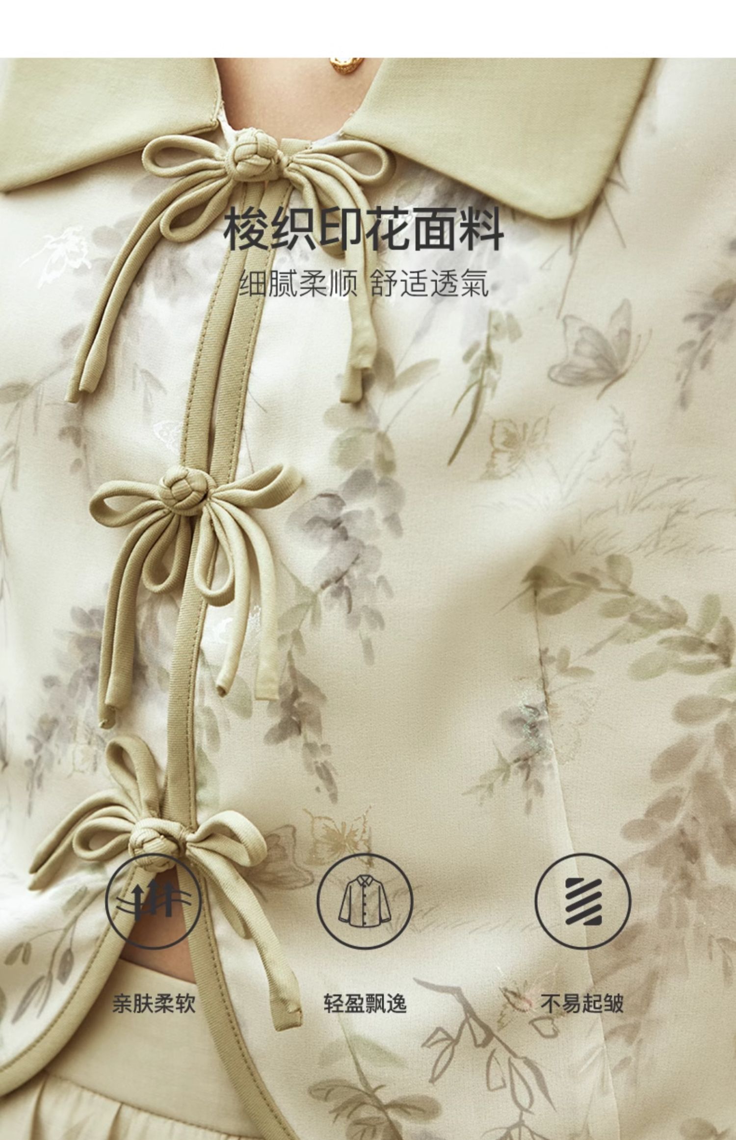 OLrain欧芮儿新中式碎花套装女早春2024新款国风改良盘扣两件套