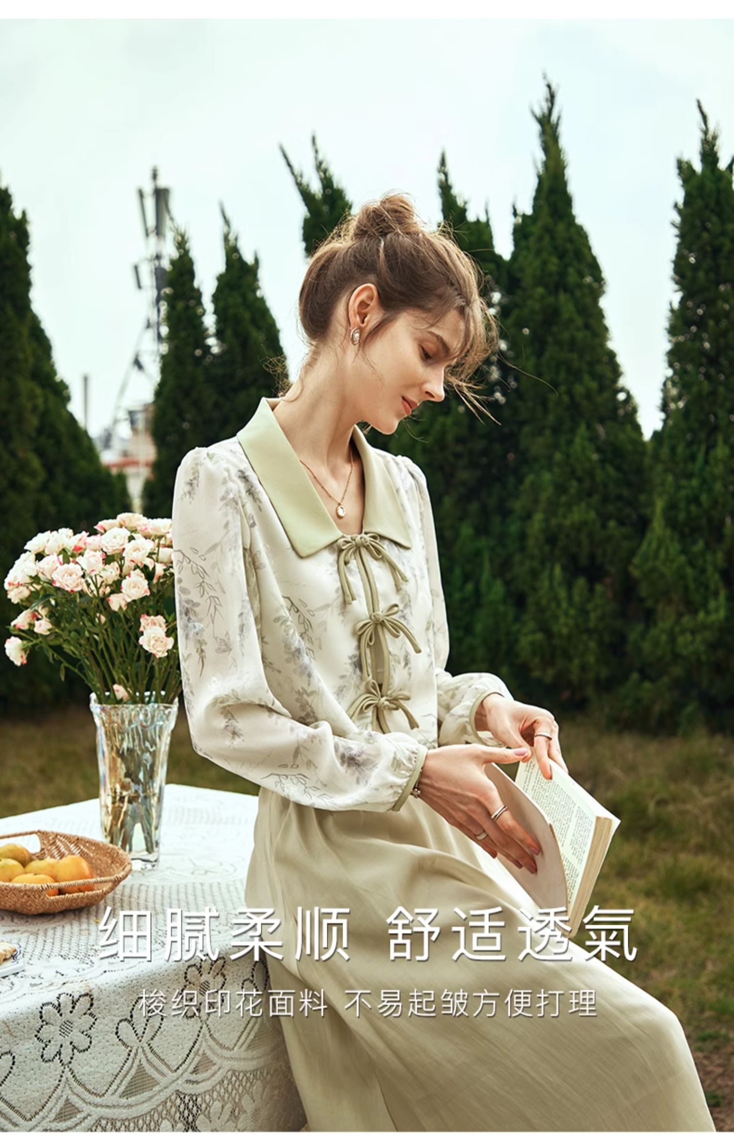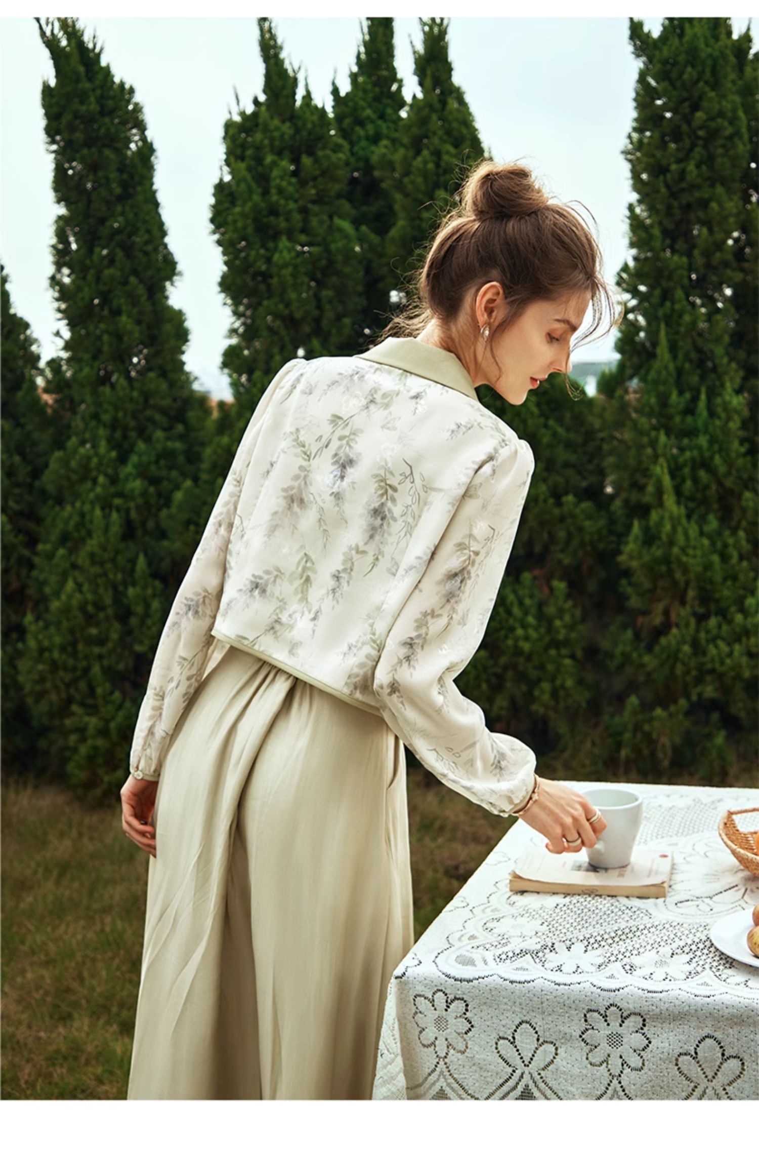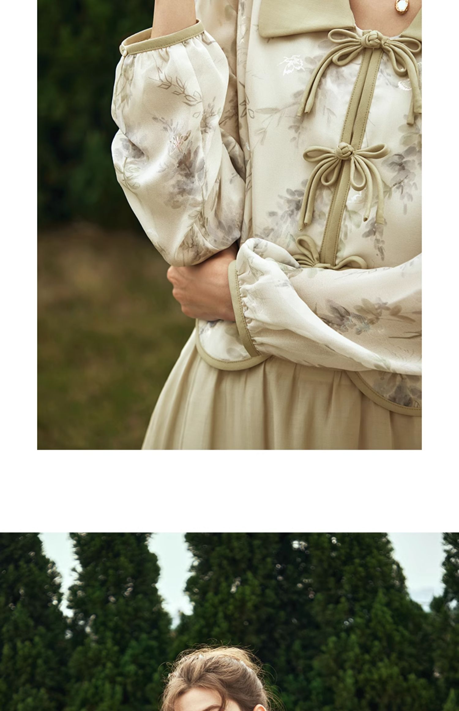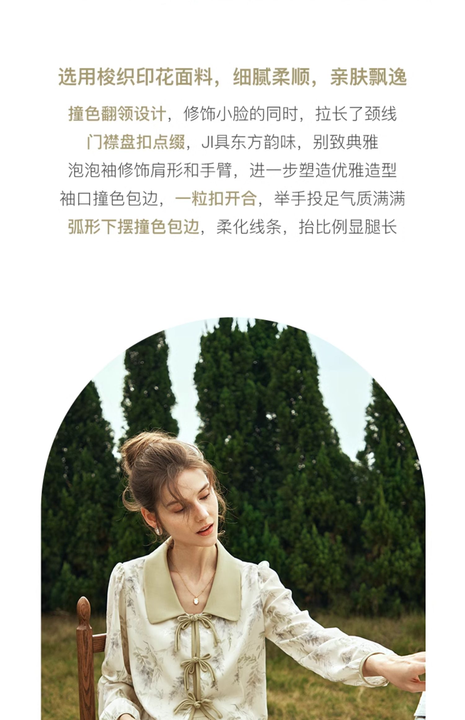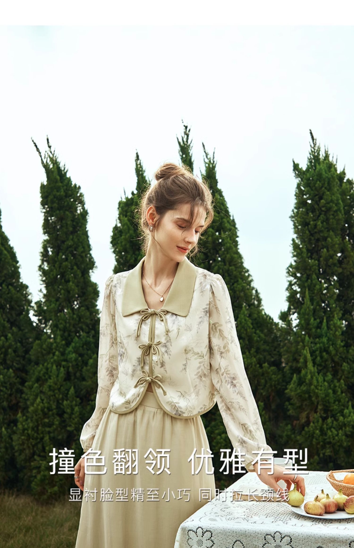 OLrain欧芮儿新中式碎花套装女早春2024新款国风改良盘扣两件套