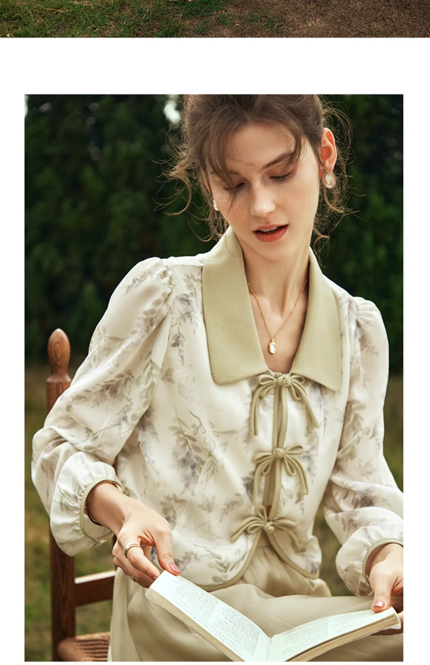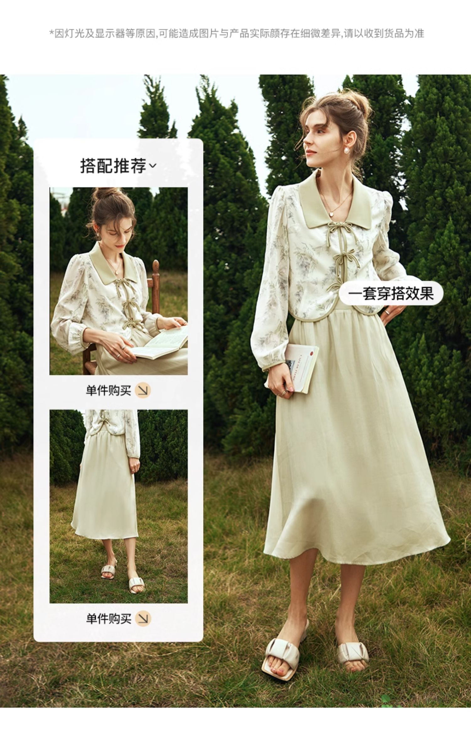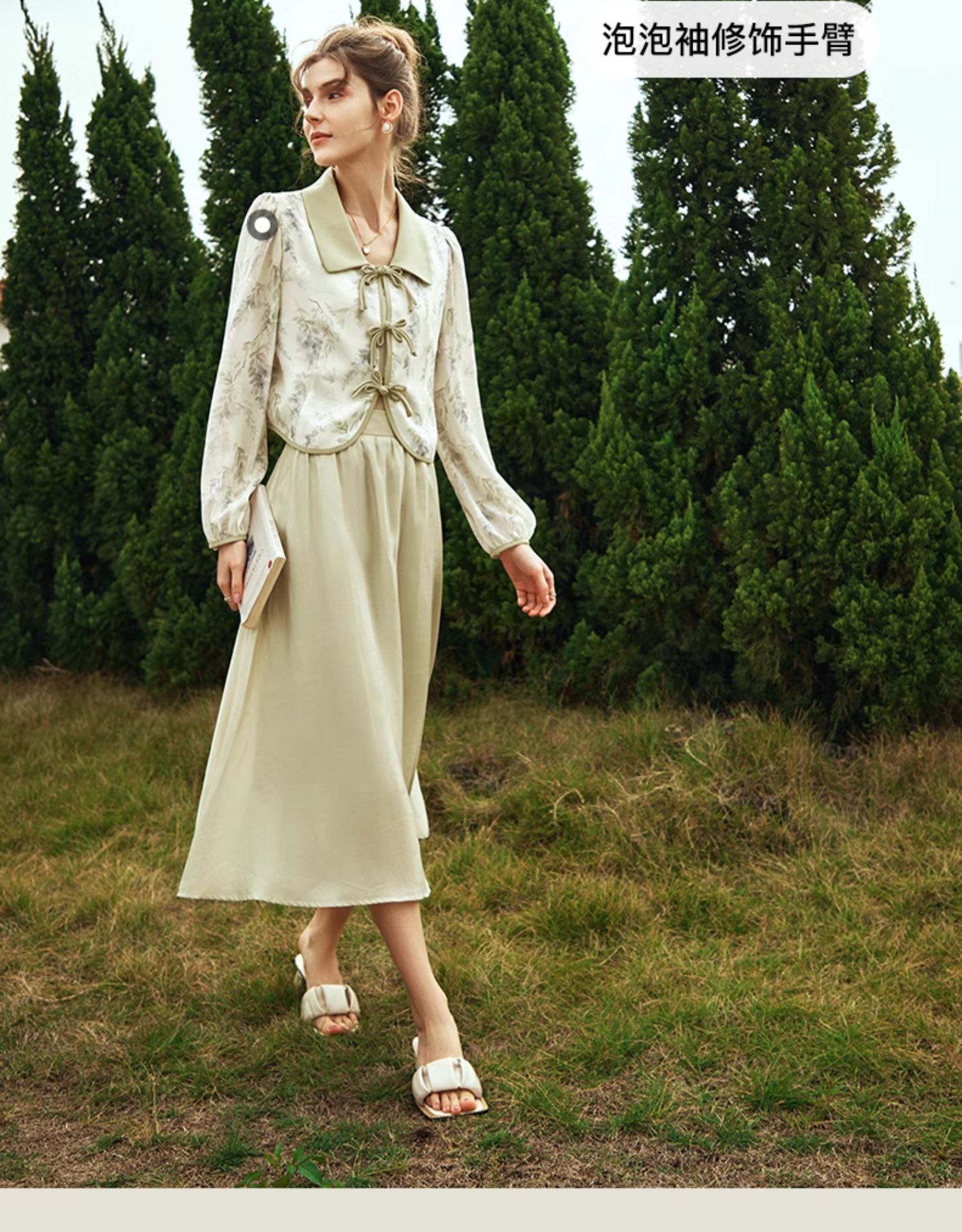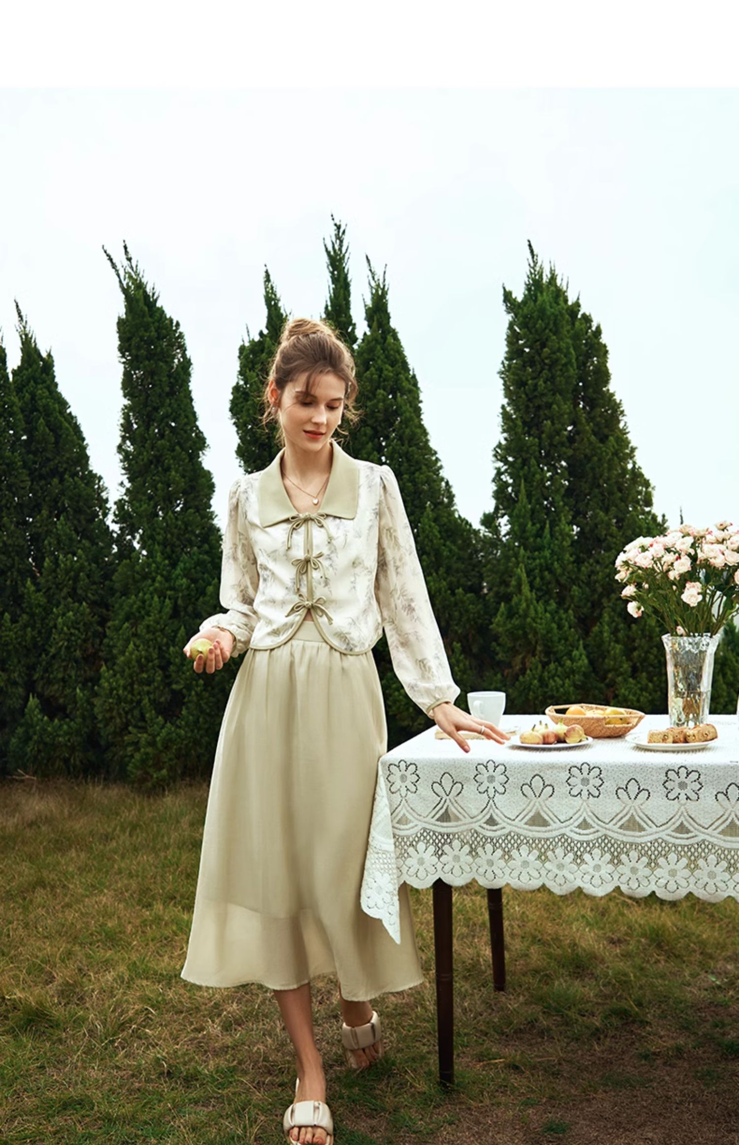 OLrain欧芮儿新中式碎花套装女早春2024新款国风改良盘扣两件套