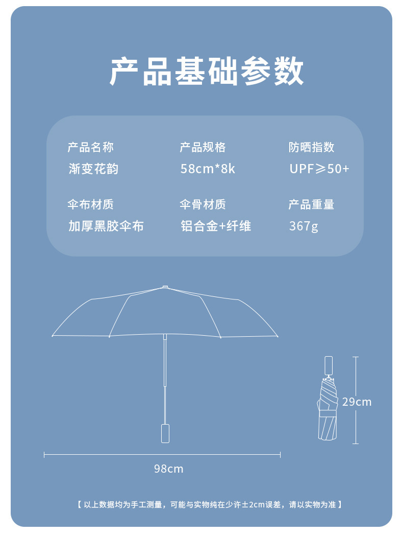 「一键花开!晴雨两用」新款太阳伞防晒女生高颜值黑胶居家日用自动遮阳雨伞户外晴雨两用