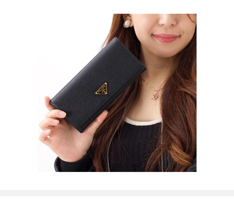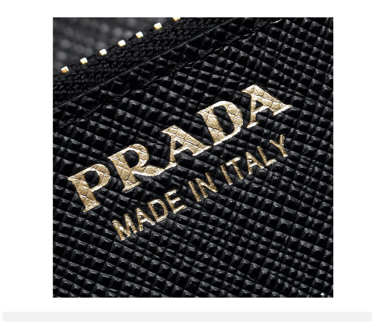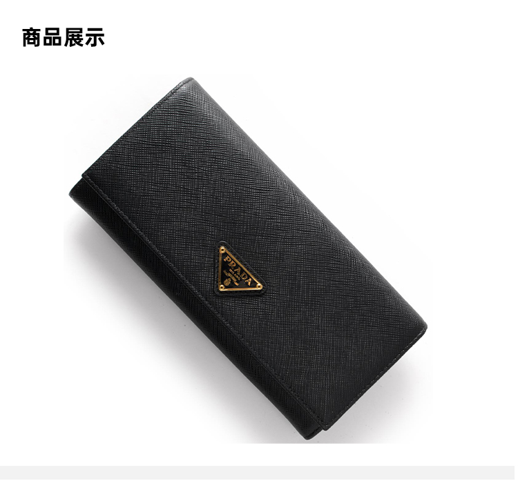 PRADA 普拉达 女士大号 Saffiano 十字纹皮革珐琅金属三角徽标票夹钱包 黑色 1MH132 QHH F0002