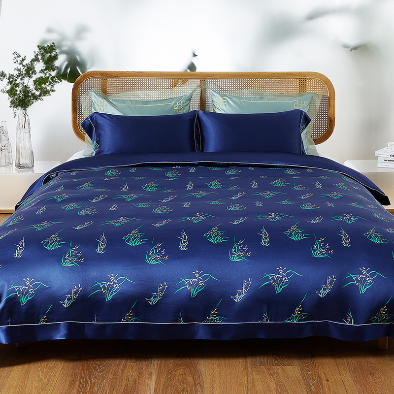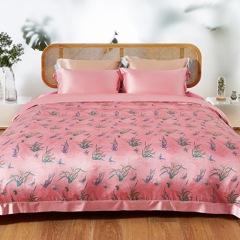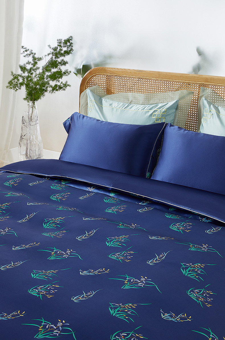 被面中心印花面料,三边拼接素色飞字边,四周采用滚边工艺,既能增加细节美感,又能彰显产品的精良工艺。被子内里采用八点定位绑带,与被芯固定,避免滑移。侧面为隐形拉链,平整美观,方便拆卸。枕头四周有飞字边设计,层次丰富,做工精致。枕头底部为隐形拉链,包裹严密,方便拆卸。
