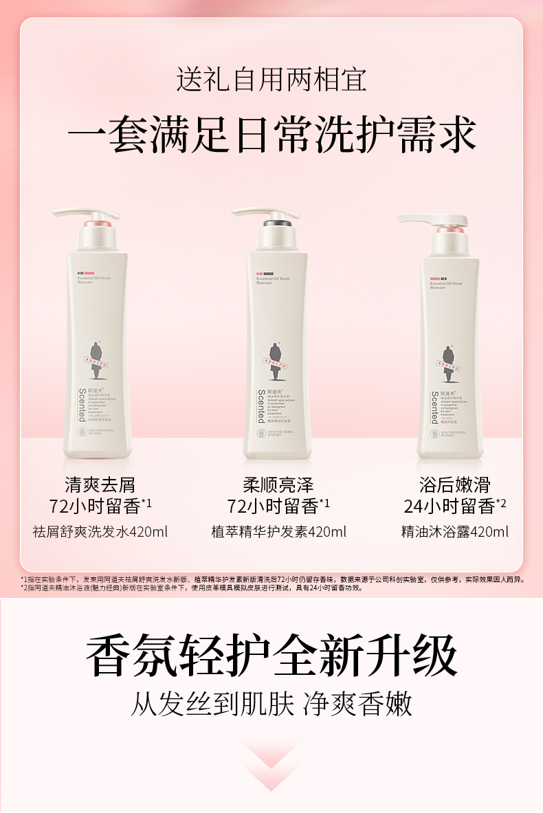 【阿道夫旗舰店】阿道夫精油5感洗护沐礼盒-马年版 去屑舒爽洗发水420ml+香氛沐浴露420ml+植萃护发素420ml