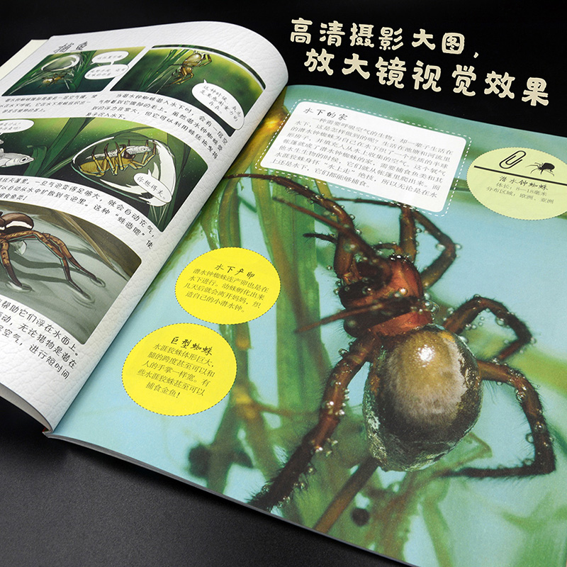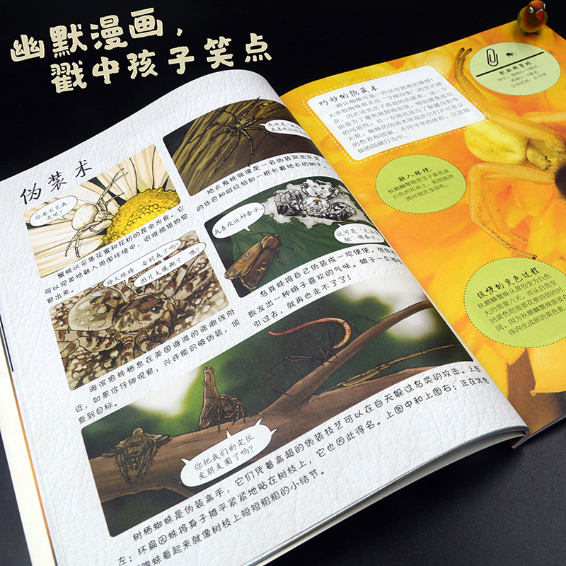 ★幽默漫画+高清摄影大图,用孩子喜欢的方式呈现虫子的世界。独特对开设计,左页为幽默搞笑漫画,展示虫子不为人知的内心世界;右页为高清摄影大图,展示虫子纤毫毕现,让孩子足不出户,就能体验在户外用放大镜观察虫子的视觉效果。