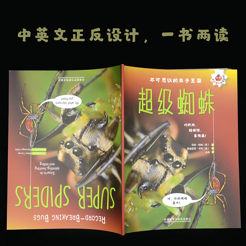 《不可思议的虫子王国》是“番茄博士双语百科”的一个子系列,套装内共4本图书,分别为:《昆虫三十六计》《身怀绝技的飞虫》《超级蜘蛛》和《小虫子,大本领》。书中介绍了各种各样的虫子,比如能在太空和沸水中遨游的水熊虫,能充当“手电筒”的发光虫,能在水下安家的潜水钟蜘蛛等,带领读者全方位了解虫子的十八般武艺和生存智慧,以及它们与人类的密切关系。图书结合漫画与高清摄影大图,图文并茂,知识点详实。对喜爱动物题材的小读者来说,是一套融知识性、趣味性和语言学习为一体的双语百科图书,适合小学和初中低年级的学生阅读与学习。