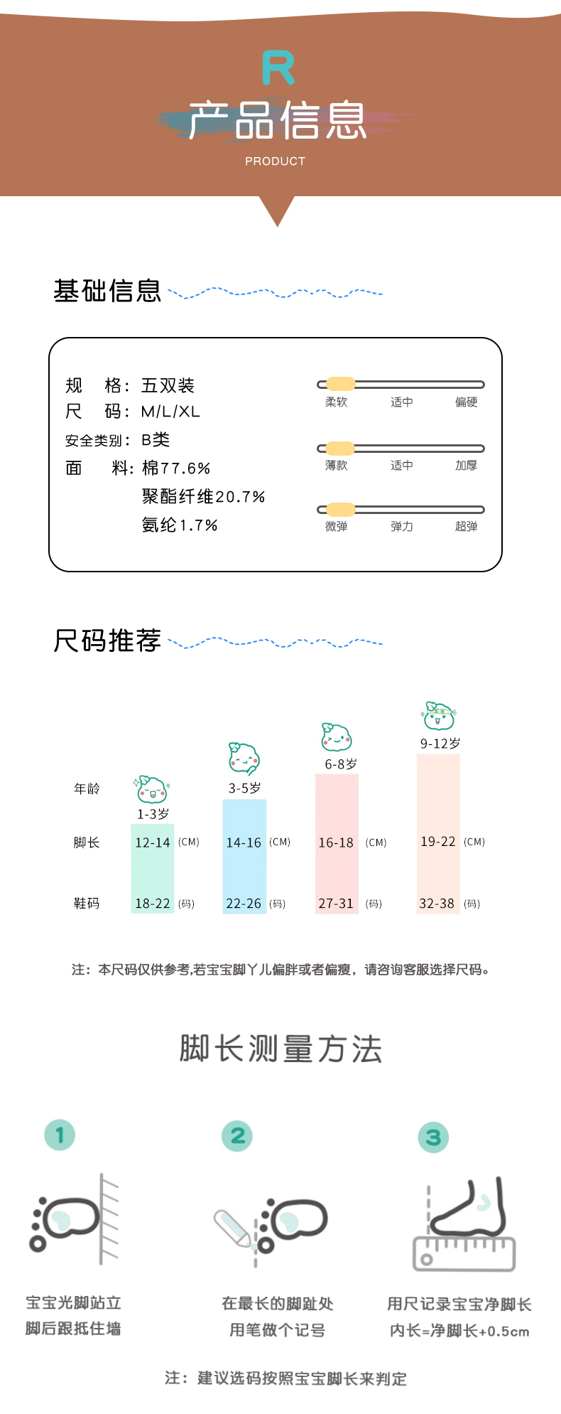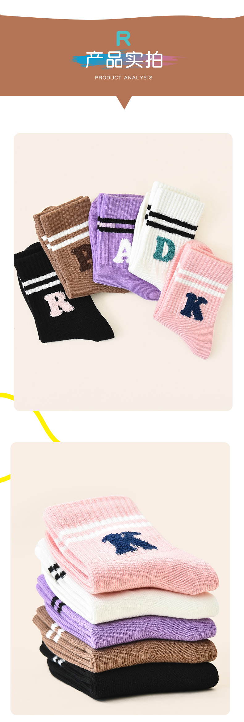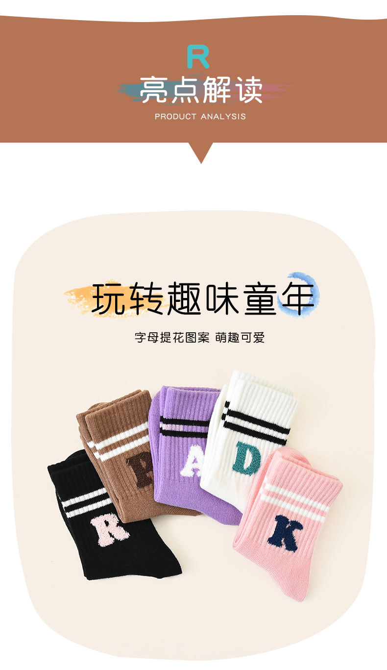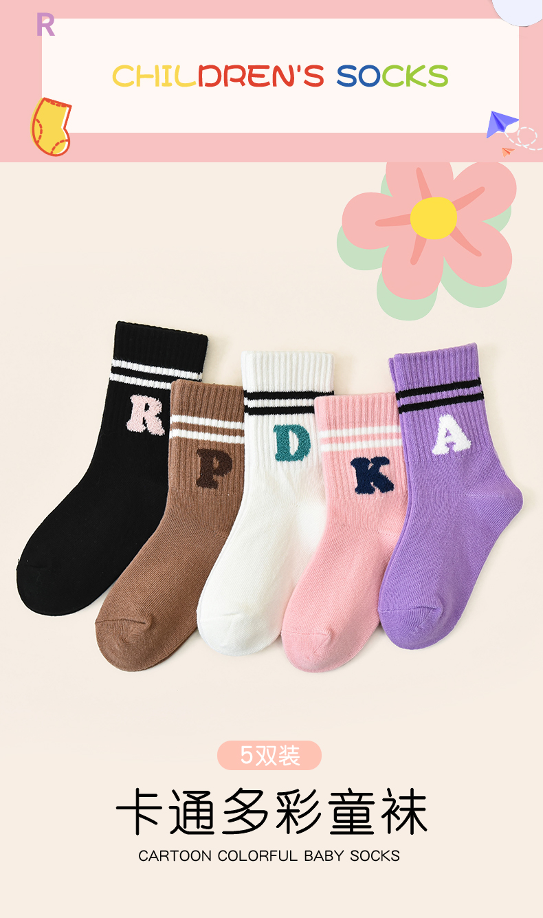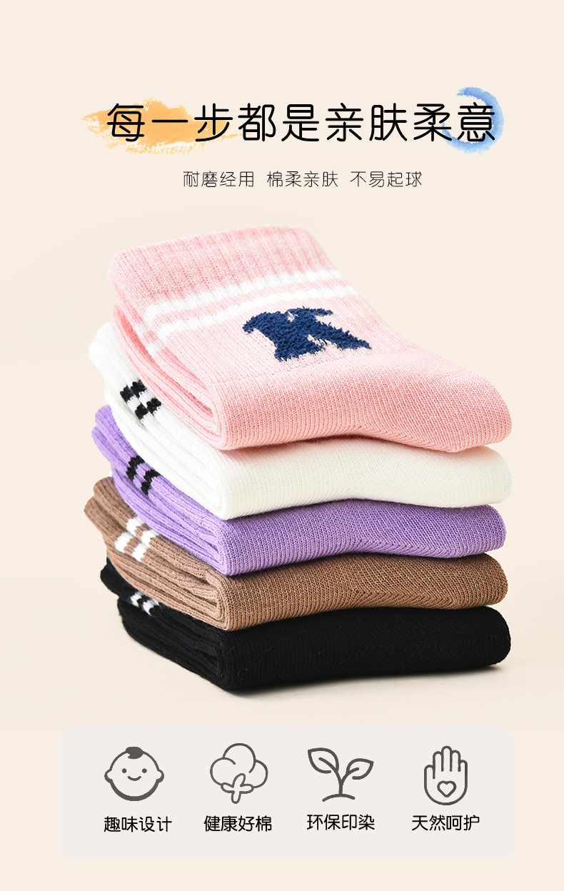 洁丽雅5双装童袜中筒袜子儿童袜新疆棉可爱印花亲肤柔软袜子韩系