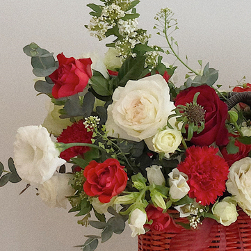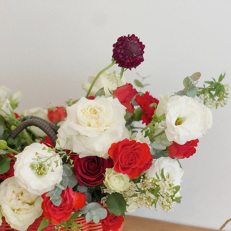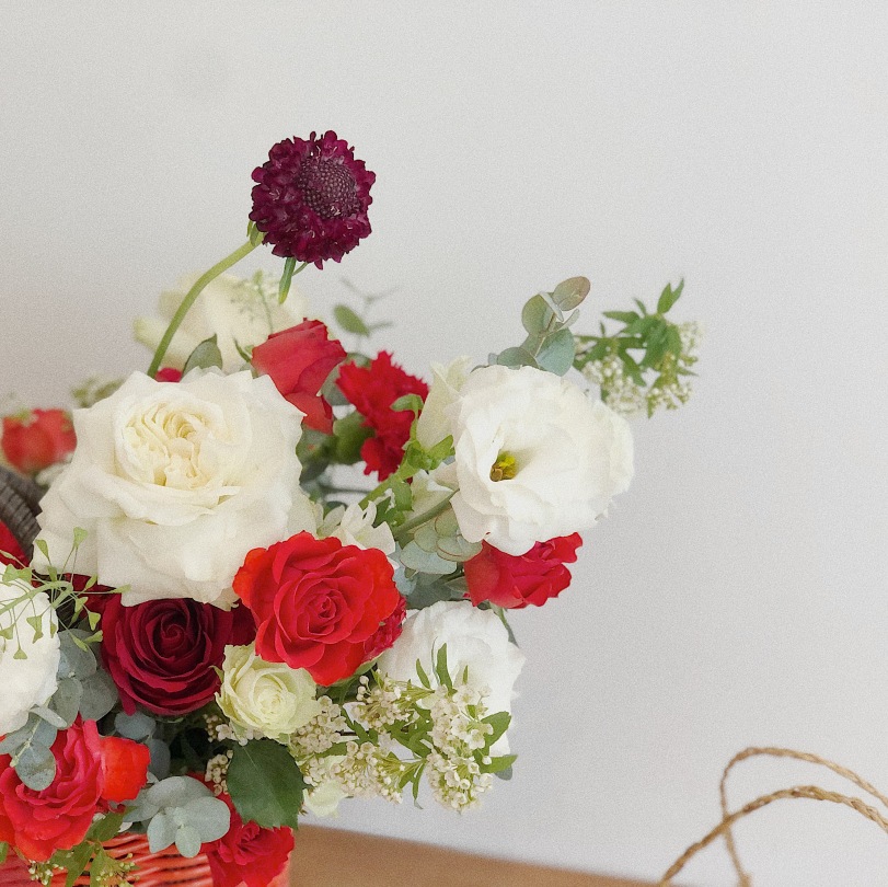 白色花园玫瑰、松虫草、风铃花、进口玫瑰