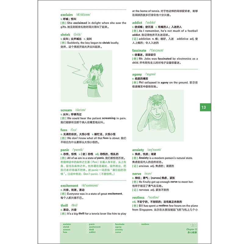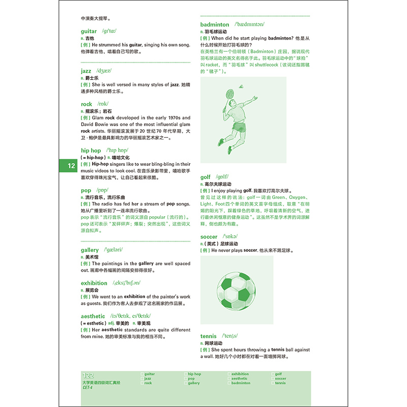 3.《大学英语四级词汇真经》中的许多词条配有生动形象的漫画插图,刘老师还为大家带来了丰富有趣的词源知识、文化常识。这些内容可辅助理解、记忆单词,也让学习的过程不再枯燥乏味。