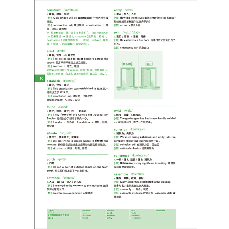 1.《大学英语四级词汇真经》由人气英语教育专家刘洪波老师结合多年教学经验精心打造。收录了大学英语四级考试大纲必备词汇和约800组实用搭配,例句难度适中。