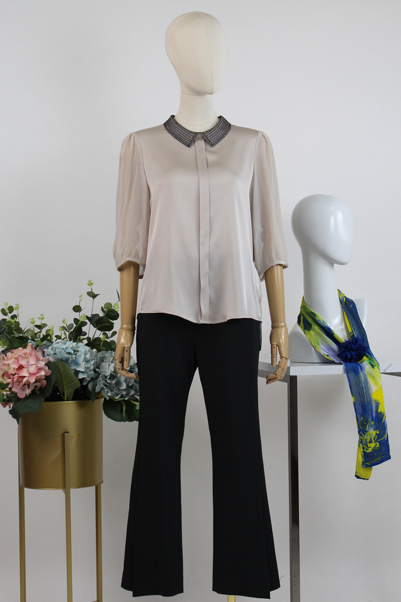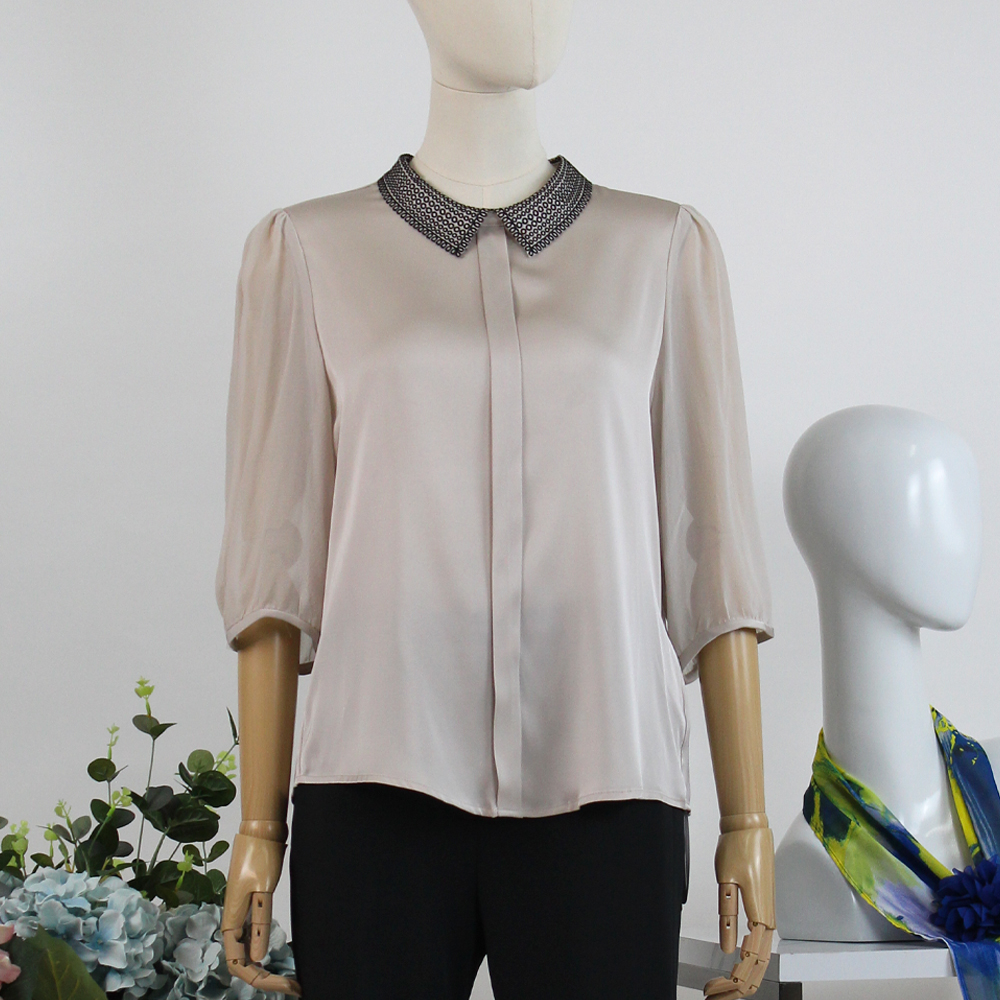 FOCALS福柯斯女装夏季新款真丝纯色套头通勤衬衫2Y6N128M1
