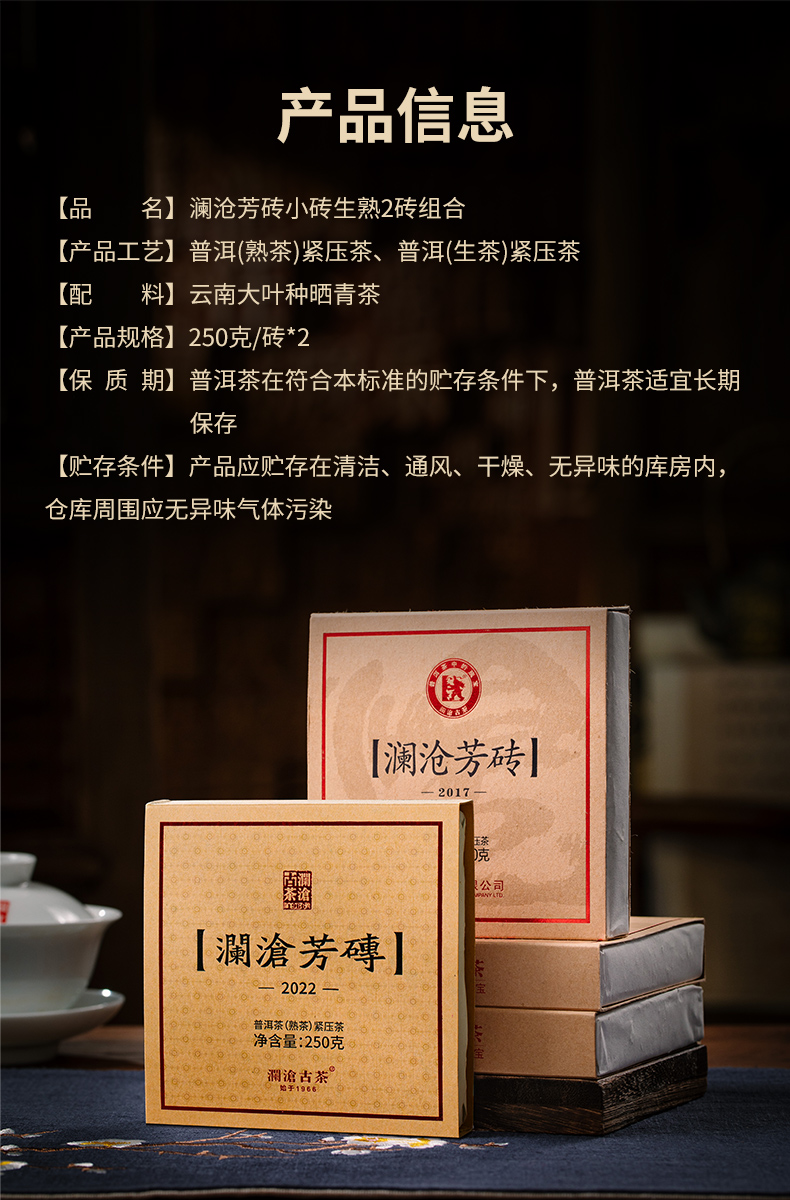 澜沧古茶澜沧芳砖生熟组合250g*2